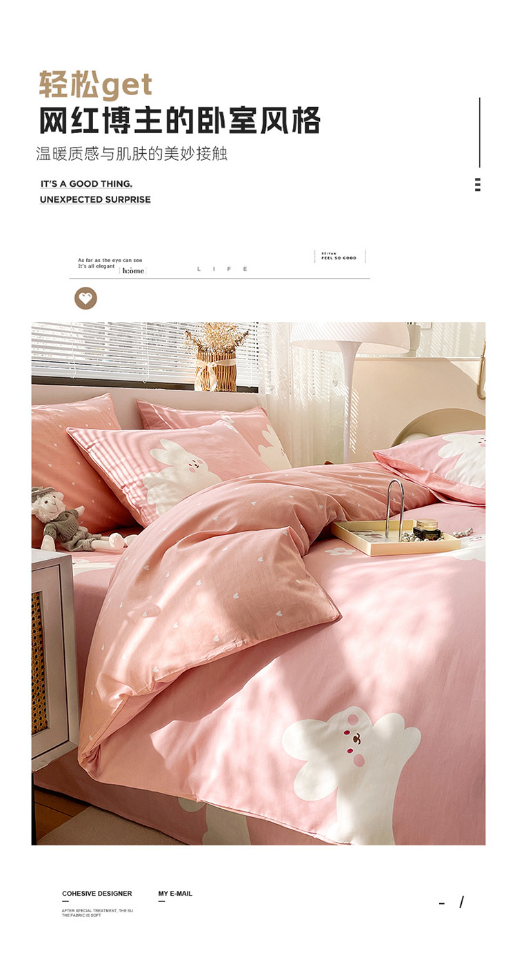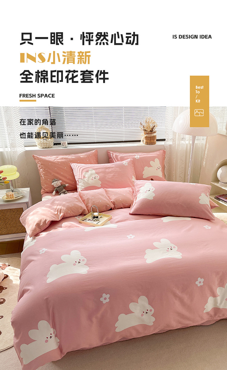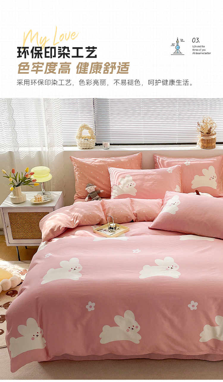 商品名称:绵庭 2023新款12868全棉ins小清新印花四件套 萌萌兔-粉