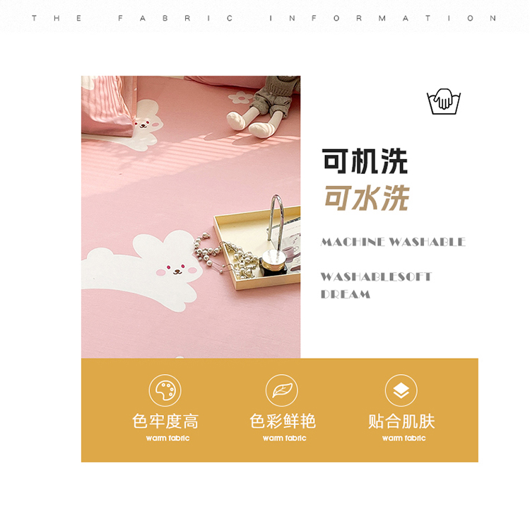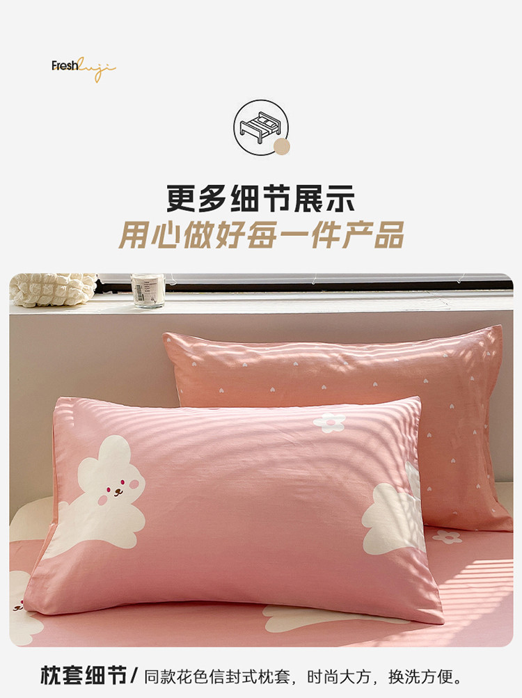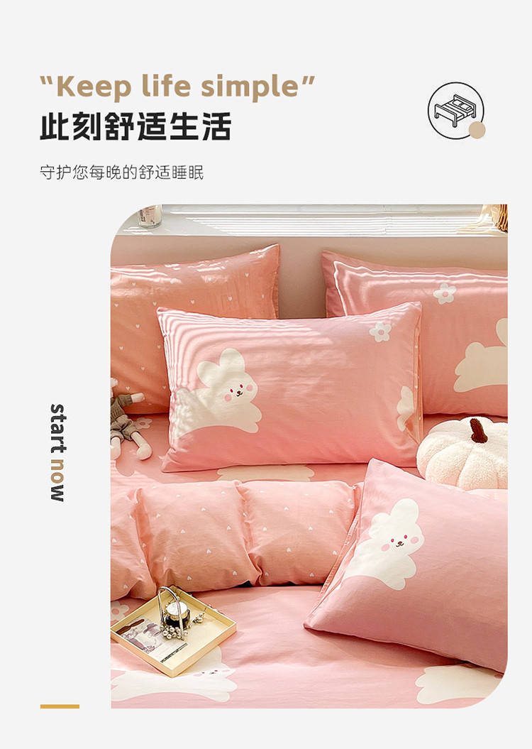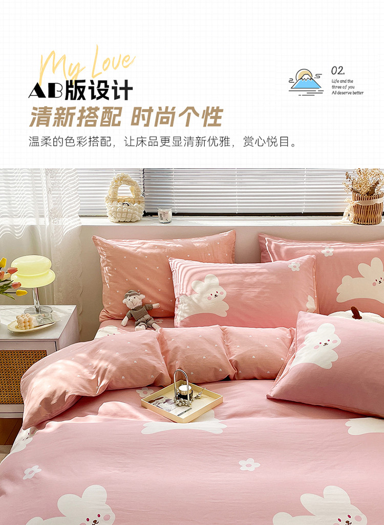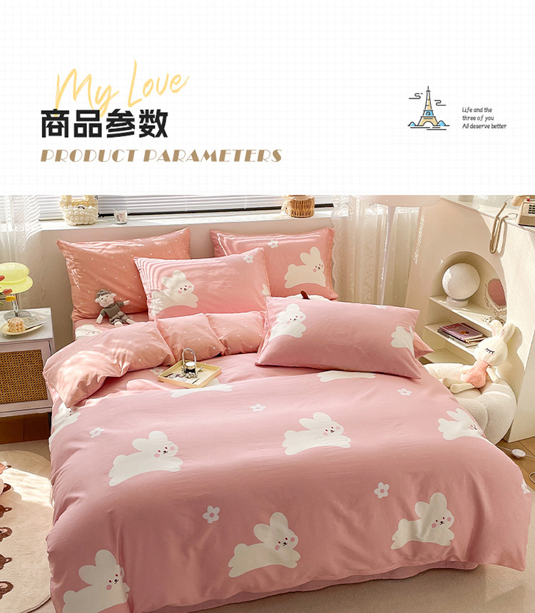 商品名称:绵庭 2023新款12868全棉ins小清新印花四件套 萌萌兔-粉