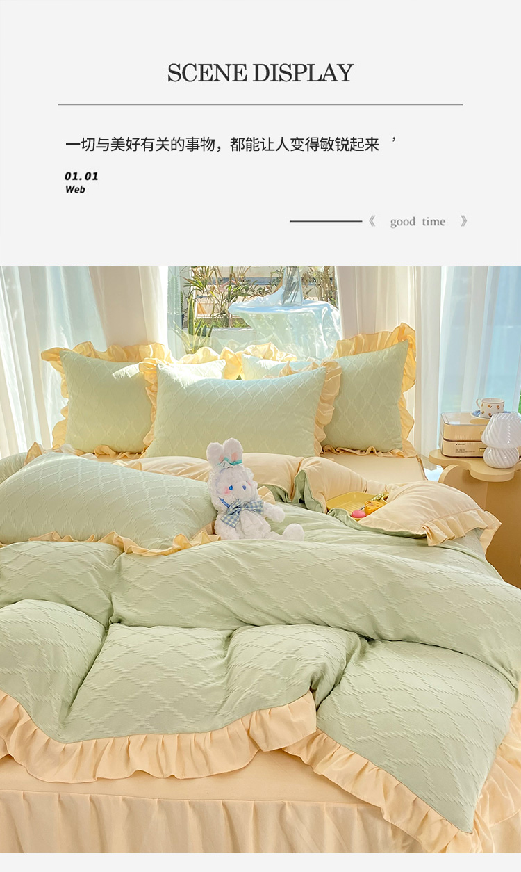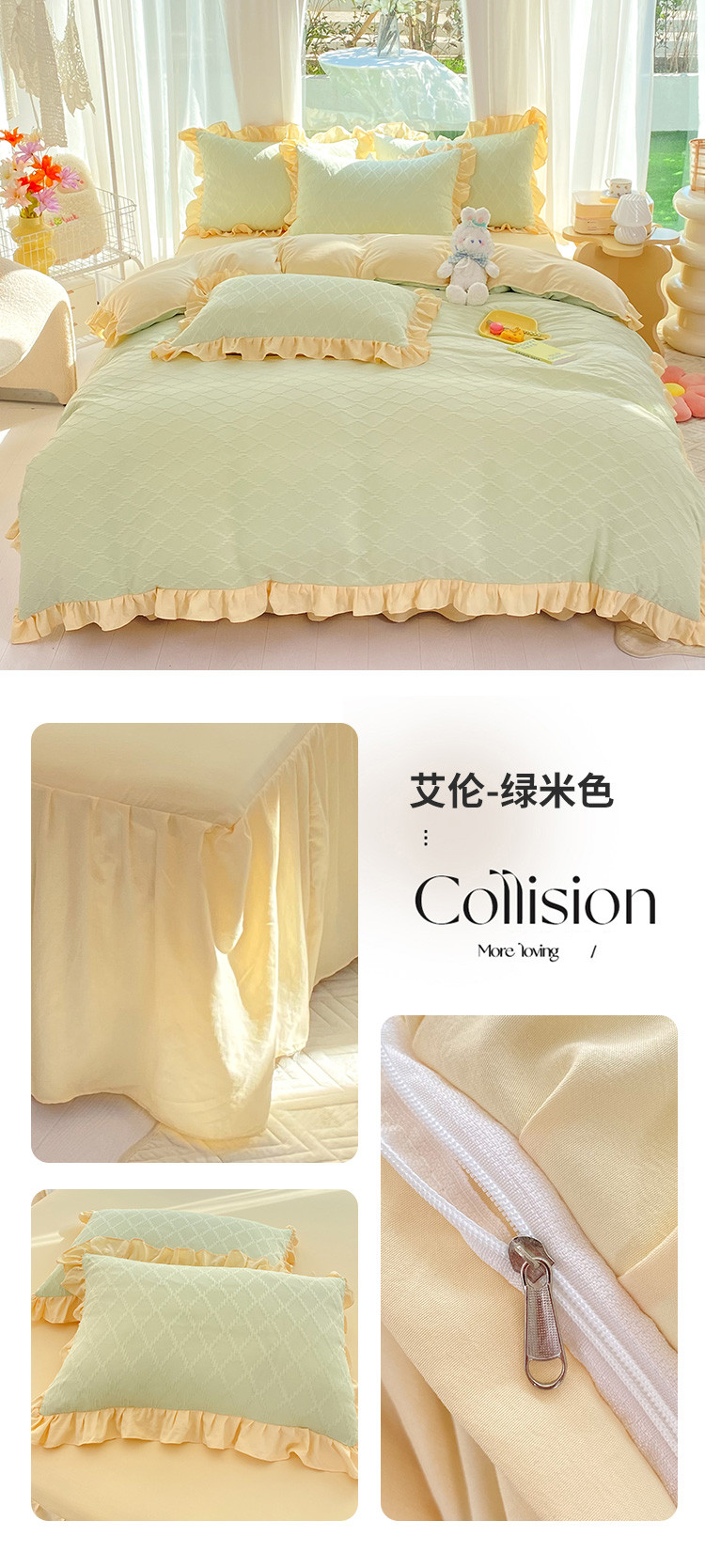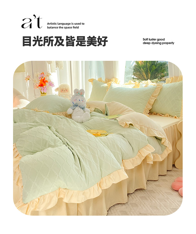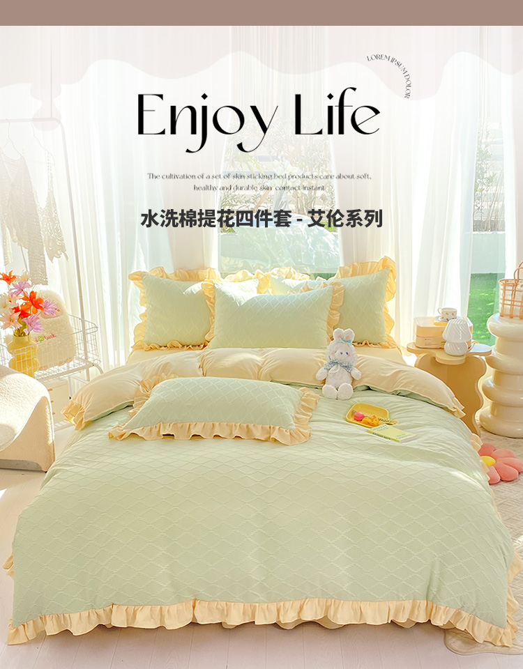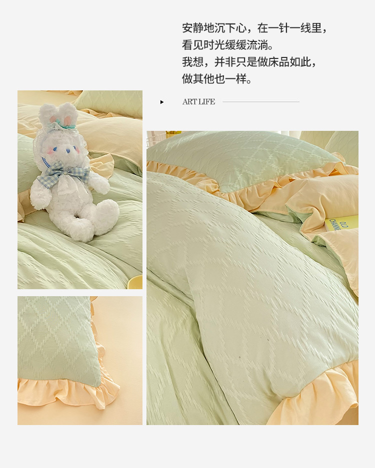 商品名称:芭比蔓家 2024新款艾伦系列水洗棉提花四件套 艾伦-绿米