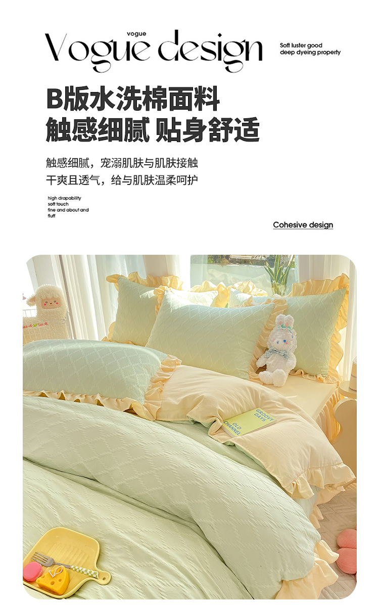 芭比蔓家 2024新款艾伦系列水洗棉提花四件套 艾伦-绿米