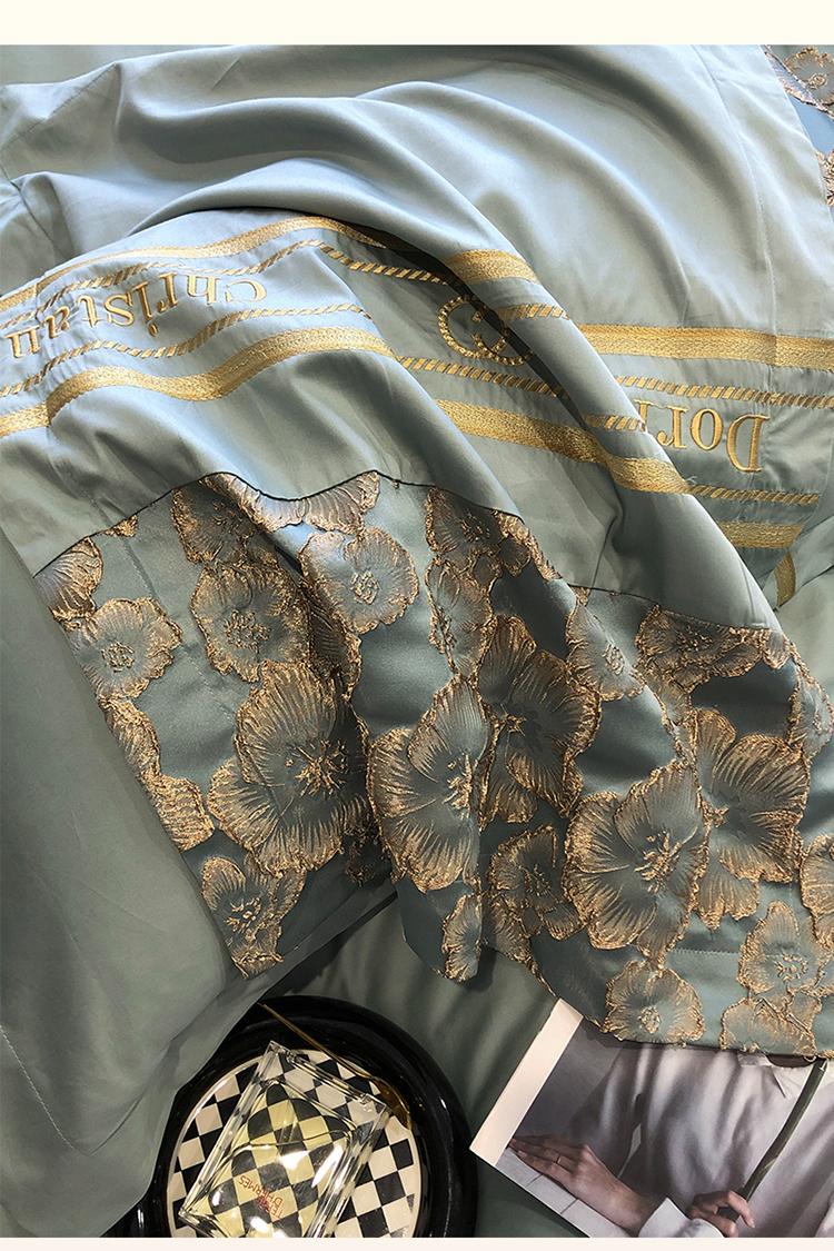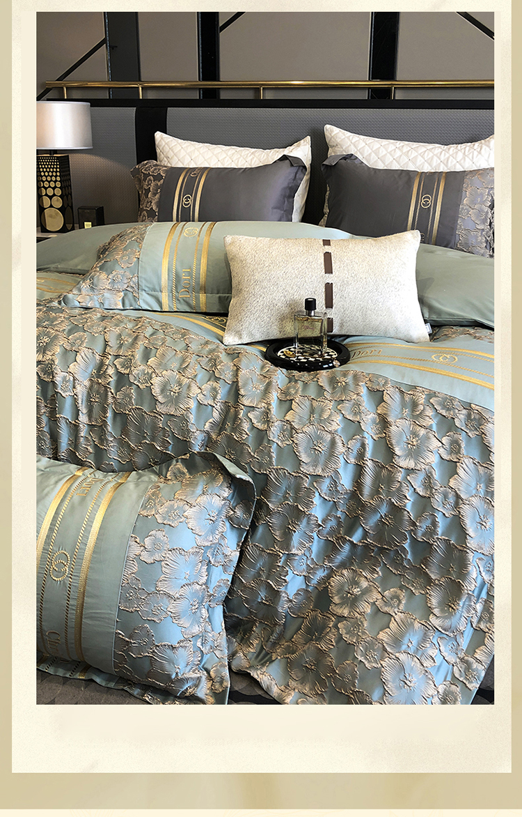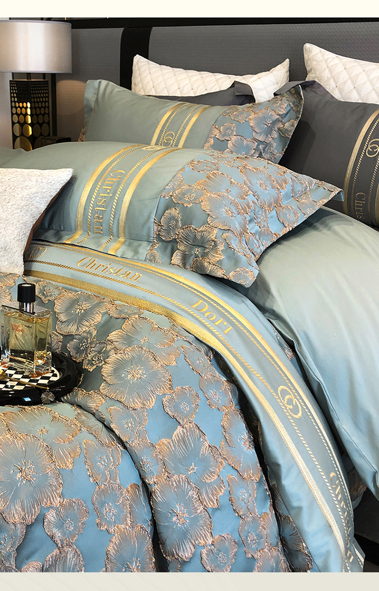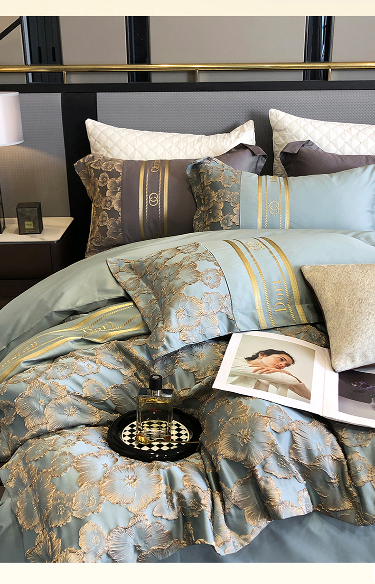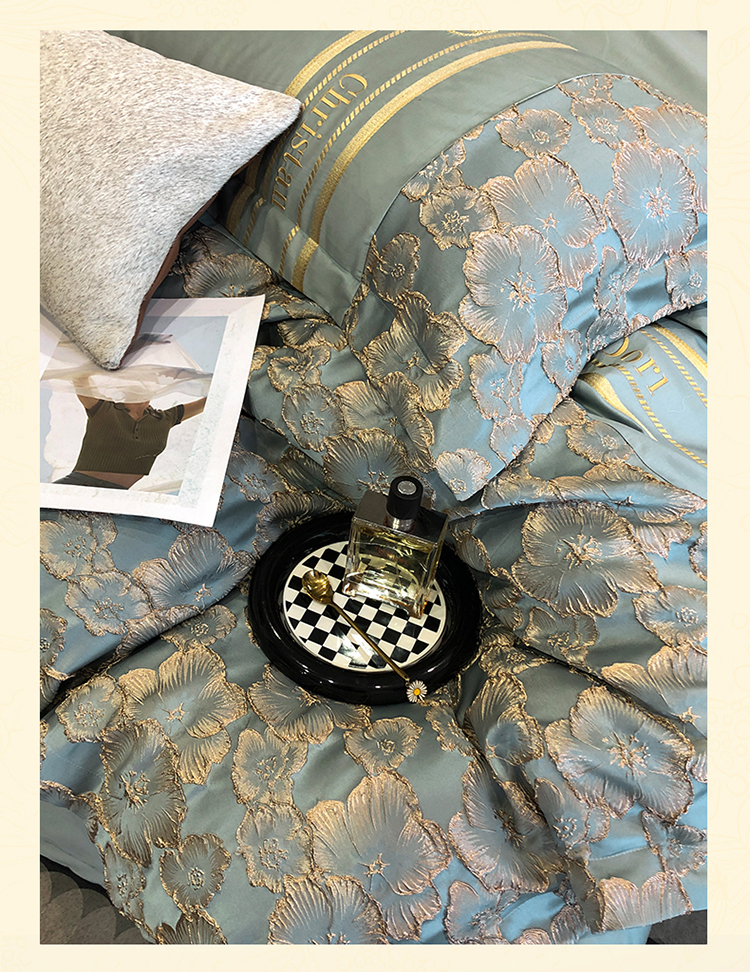 商品名称:雪夫人 2023年 罗浮宫印象100支高精密浮雕四件套 玫瑰-星海蓝