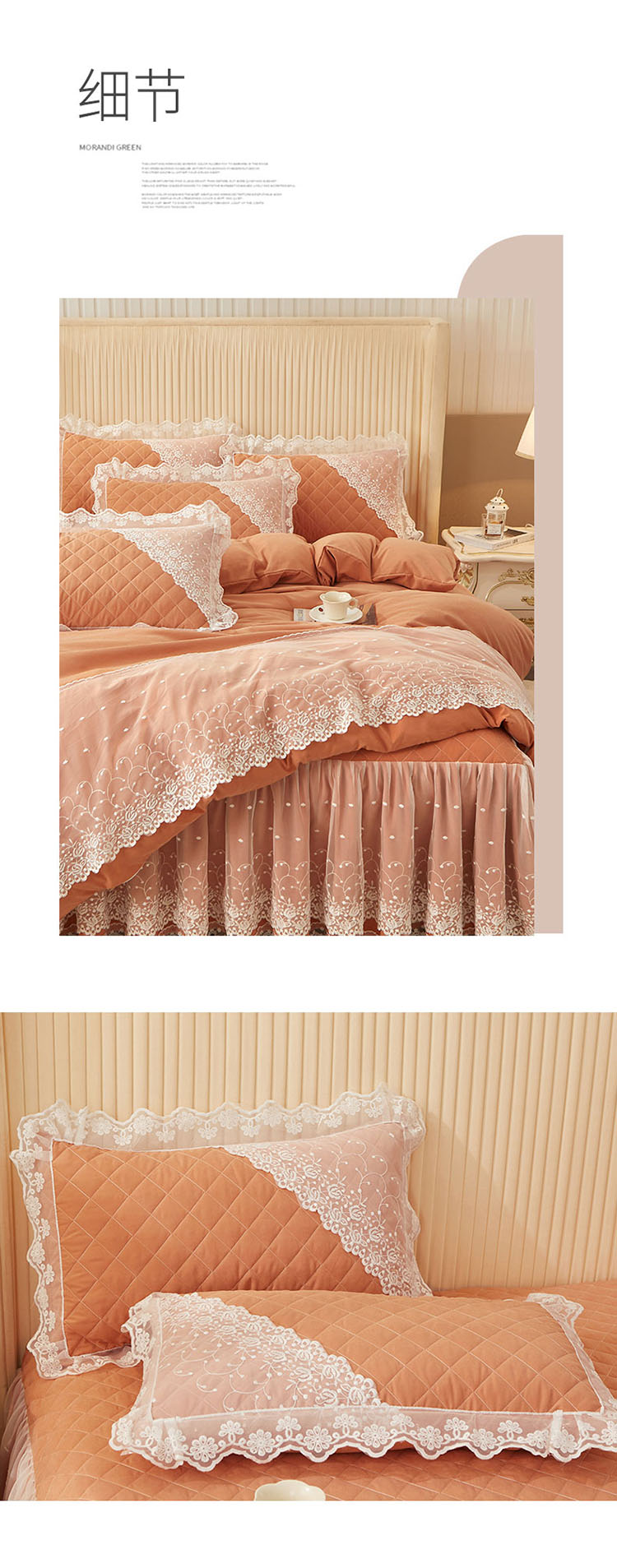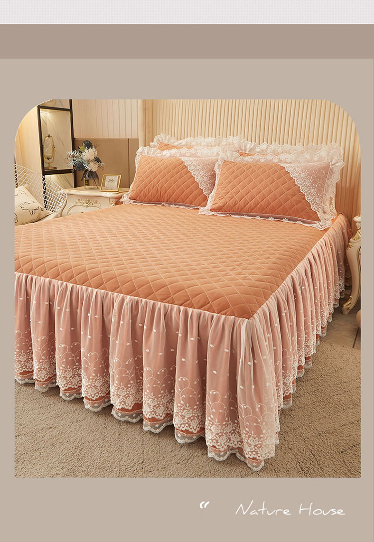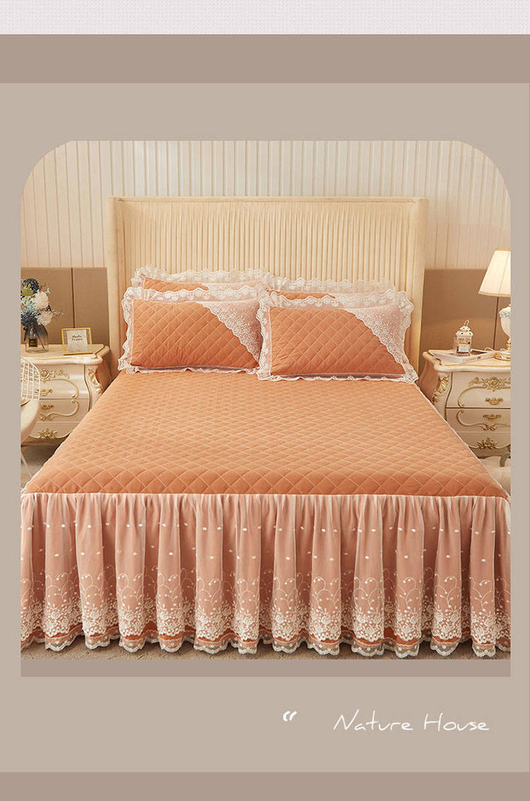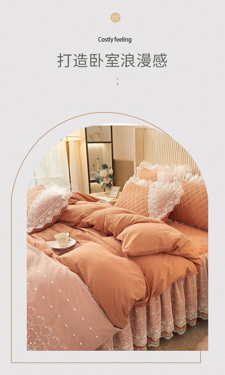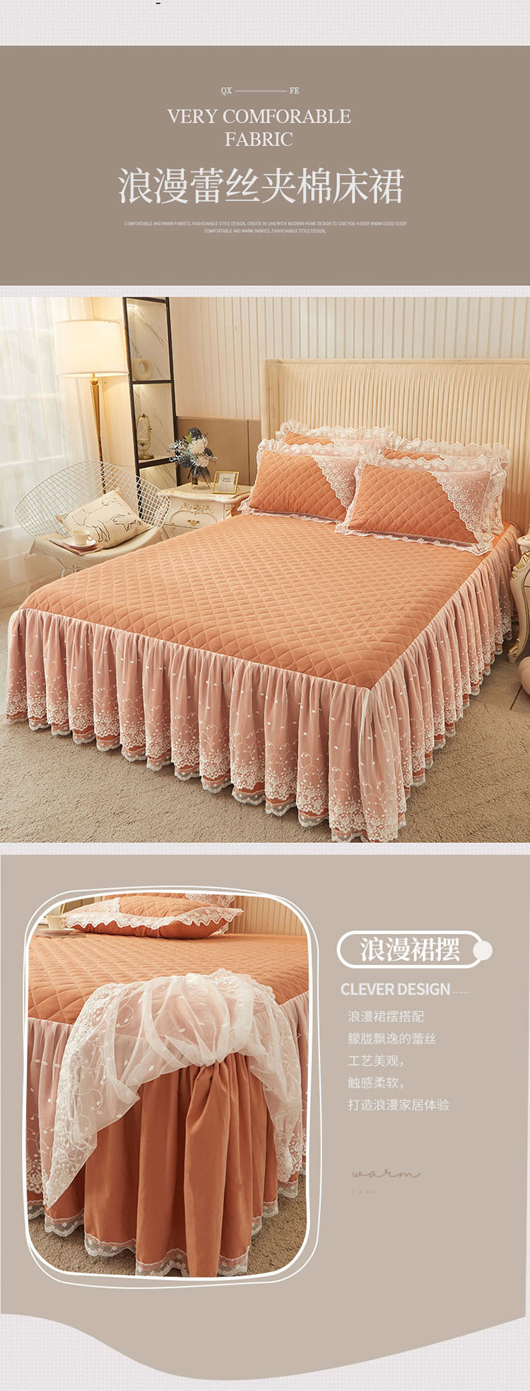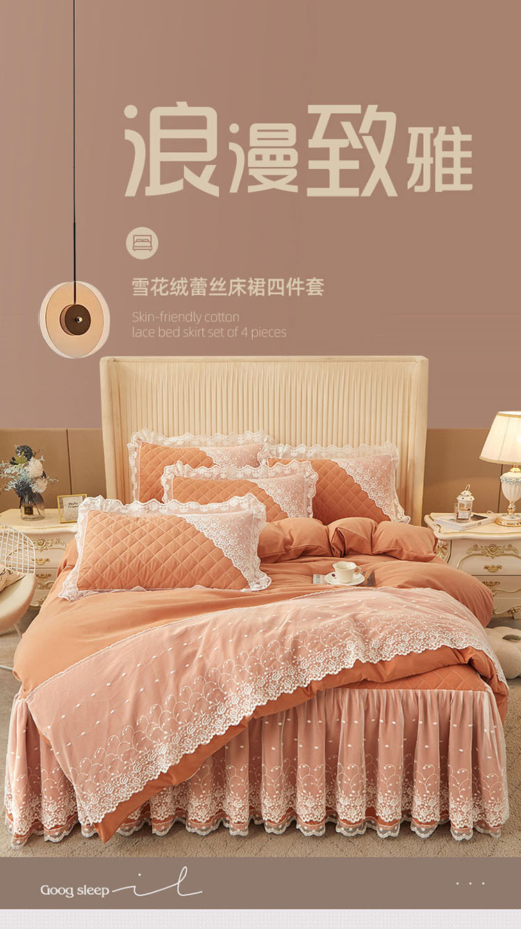 当前位置: 91家纺网 > 商品网购 > 床品套件 > 四件套 > 磨绒四件套 > 恋尚 2023新款纯色雪花绒夹棉蕾丝床裙四件套(四季款) 玫瑰公主-杏黄