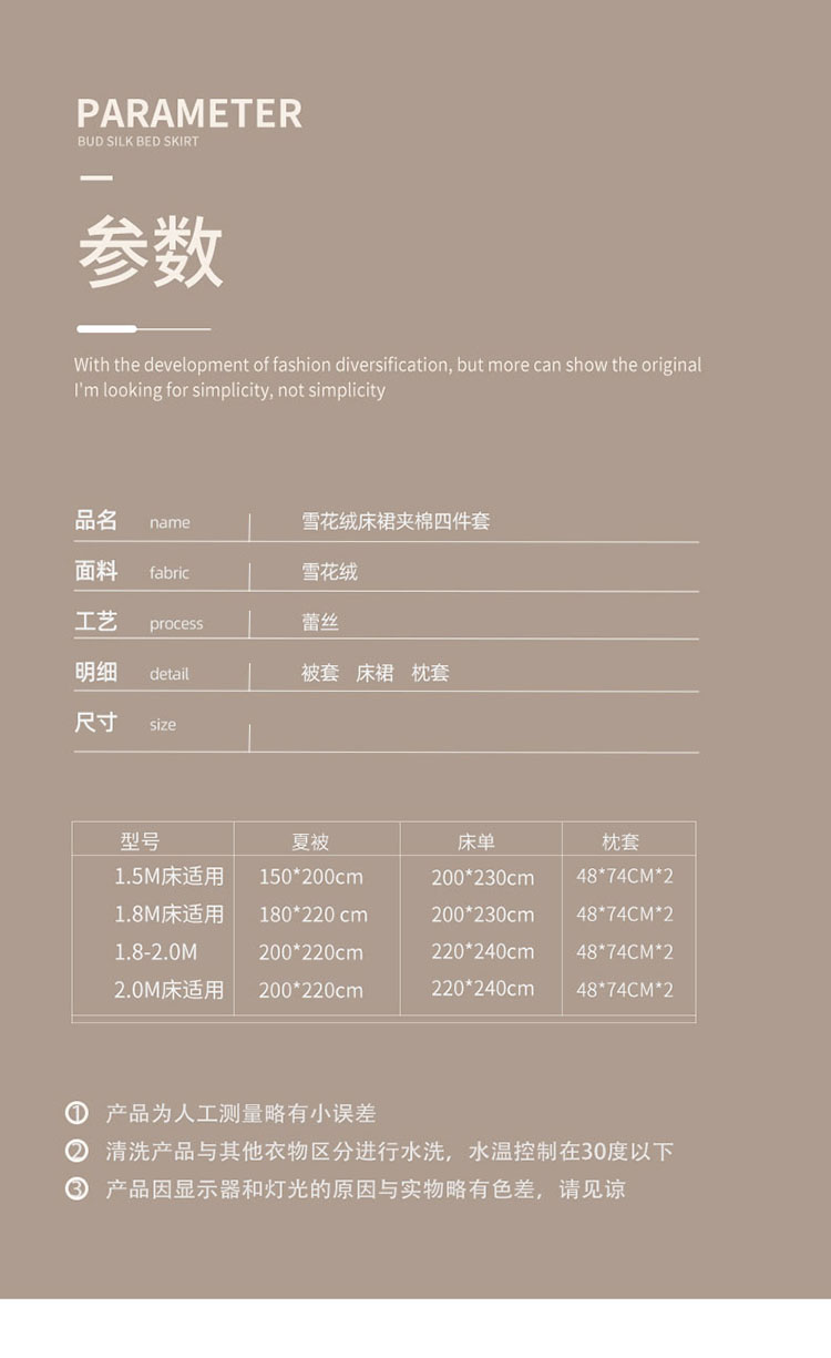 1.8m床裙款四件套(被套200*230cm床裙180*200cm枕套48*74cm*2 | ¥180.00 |