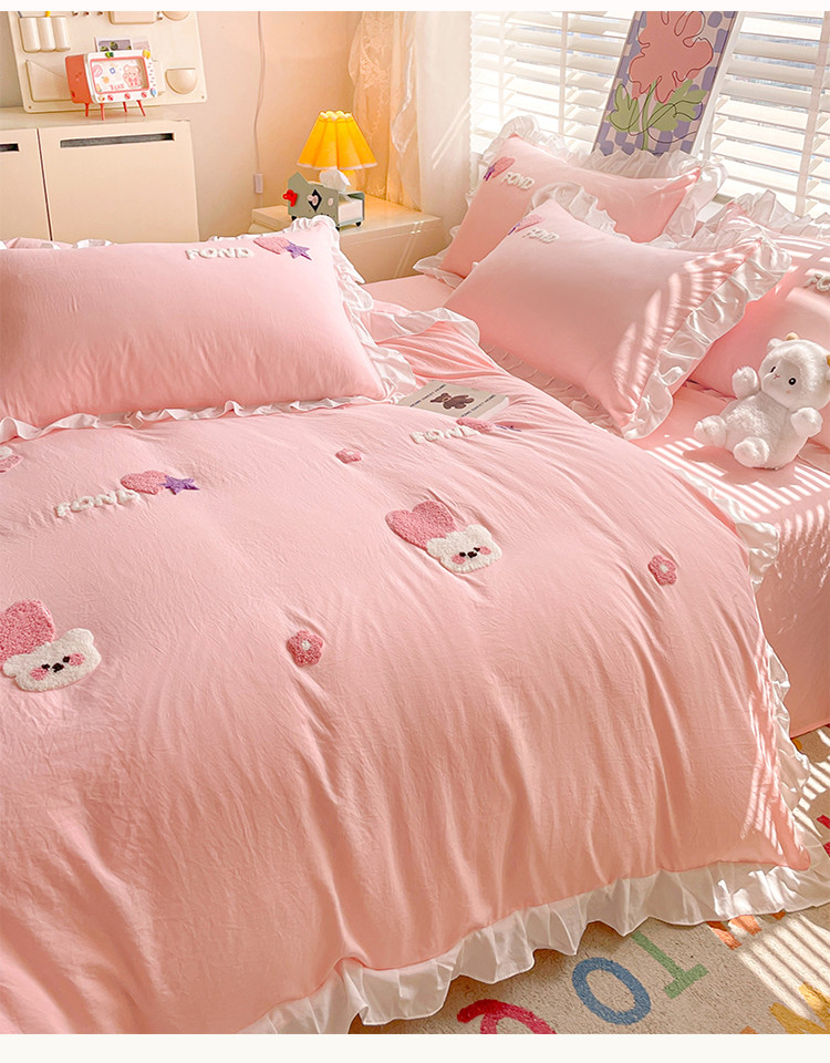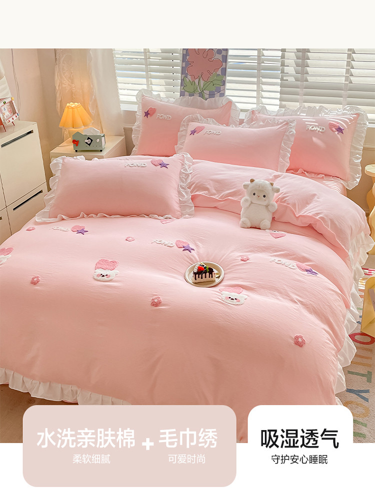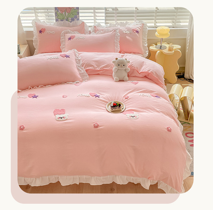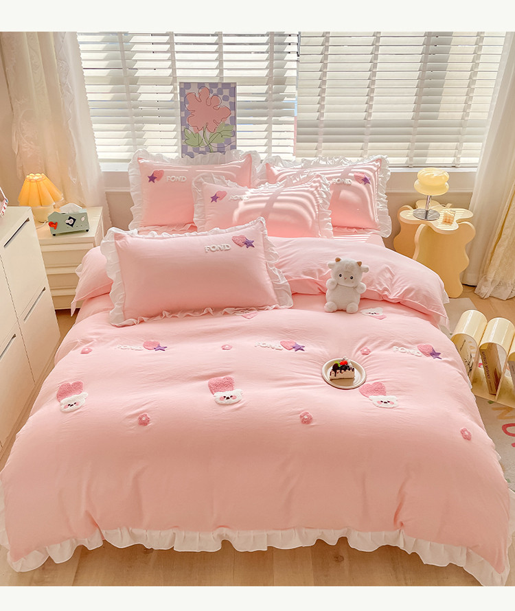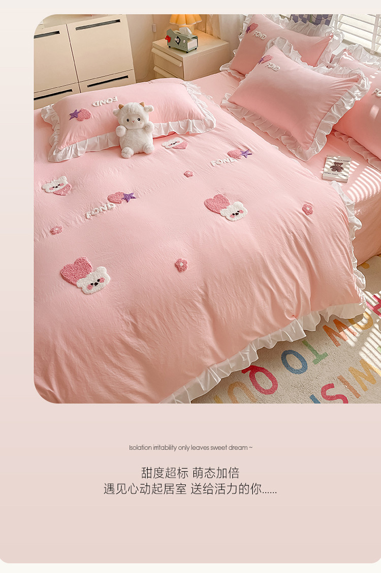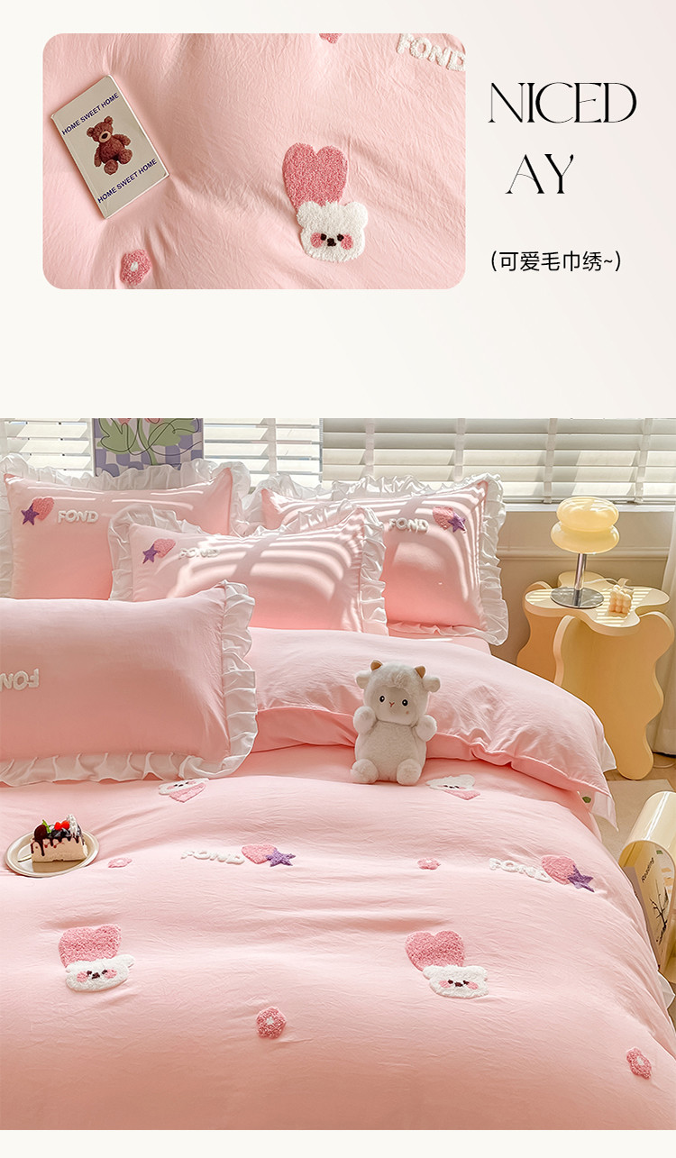 当前位置: 91家纺网 > 商品网购 > 床品套件 > 四件套 > 水洗棉四件套 > 易禾 2024新款 爱心小熊系列四件套 爱心小熊粉