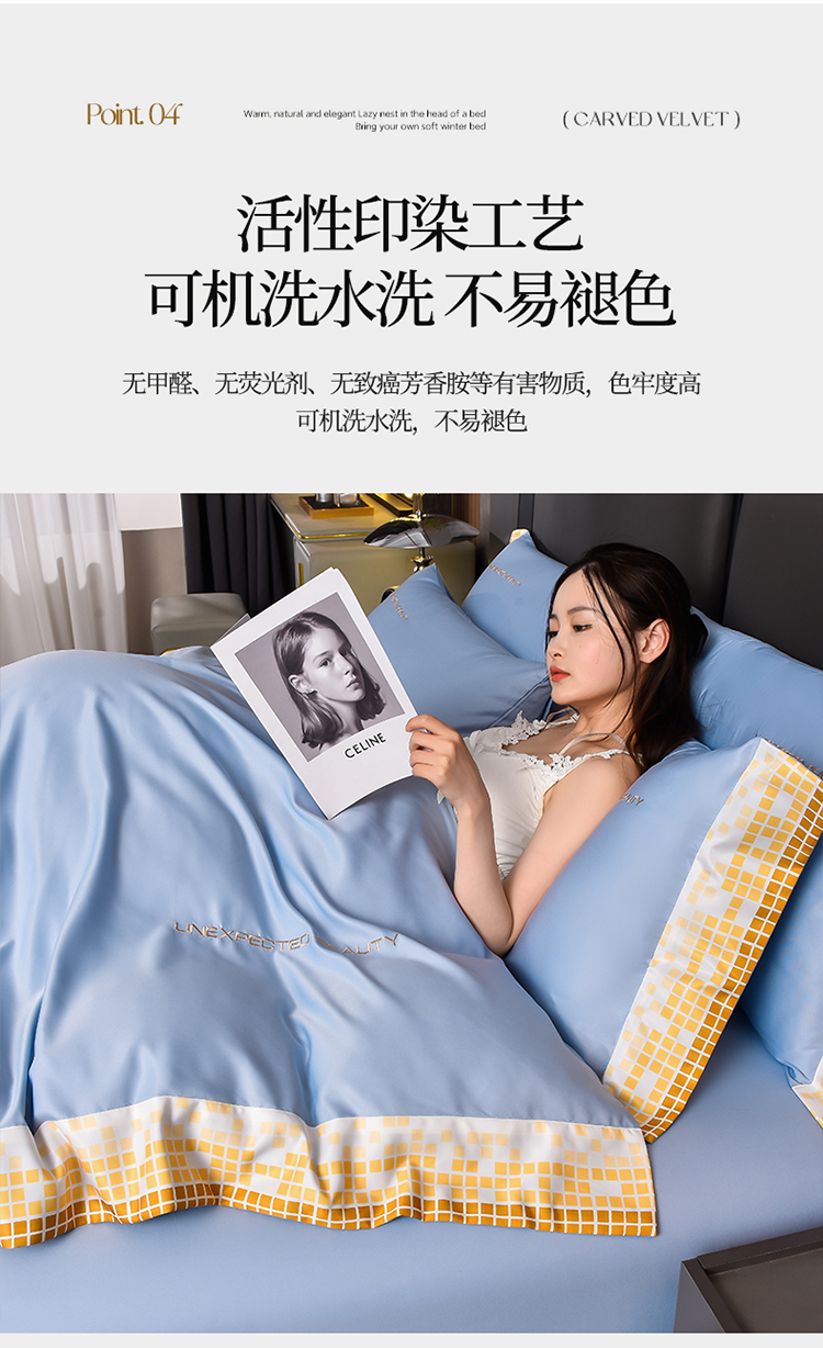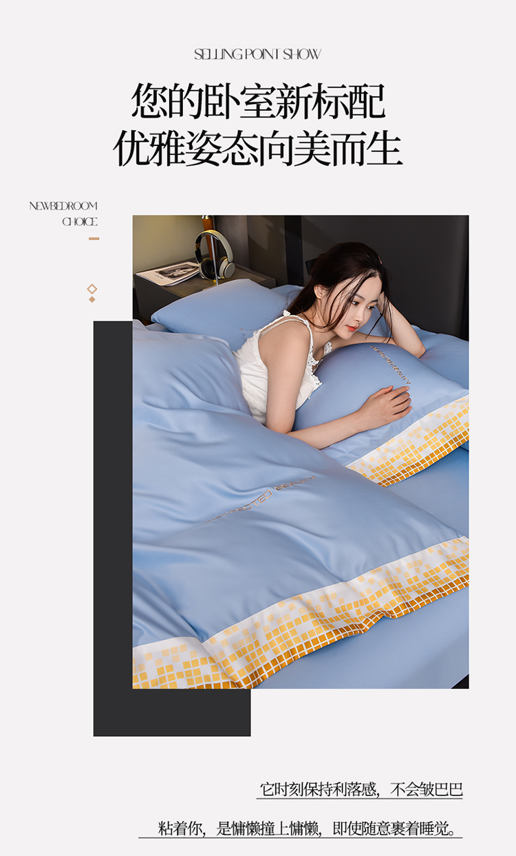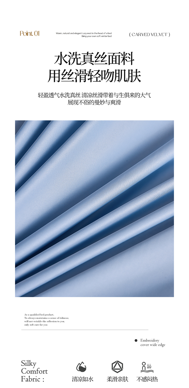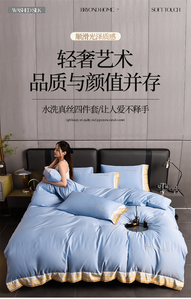 商品名称:米奈 2024新款A类水洗真丝四件套-星光 天空蓝