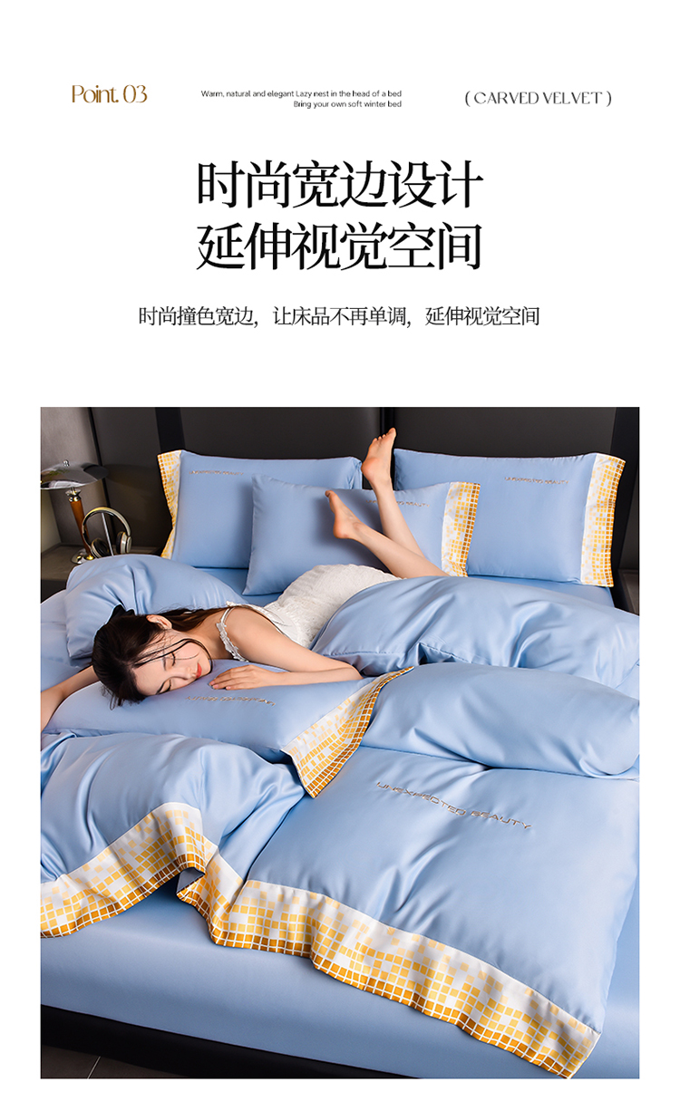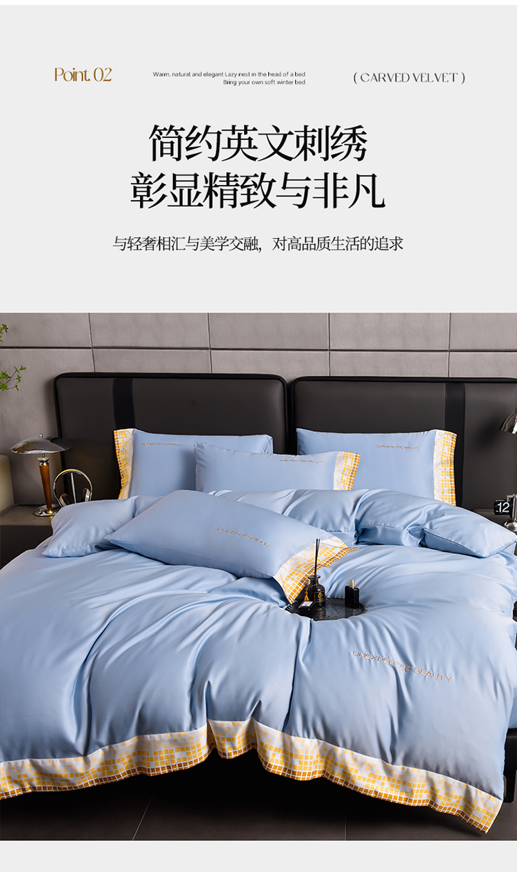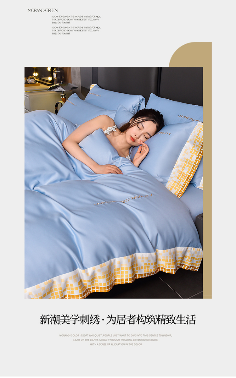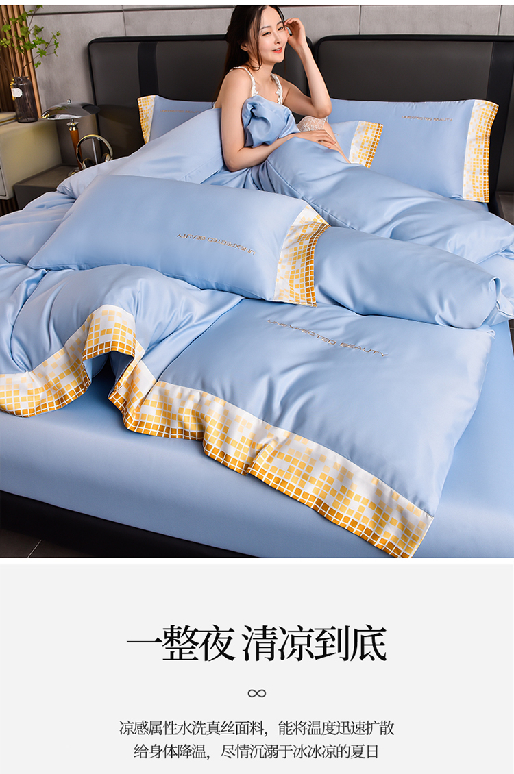 米奈 2024新款A类水洗真丝四件套-星光 天空蓝