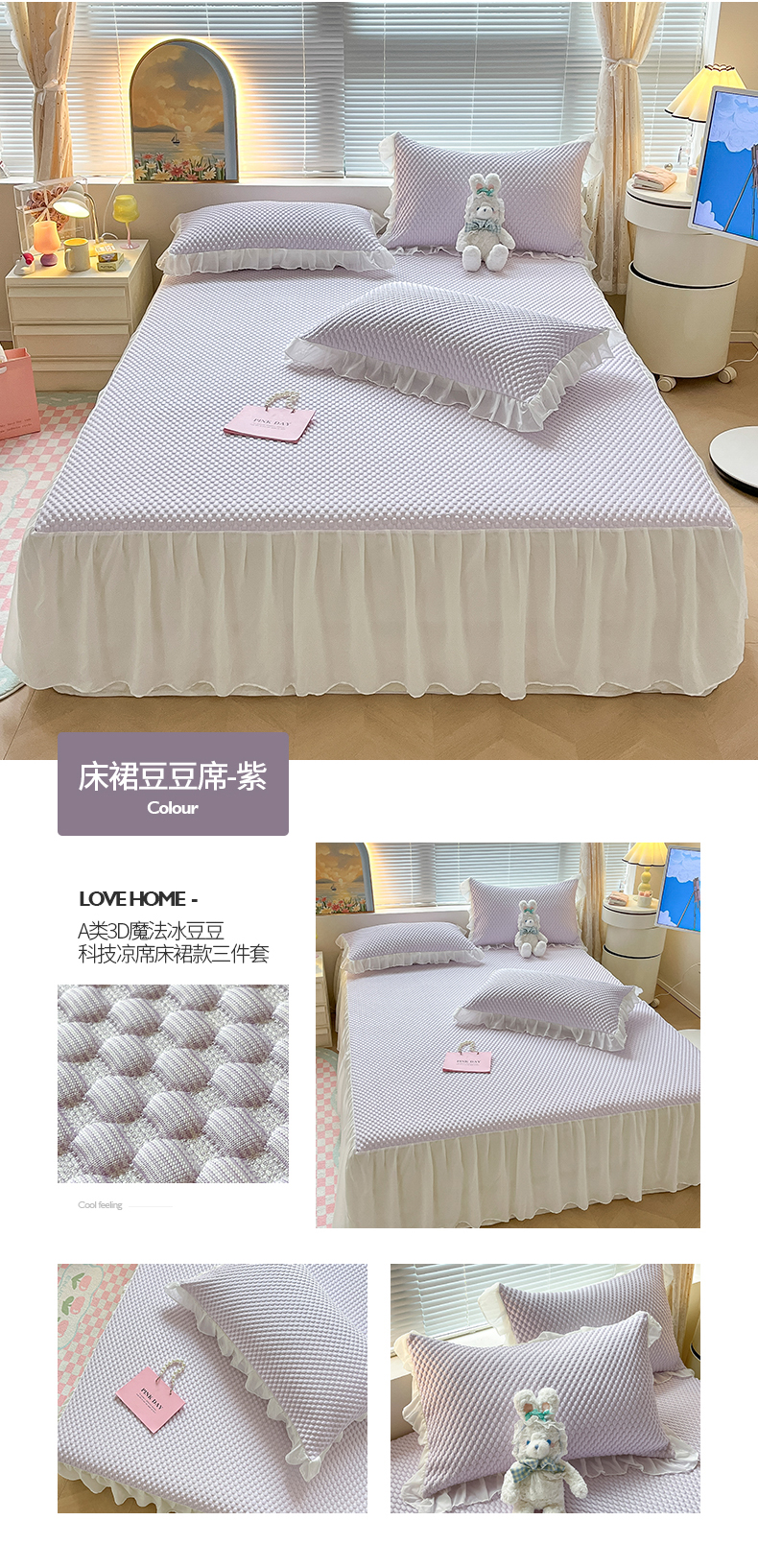 商品名称:2024新款A类3D魔法冰豆豆科技凉席床裙款三件套系列 床裙豆豆席-紫