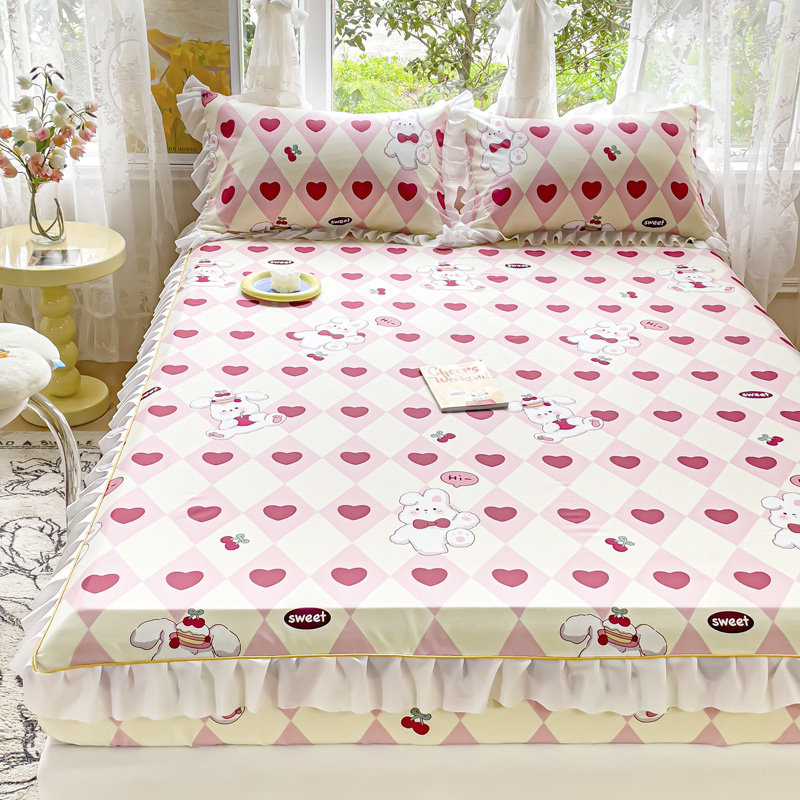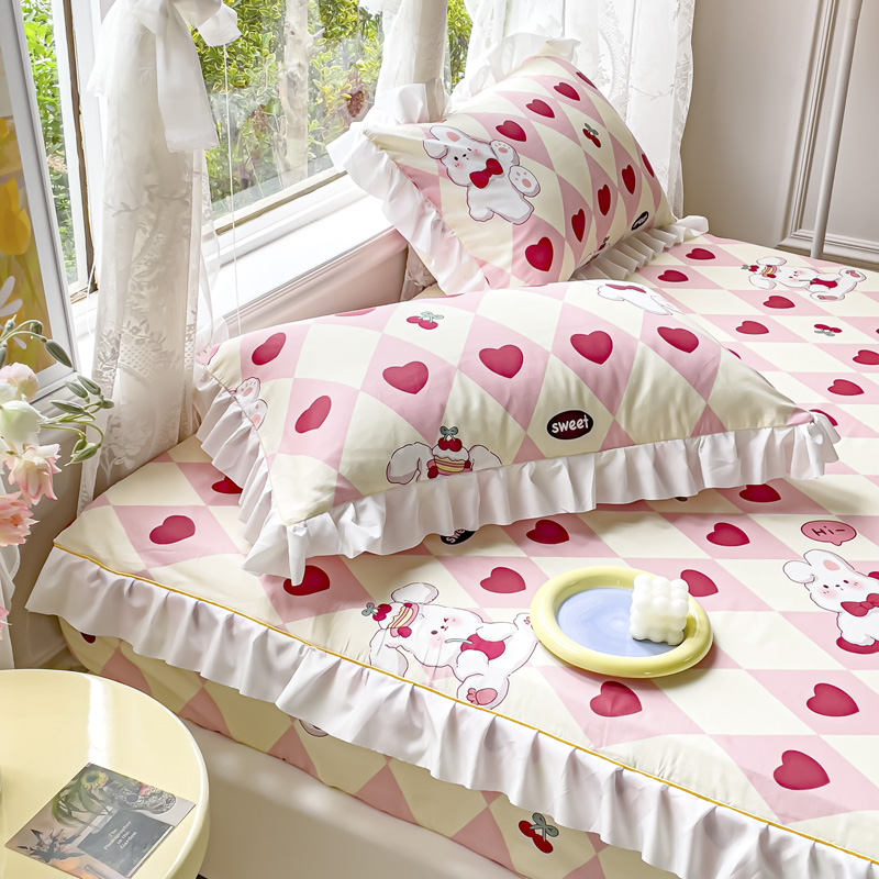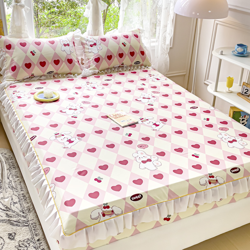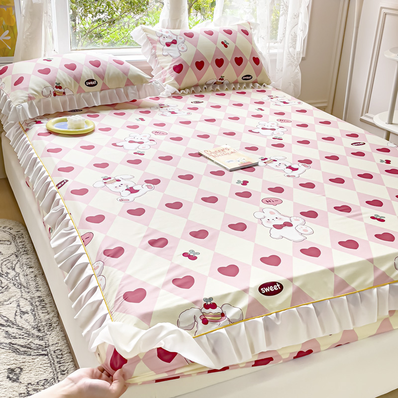 金丝鸟家纺 2023新款全棉花边床笠 英伦爱心