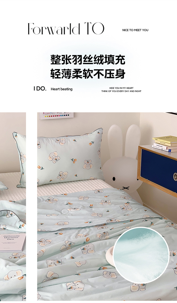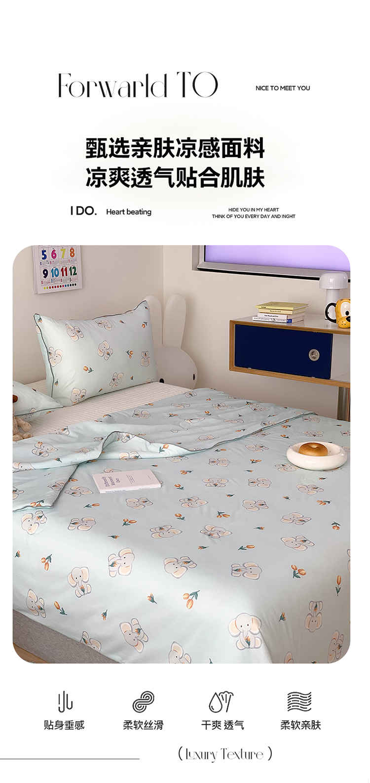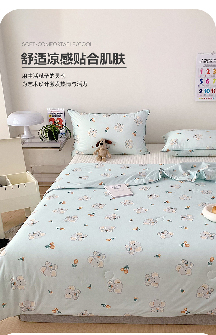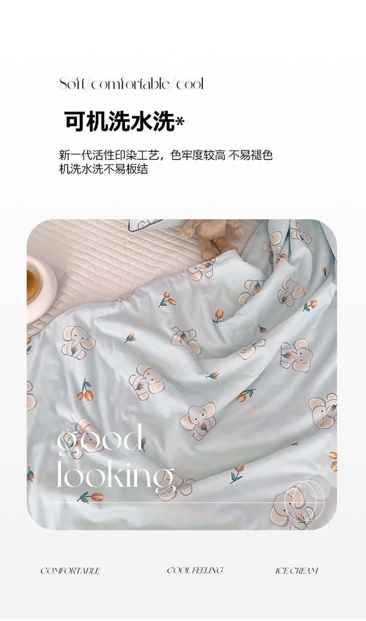 商品名称:全季 2023新款家居氨纶凉感卡通小清新夏被 花间小象