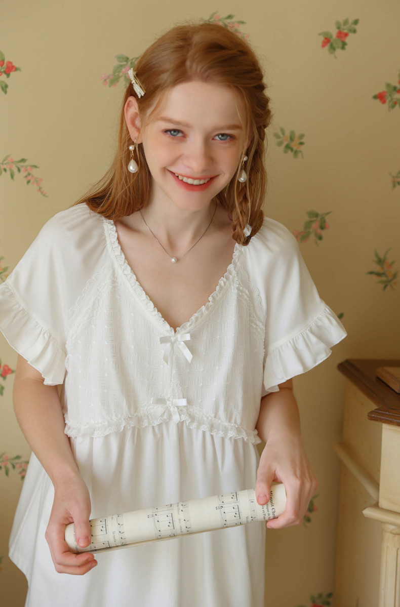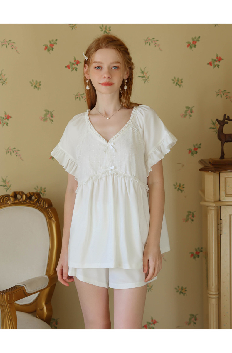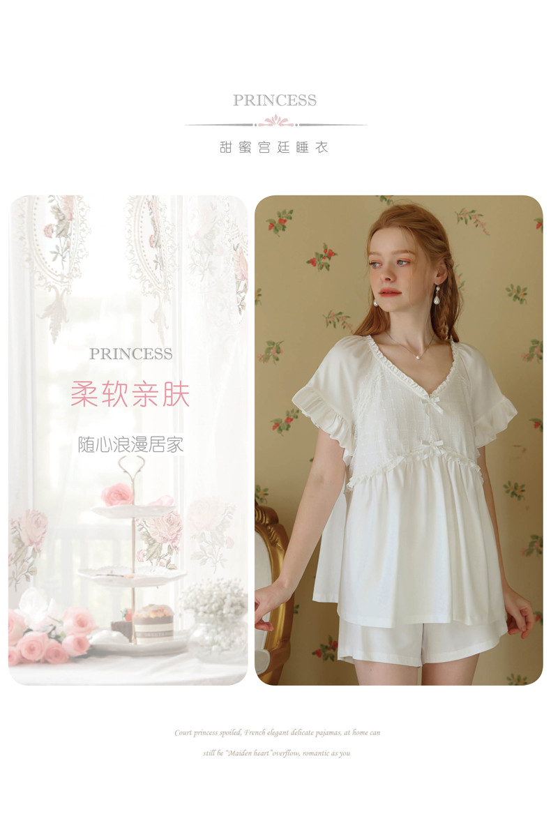 (总)洛兰沙家居馆 2024新款秋冬季清新款睡衣女三层夹棉珊瑚绒加厚保暖两件套女士可外穿加绒家居服,白色