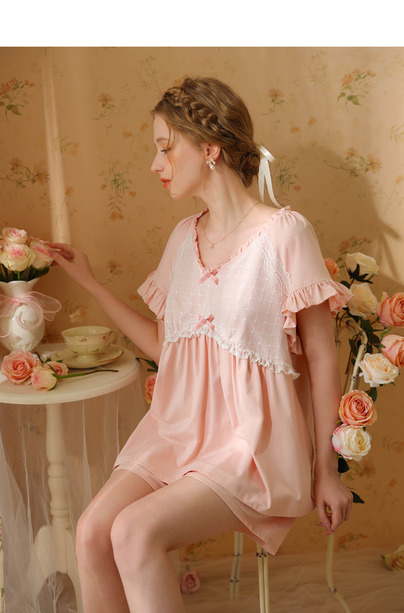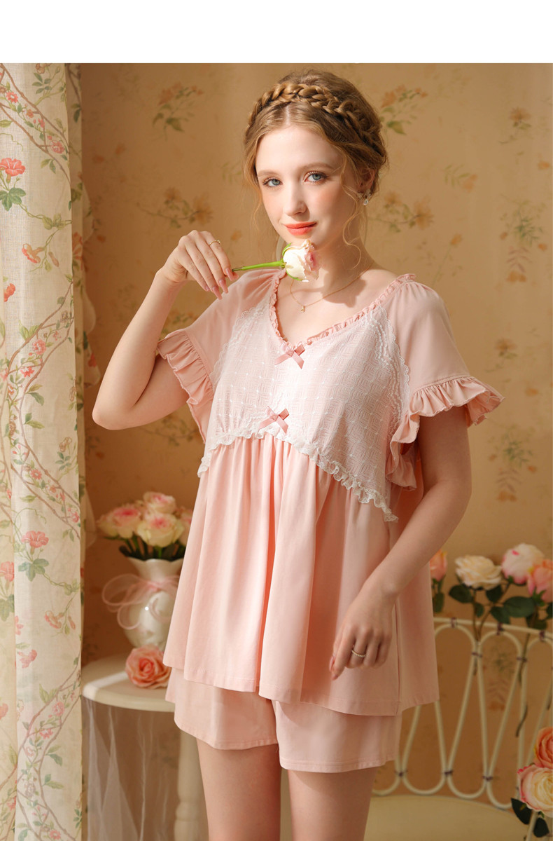 (总)洛兰沙家居馆 2025新款云涧全棉女士家居服七分袖九分裤套装夏季薄款睡衣宽松休闲简约风,云涧粉色,云涧绿色,组合图仅供参考不可下单
