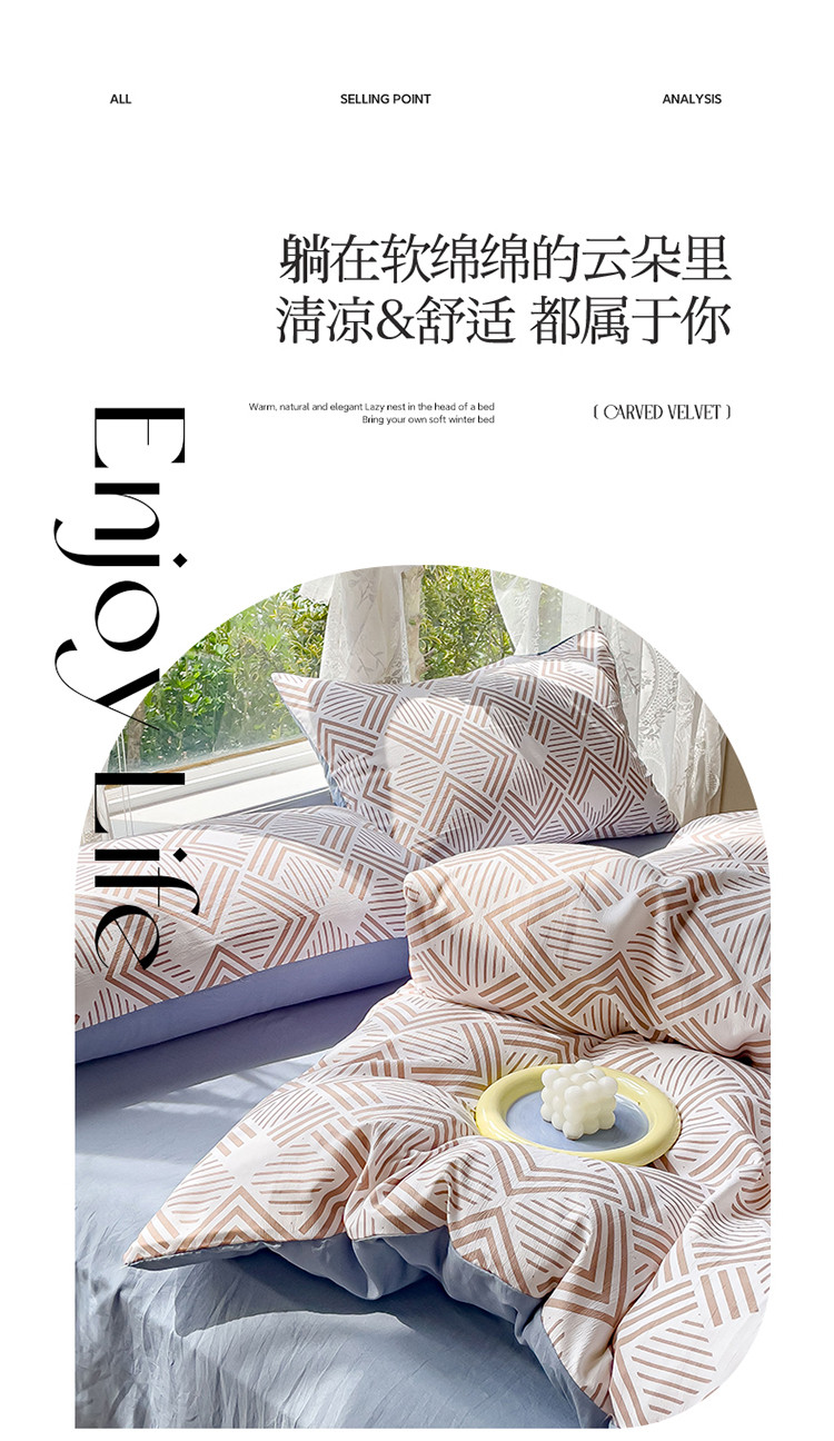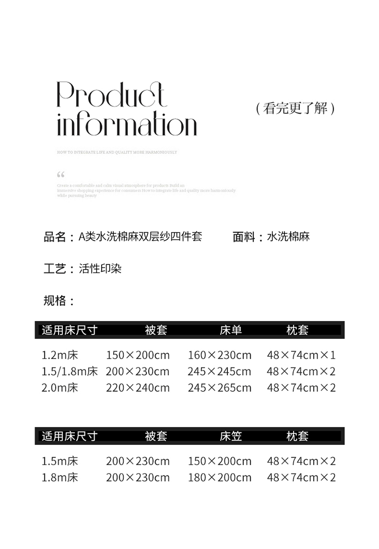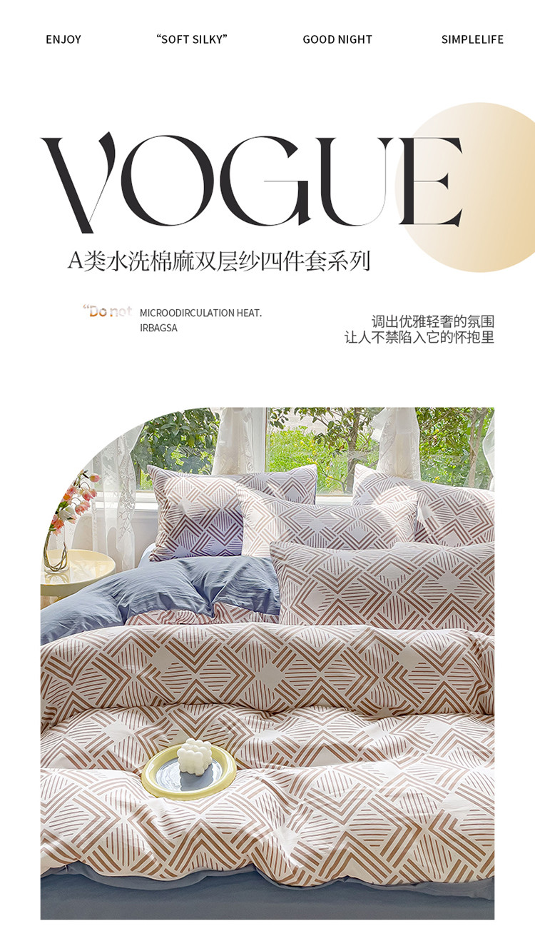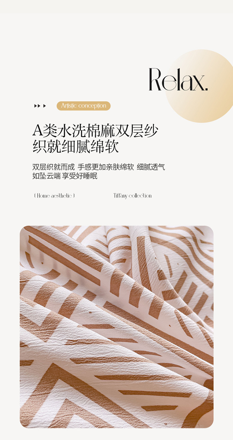 当前位置: 91家纺网 > 商品网购 > 床品套件 > 四件套 > 化纤普通四件套 > 米瑞娜 2024新款春夏105克双层纱水洗棉麻印花四件套 维纳斯