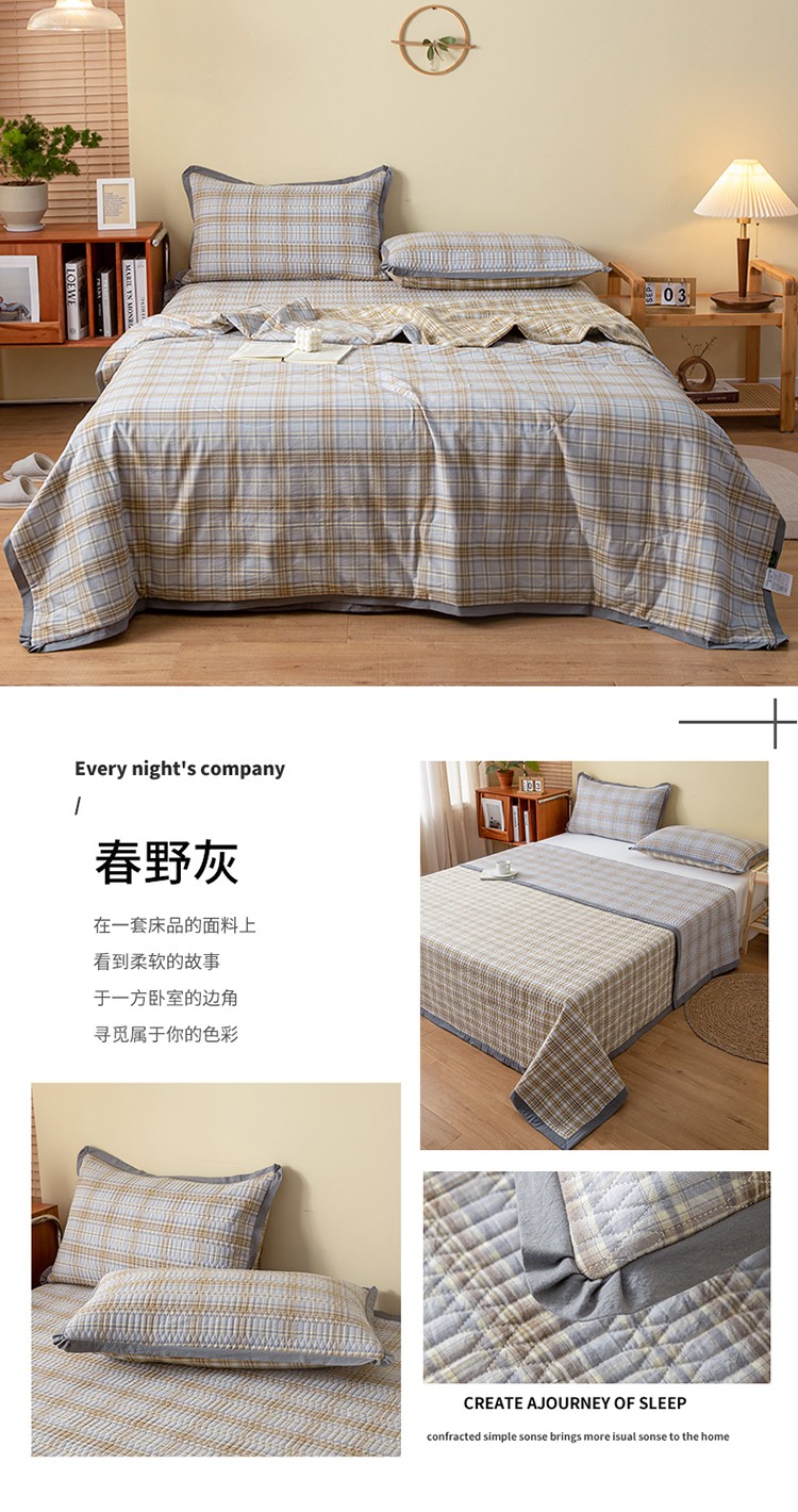 上喜 热卖色织全棉水洗棉格纹款床盖三件套多功能被子四件套 春野灰