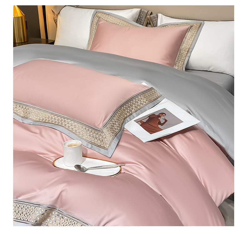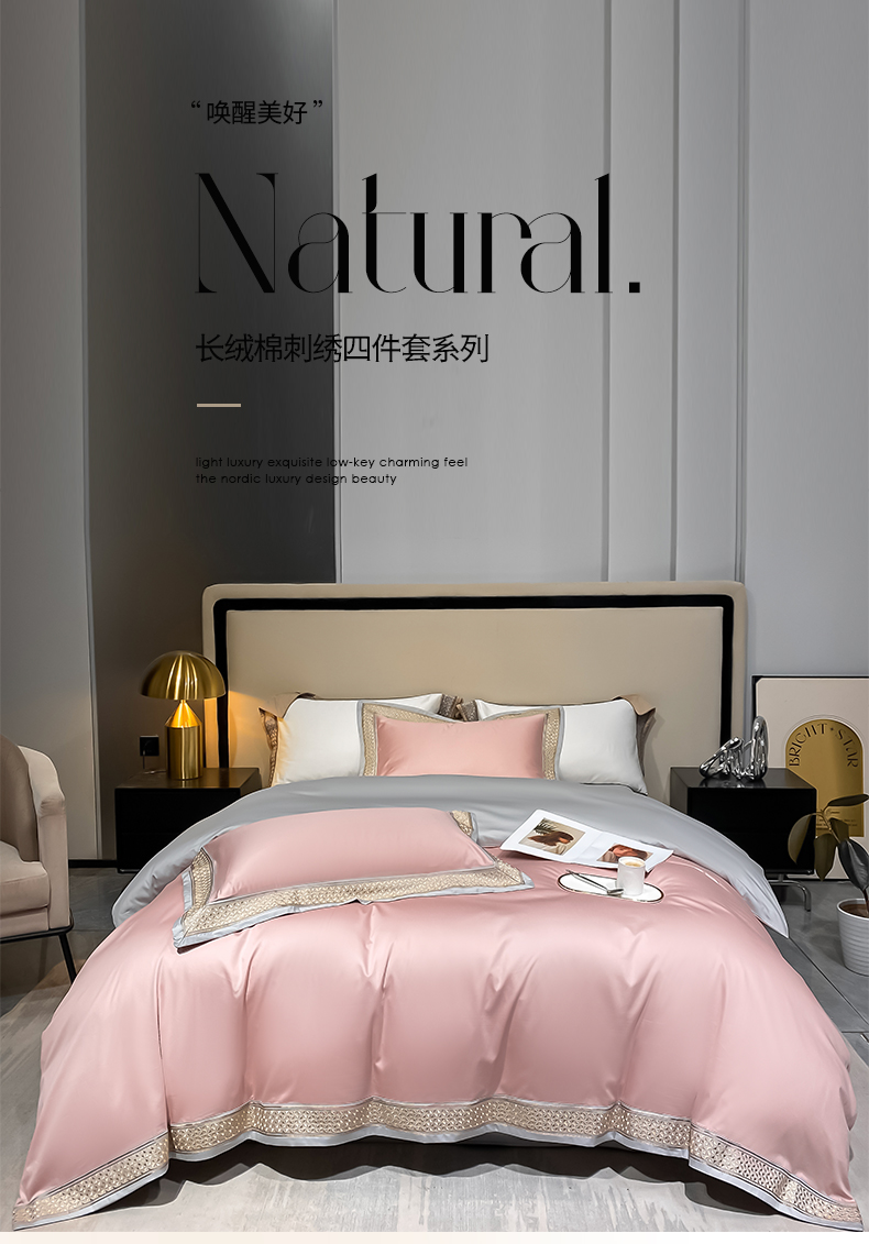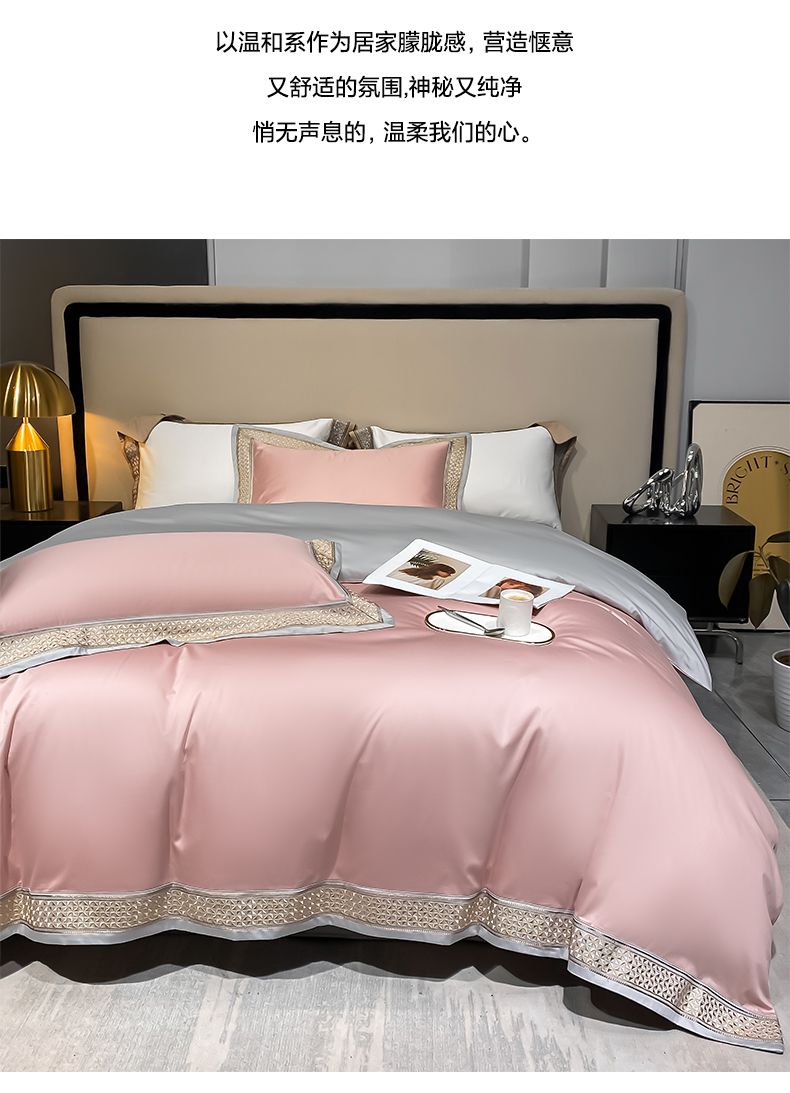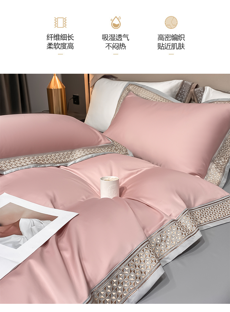 金麦 2023款40支13372全棉刺绣四件套—简尚系列 简尚-浅豆沙