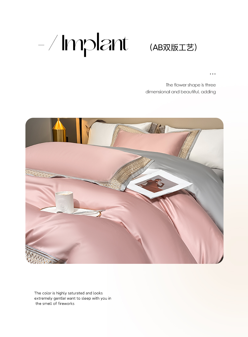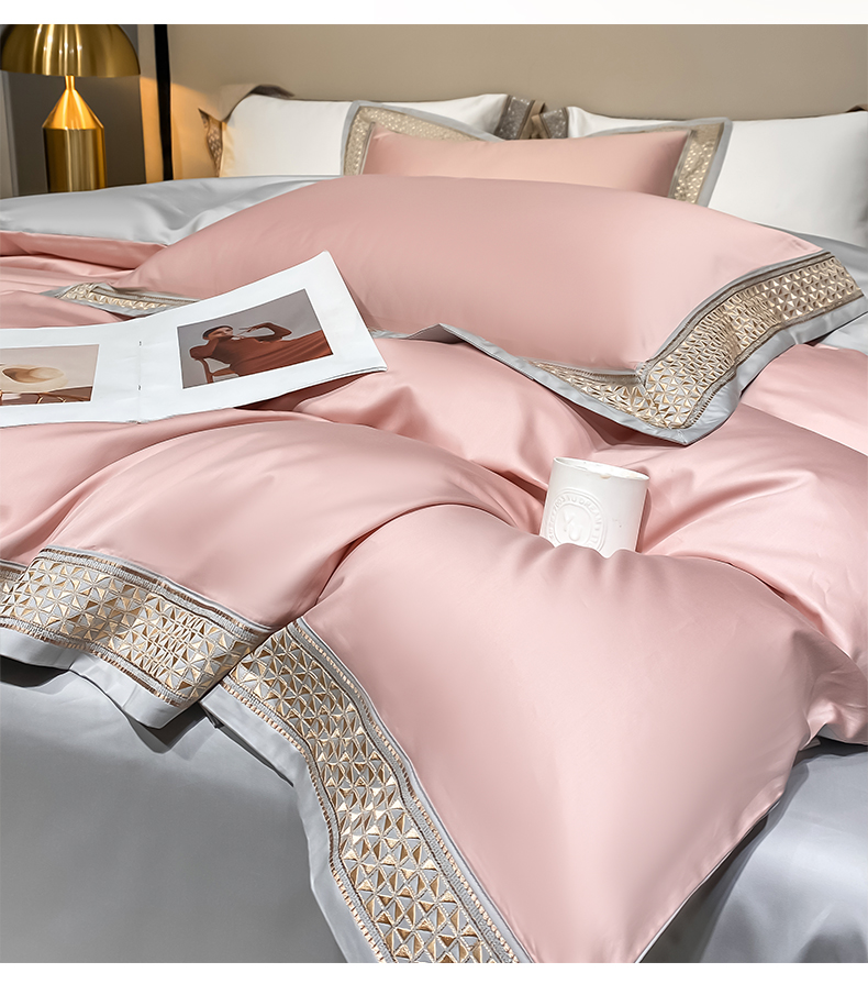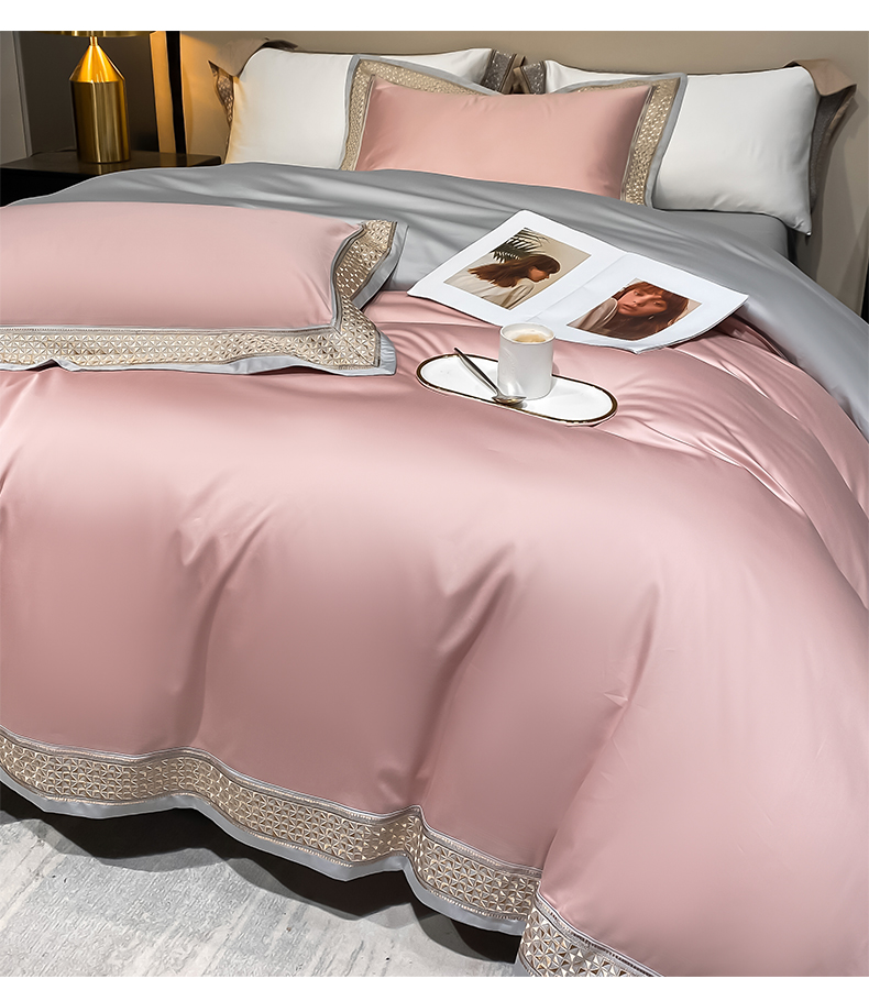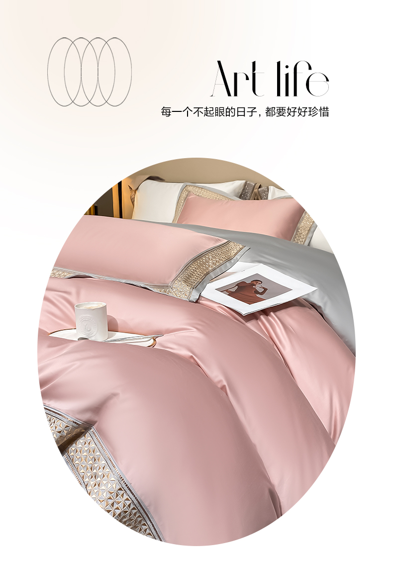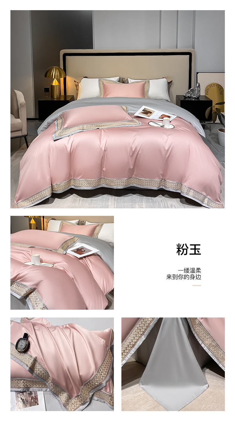 金麦 2023款40支13372全棉刺绣四件套—简尚系列 简尚-浅豆沙