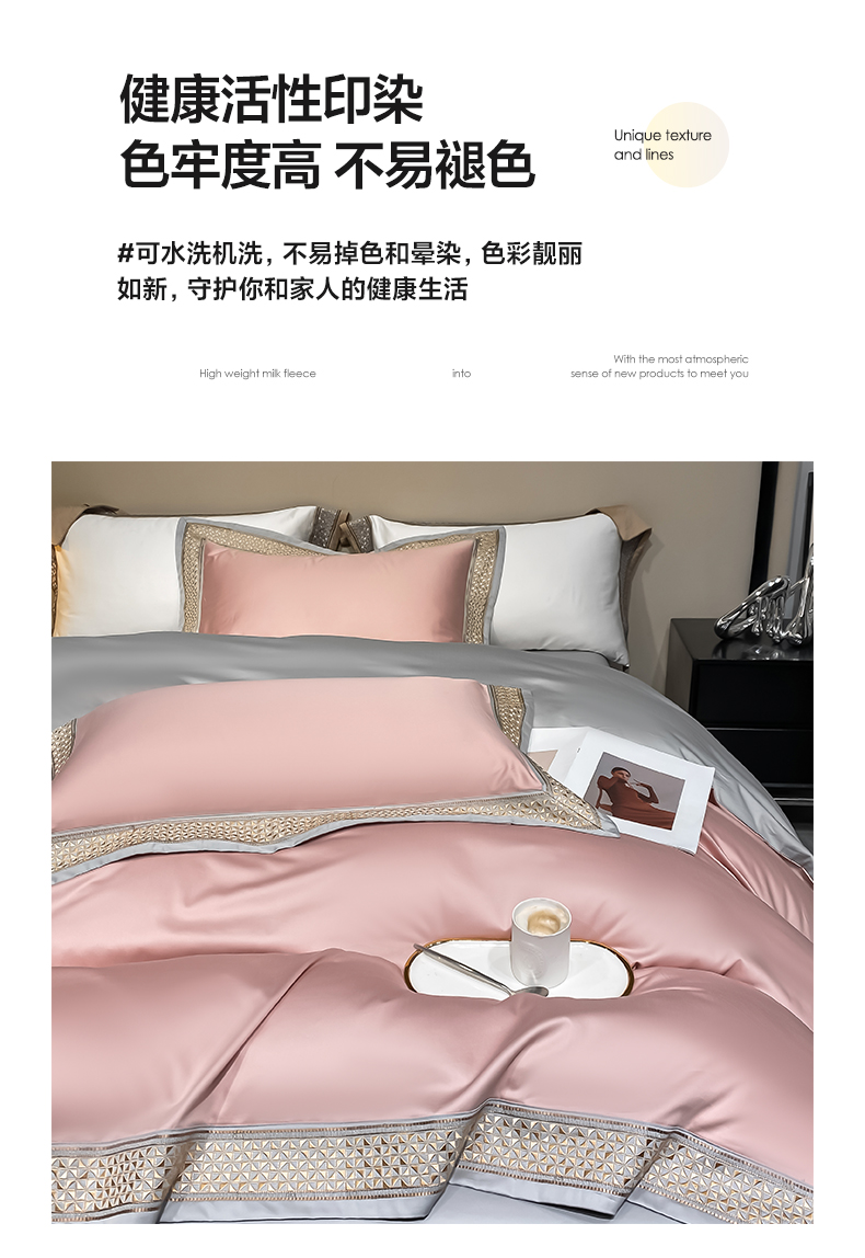 (总)金麦家纺 2025新款牛奶绒撞色拼边四件套贝拉系列,贝拉-海洋蓝,贝拉-宾利蓝,贝拉-粉色,贝拉-灰色,贝拉-香槟色