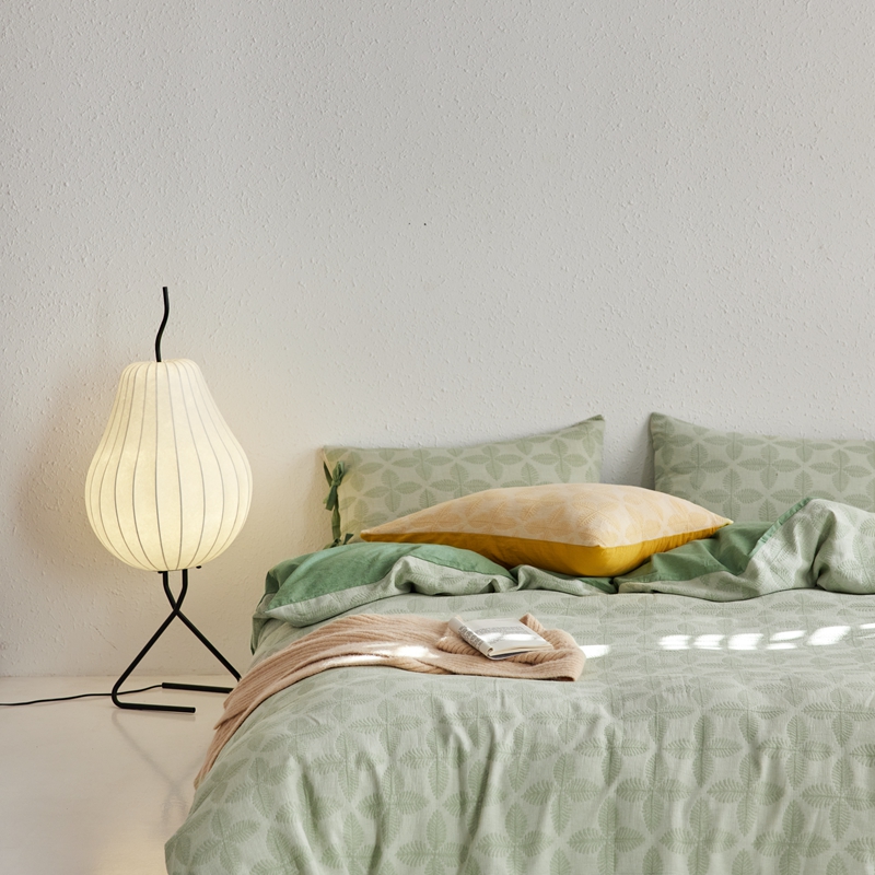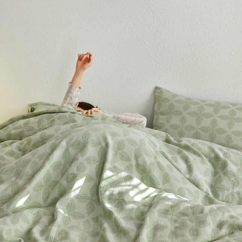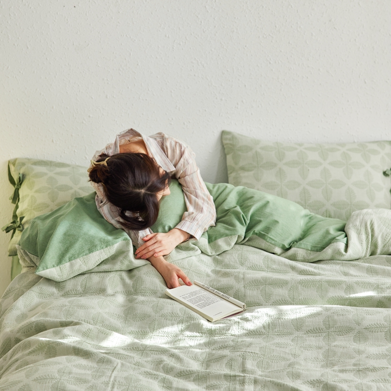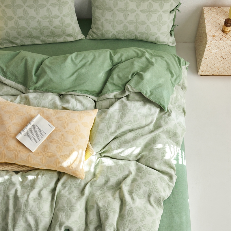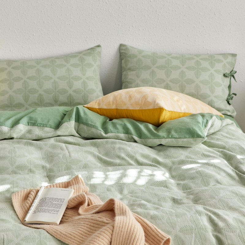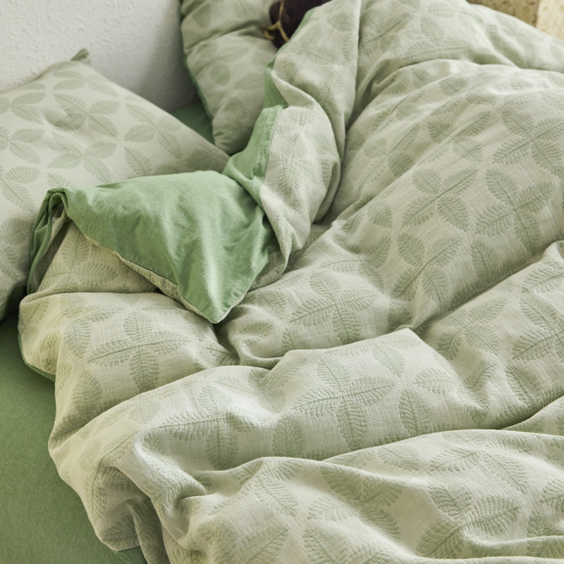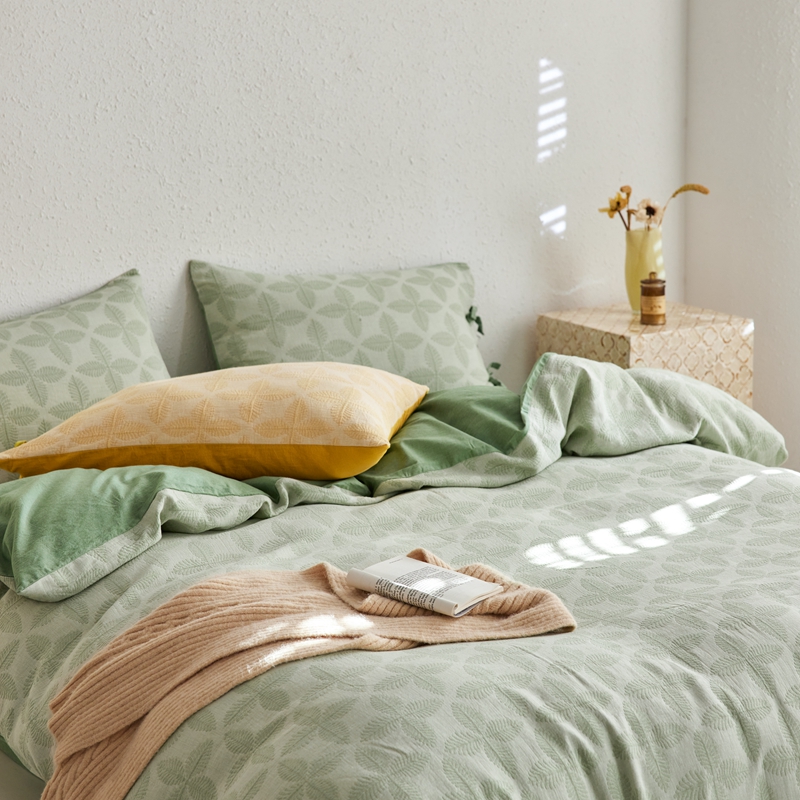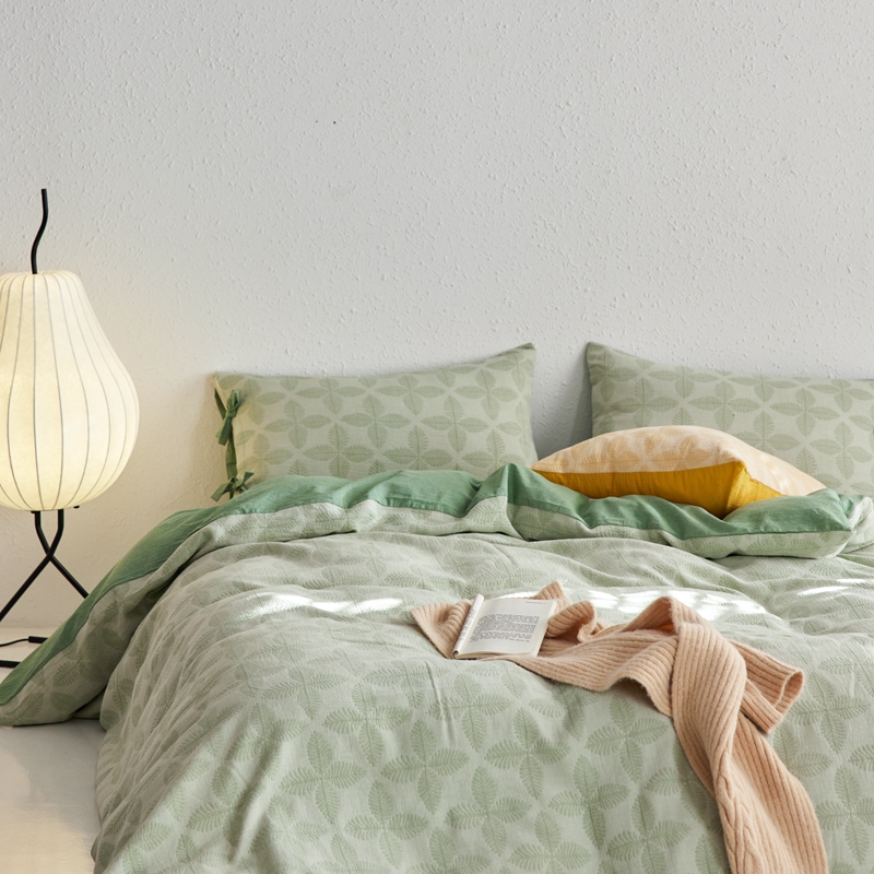 安莱生活 2023年新款高端双层纱栀子花色织大提花蝴蝶结工艺款四件套 幸运草-嫩绿