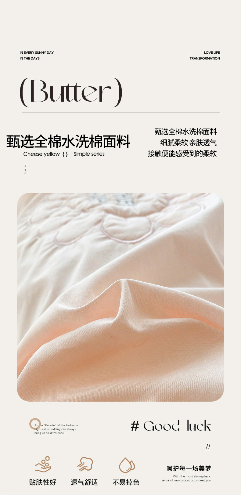 (总)乐嘉盈2025新款全棉水洗棉立体提花贴布绣四件套,淡紫粉,青草绿,晴空蓝,微微紫,象牙黄
