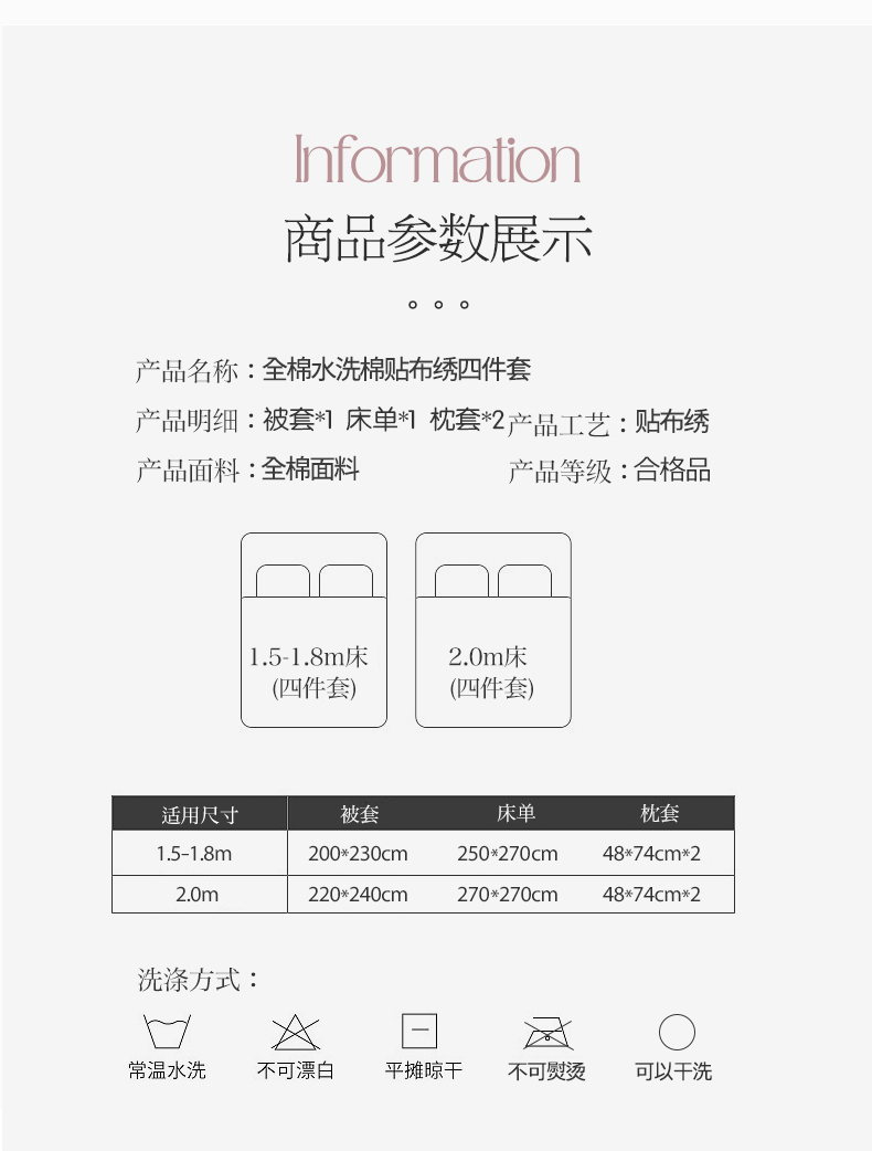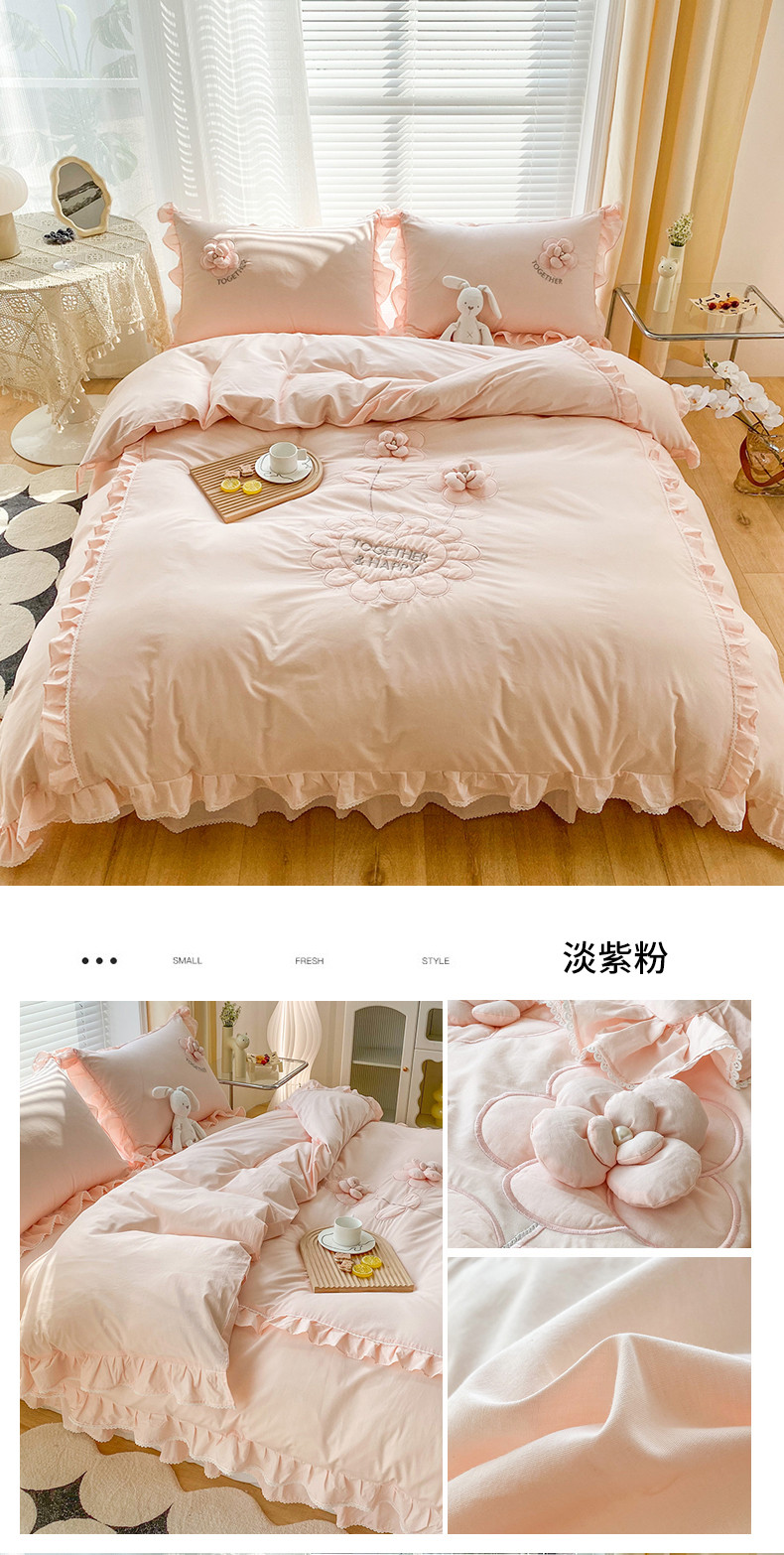 商品名称:乐嘉盈2025新款全棉水洗棉立体提花贴布绣四件套 淡紫粉