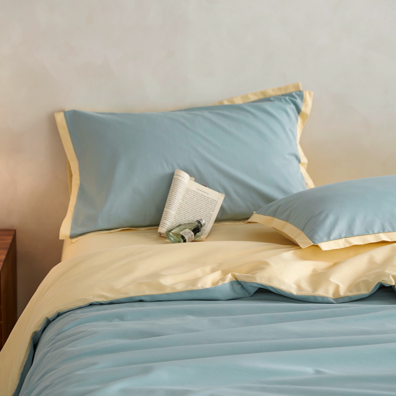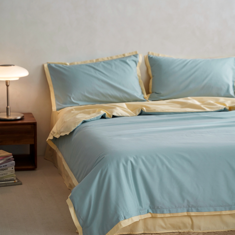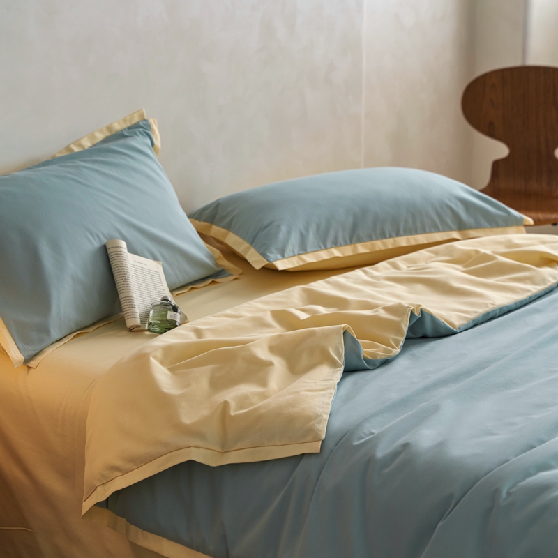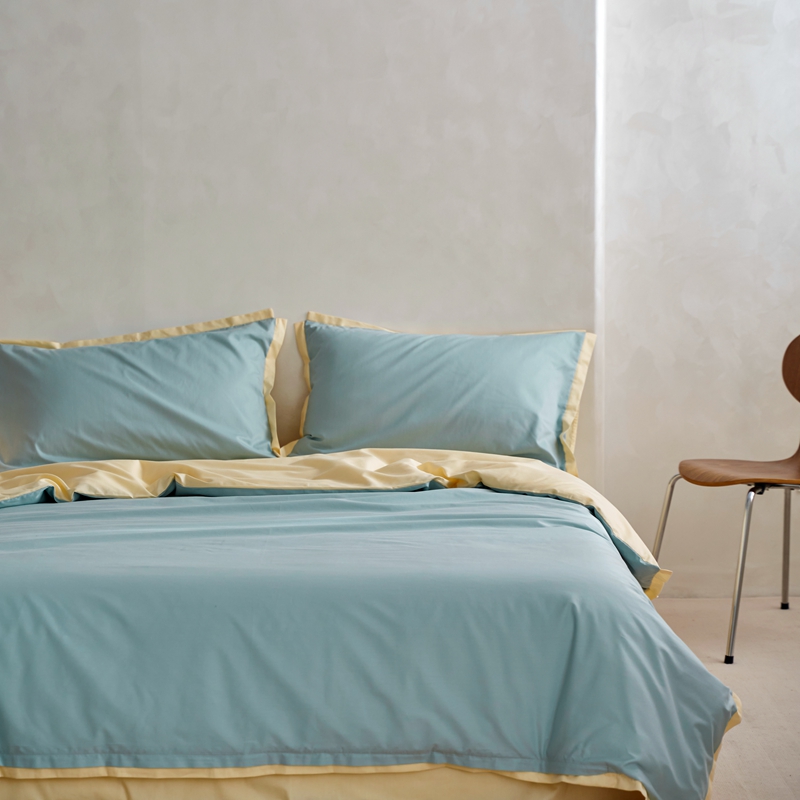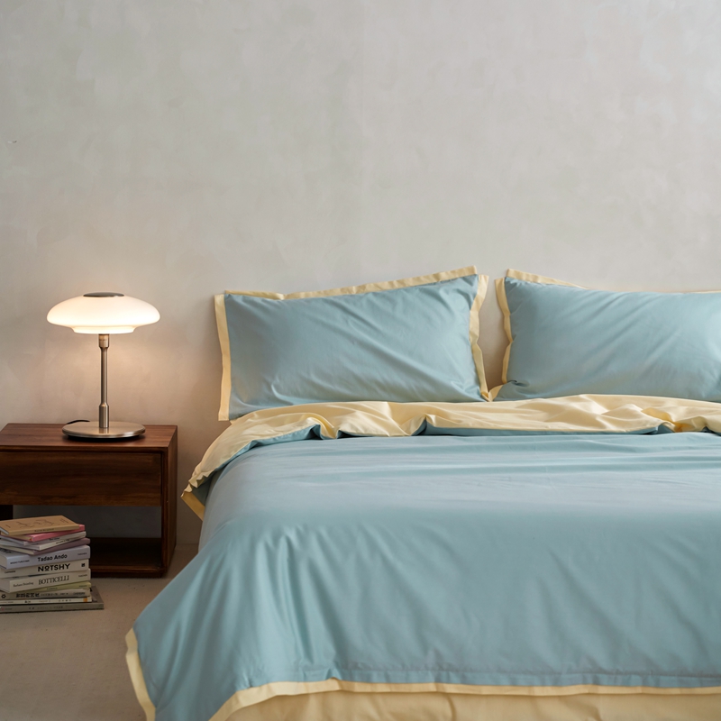 当前位置: 91家纺网 > 商品网购 > 床品套件 > 四件套 > 全棉普通四件套 > 安莱生活 2023新款60贡缎双拼小宽边四件套 青柠双拼奶黄