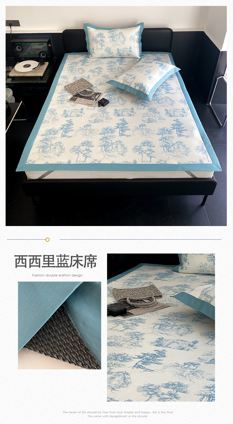 (总)三味舒屋 2025新款麦吉拉时尚印花冰藤凉席席子,麦吉拉 米 床席,麦吉拉 蓝 床席,麦吉拉蓝 床笠,麦吉拉米 床笠