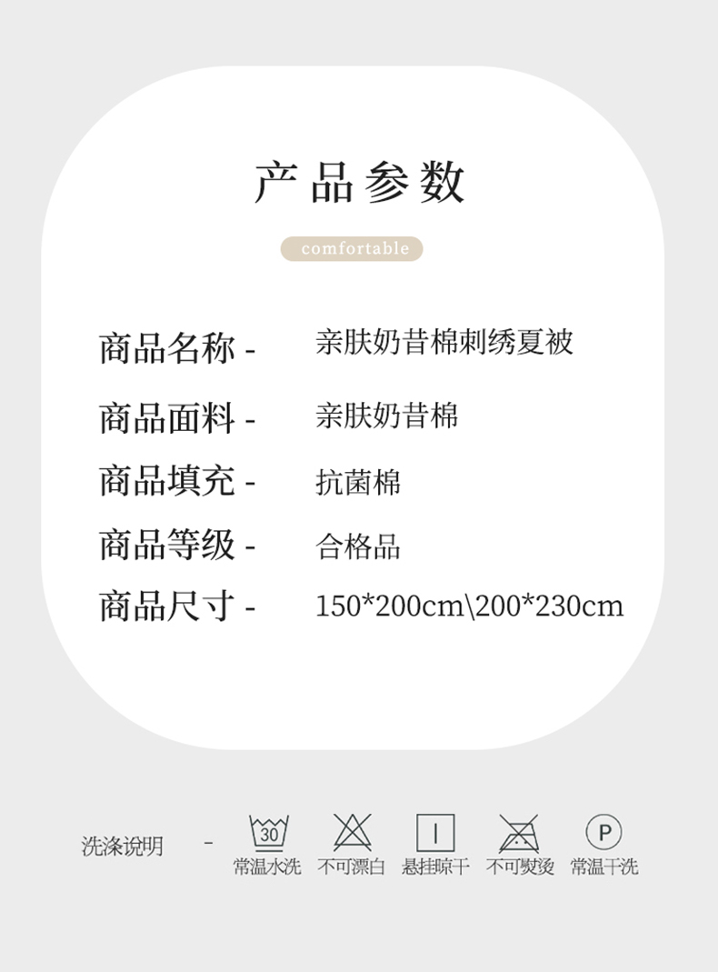 商品名称:(总)尊康家纺(原磊科) 2024新款亲肤奶昔棉刺绣夏被