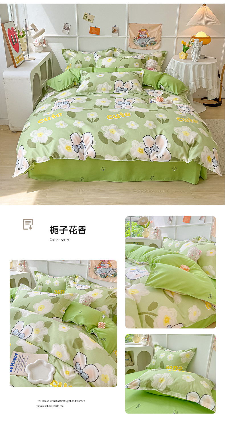 商品名称:花伞家居 2024直播网销斜纹加厚磨毛印花植物羊绒四件套 栀子花香