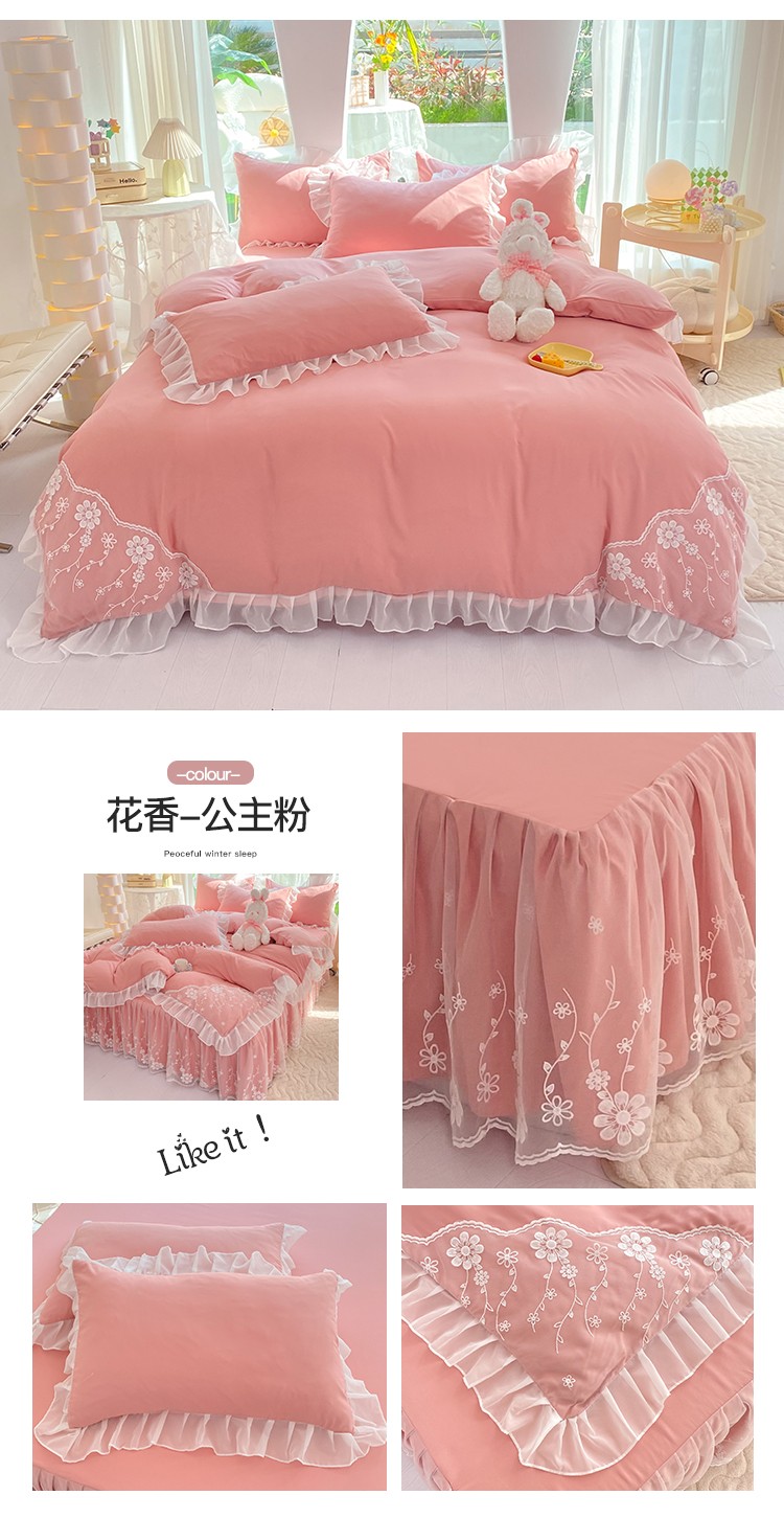 商品名称:唐人居 2025新款水洗棉麻花边款花香系列四件套 花香-公主粉