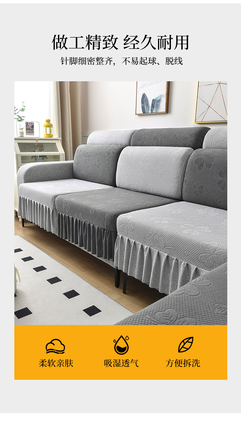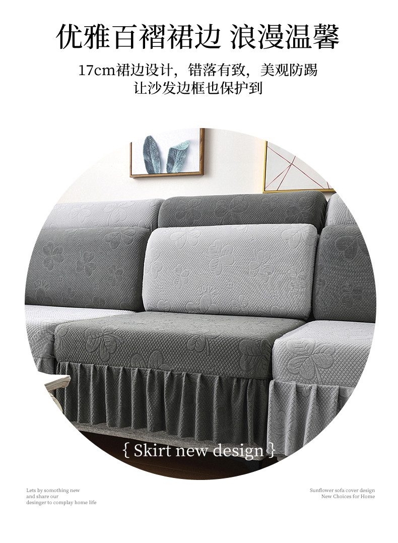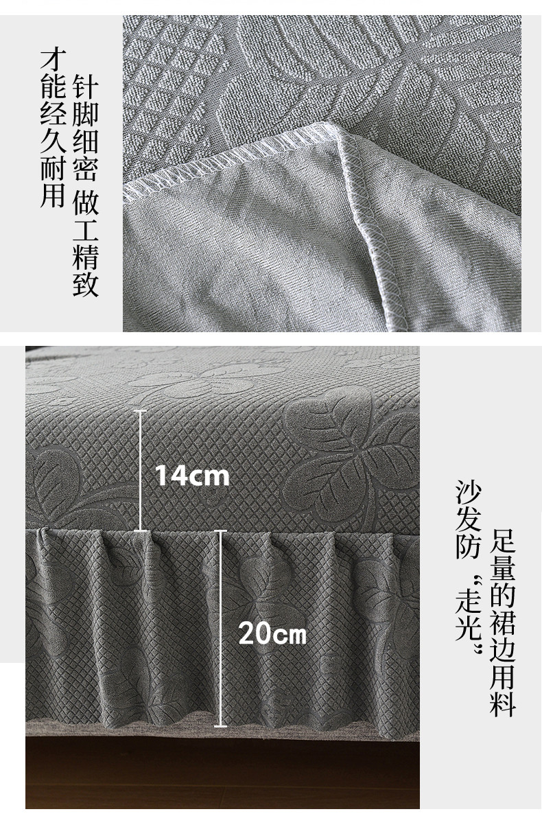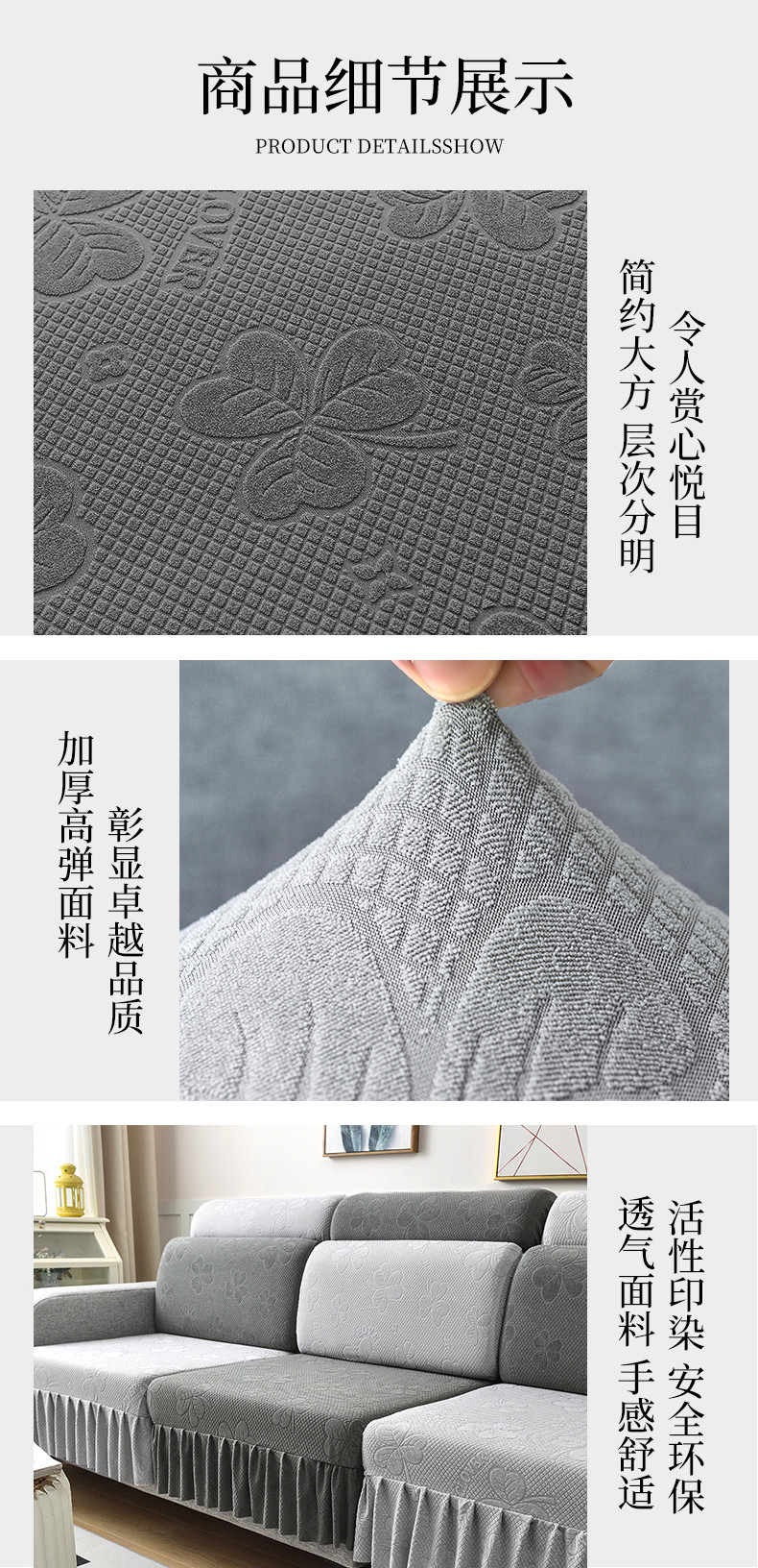 当前位置: 91家纺网 > 商品网购 > 居家布艺 > 坐垫/椅垫/沙发垫 > 沙发垫 > 千彤 2023新款裙边-三叶草沙发笠系列 沙发套罩 深灰银灰