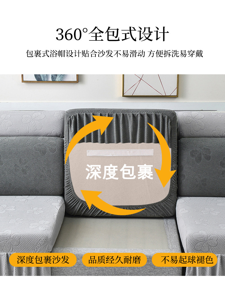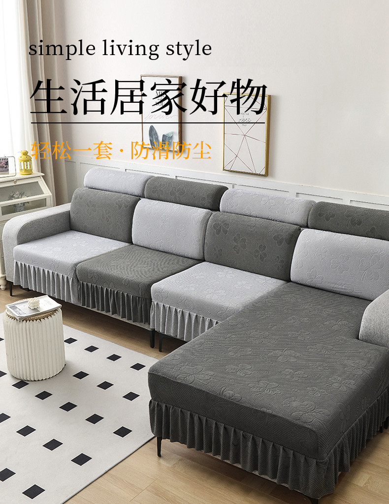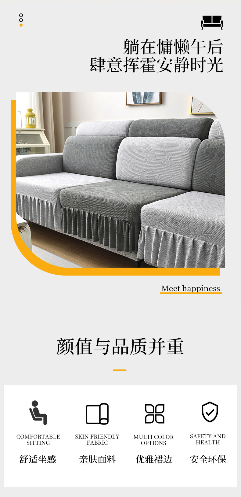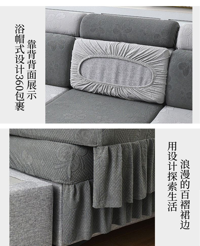 当前位置: 91家纺网 > 商品网购 > 居家布艺 > 坐垫/椅垫/沙发垫 > 沙发垫 > 千彤 2023新款裙边-三叶草沙发笠系列 沙发套罩 深灰银灰
