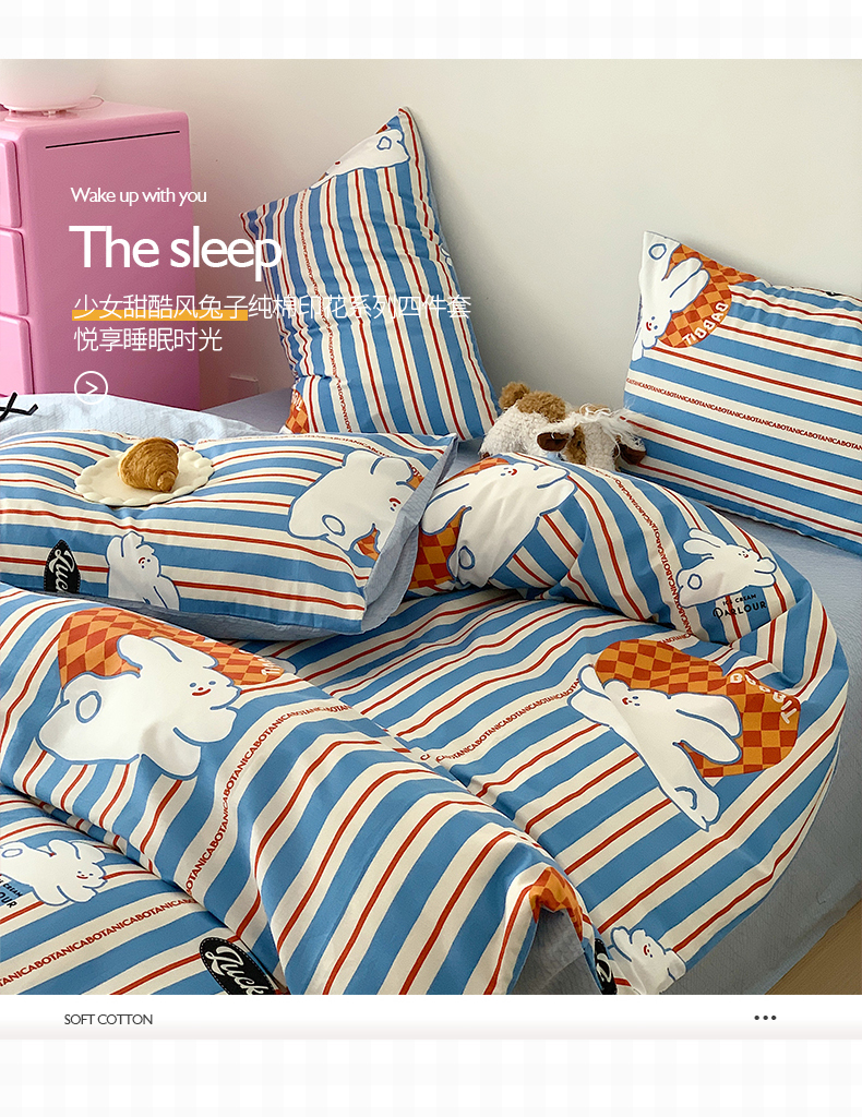 当前位置: 91家纺网 > 商品网购 > 床品套件 > 桃子 2023新款少女甜酷风兔子纯棉印花系列四件套 纯棉-查理兔