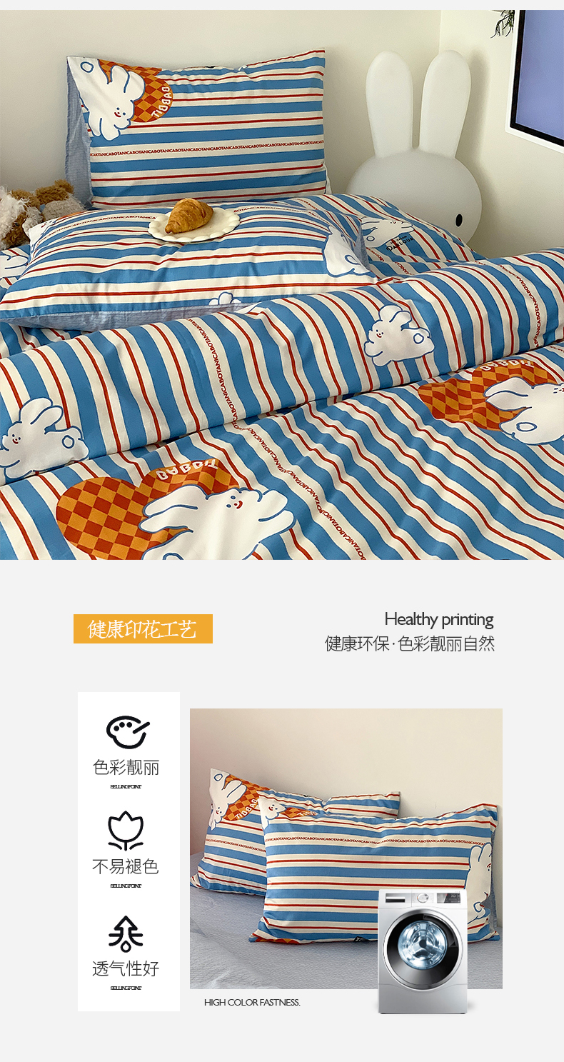 桃子 2023新款少女甜酷风兔子纯棉印花系列四件套 纯棉-查理兔