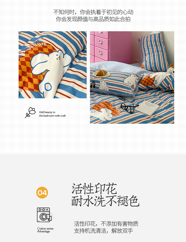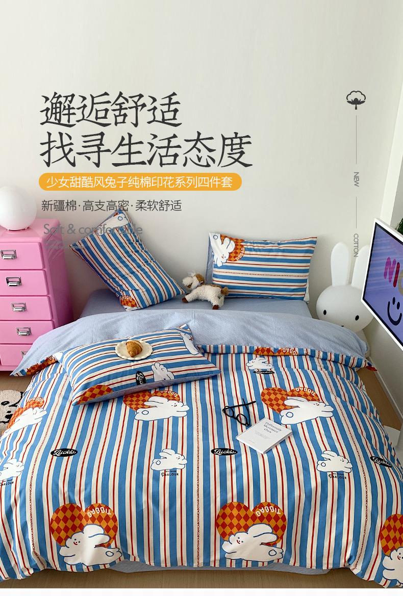 • 91家纺网 家纺一手货源 找家纺 桃子 2023新款少女甜酷风兔子纯棉印花系列四件套 纯棉-查理兔