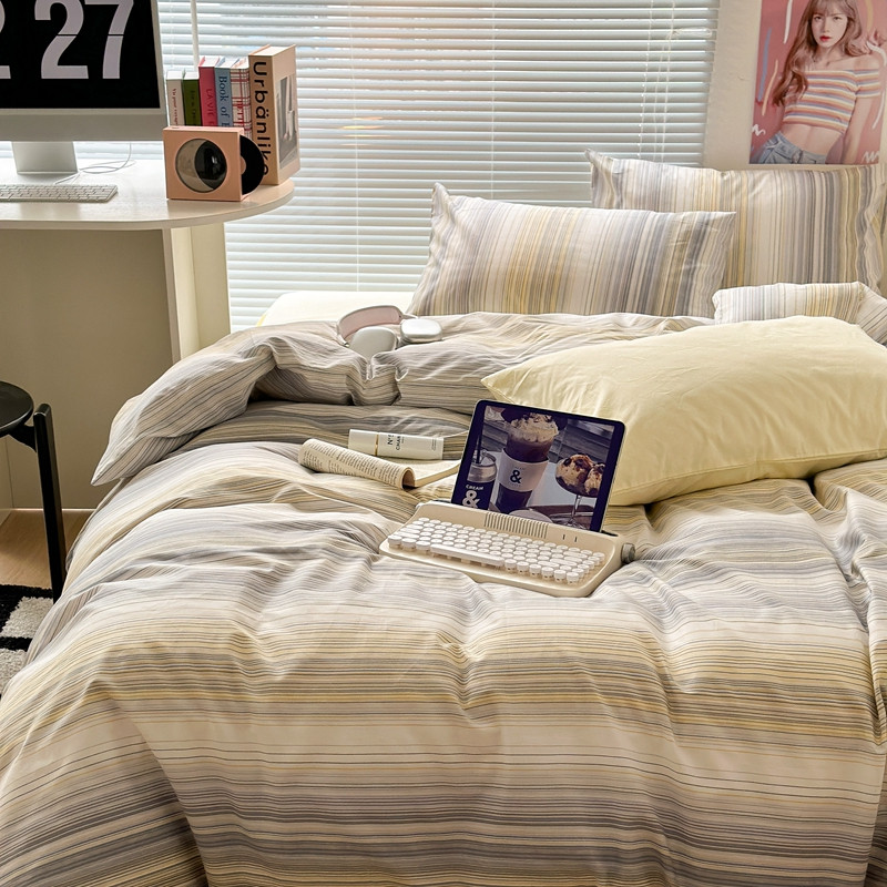商品名称:昔可家纺 2023新款全棉学生季北欧风四件套 轻奢彩条
