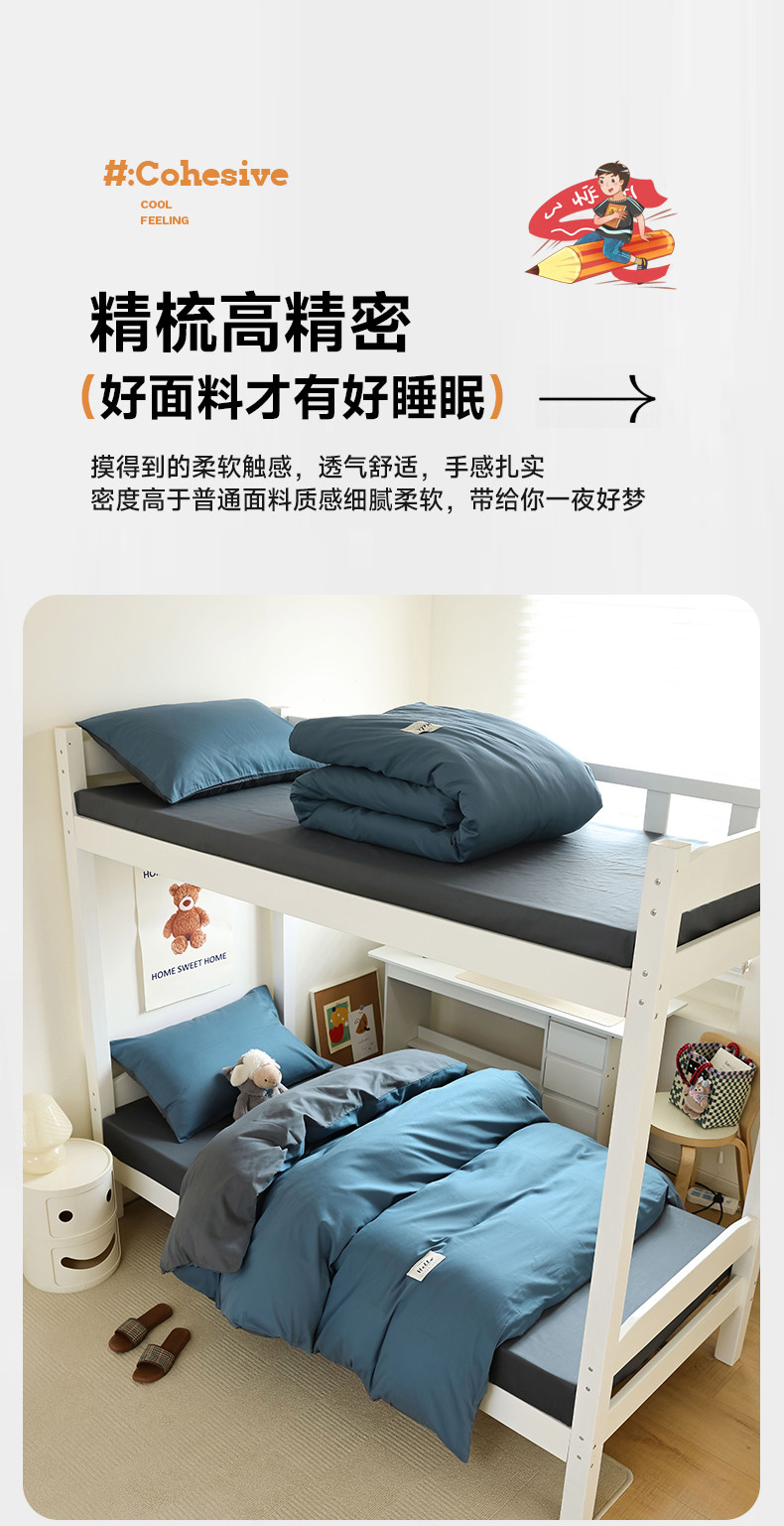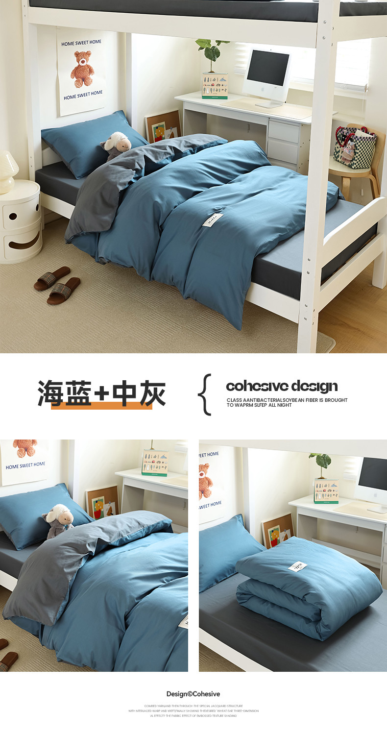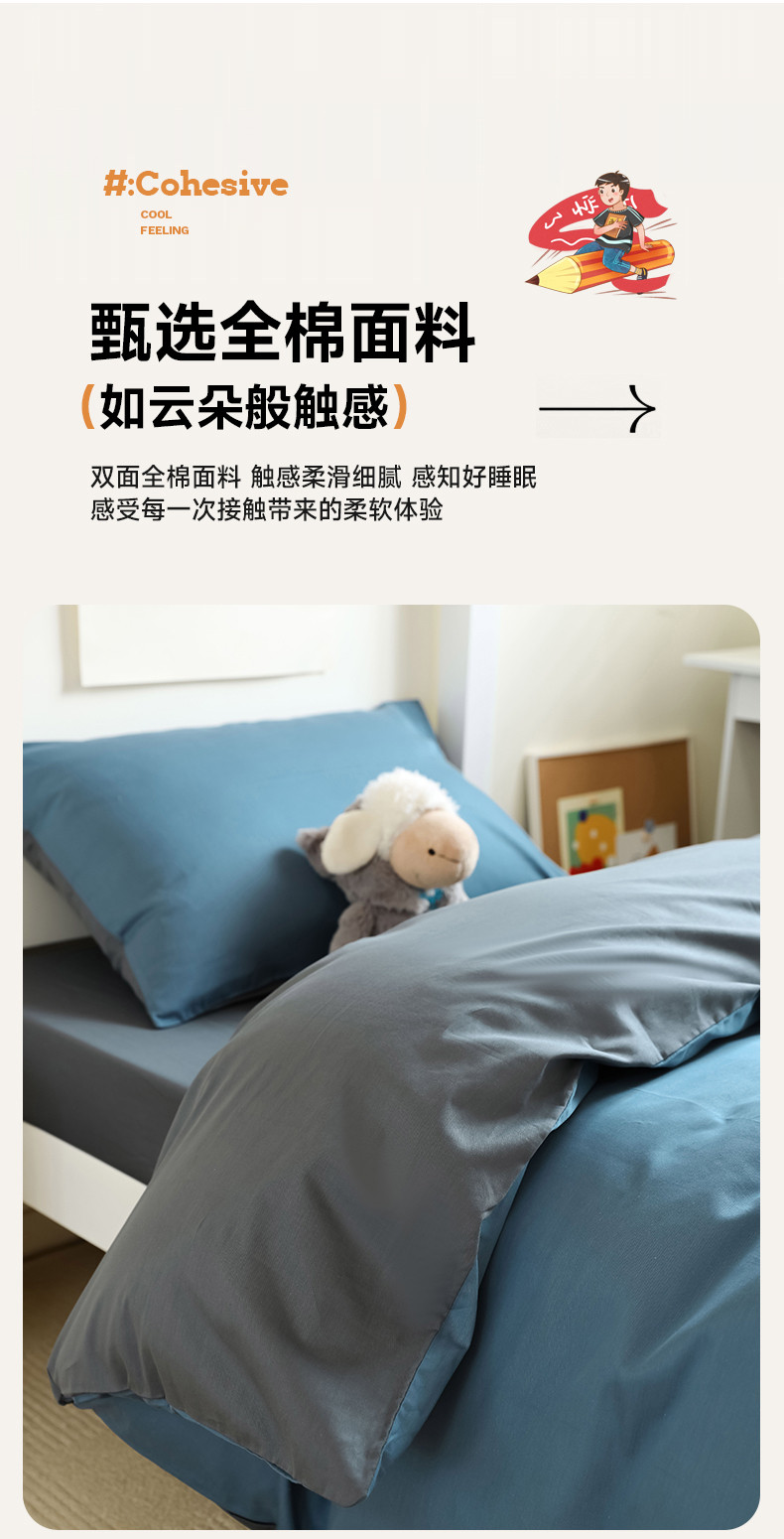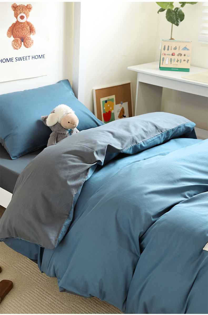 当前位置: 91家纺网 > 商品网购 > 床品套件 > 四件套 > 全棉普通四件套 > 寐眠 23款13372纯棉40s纯色双拼学生三件套四件套 海蓝+中灰