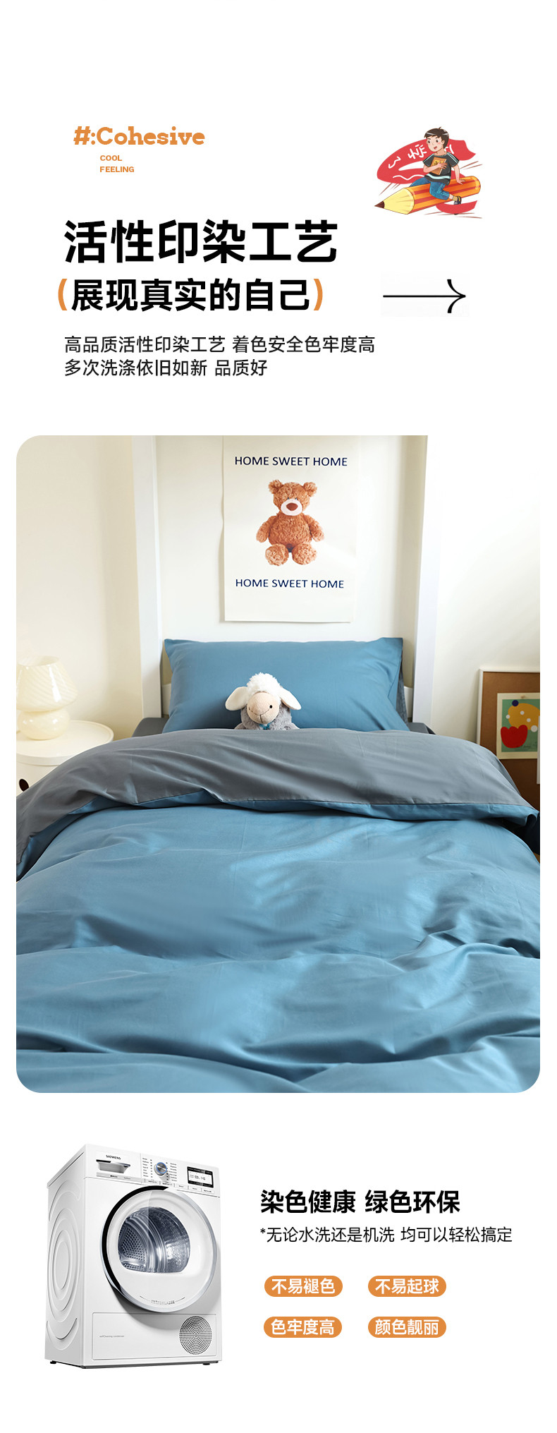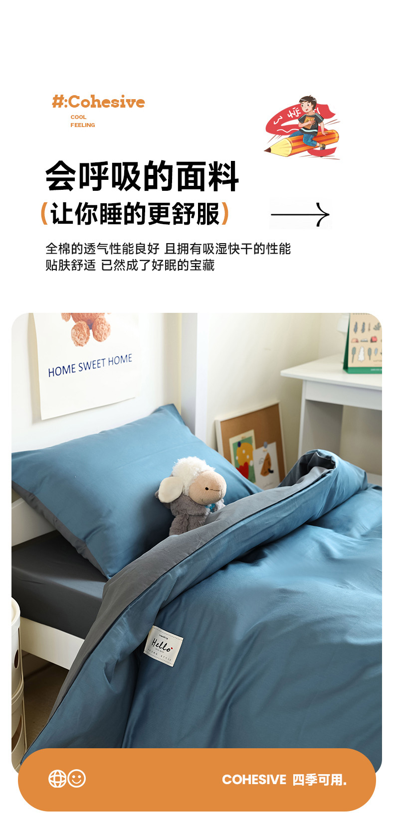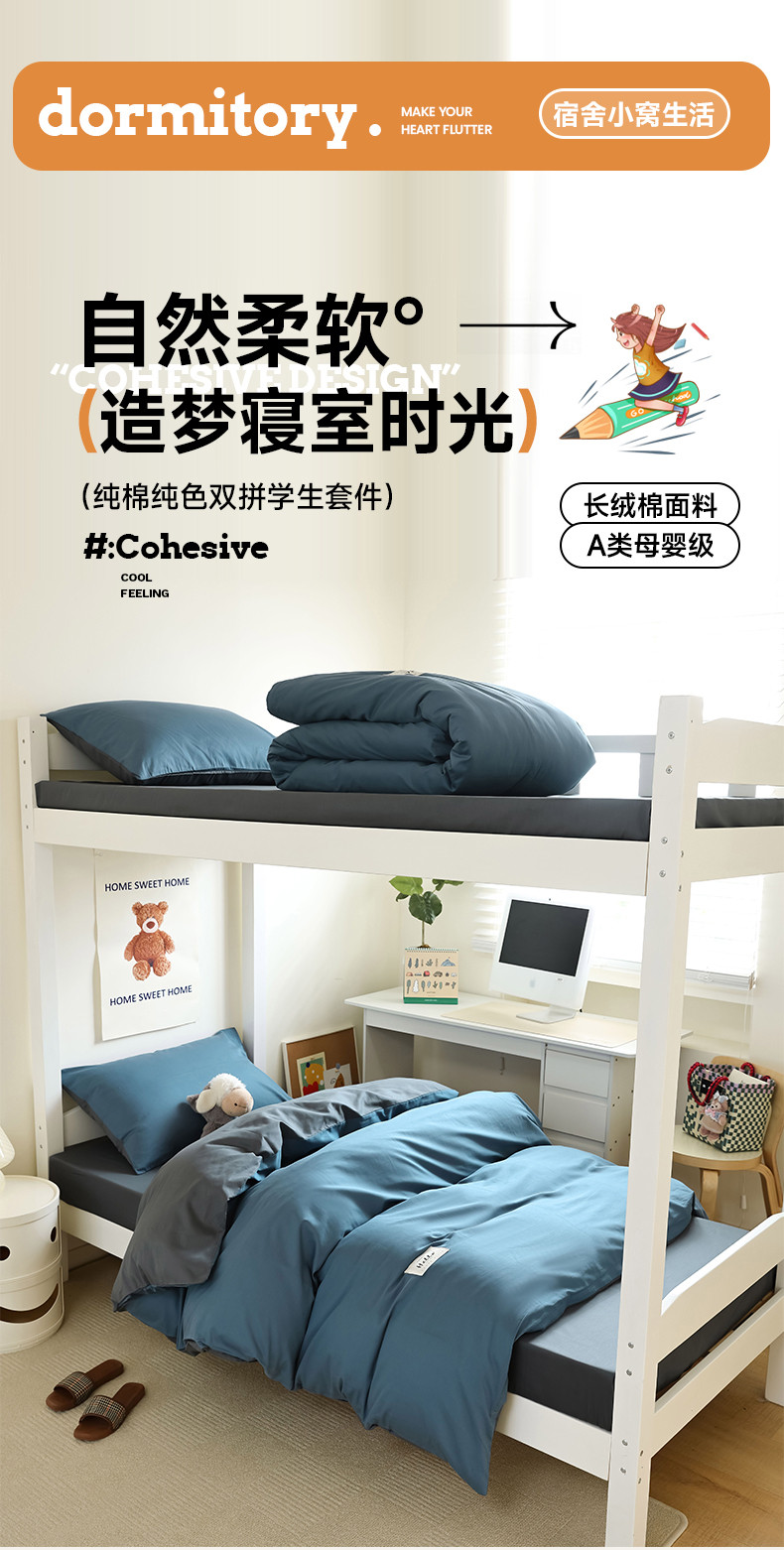 当前位置: 91家纺网 > 商品网购 > 床品套件 > 四件套 > 全棉普通四件套 > 寐眠 23款13372纯棉40s纯色双拼学生三件套四件套 海蓝+中灰
