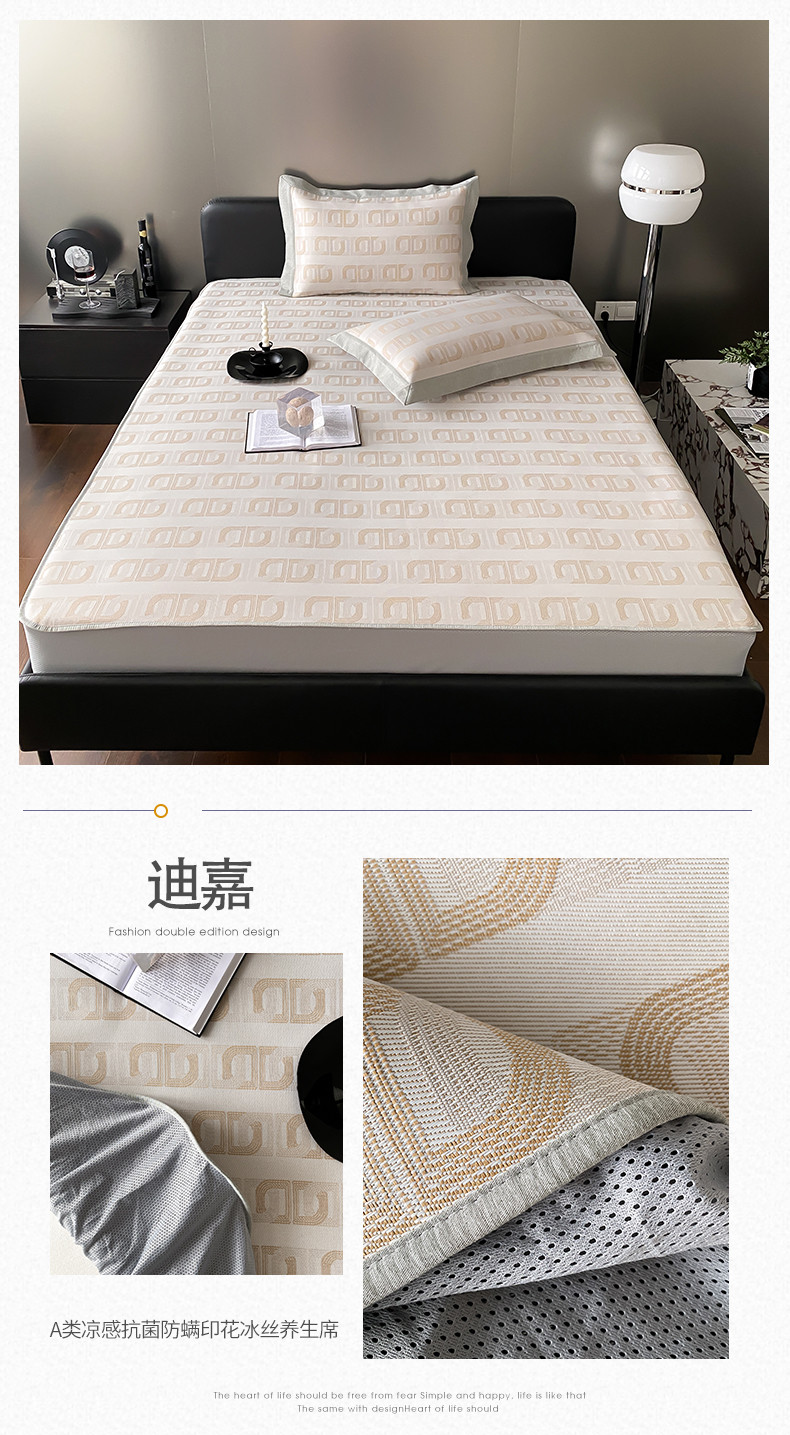 商品名称:三味舒屋 2025新款抗菌防螨凉感提花冰丝养生席床笠款 迪嘉