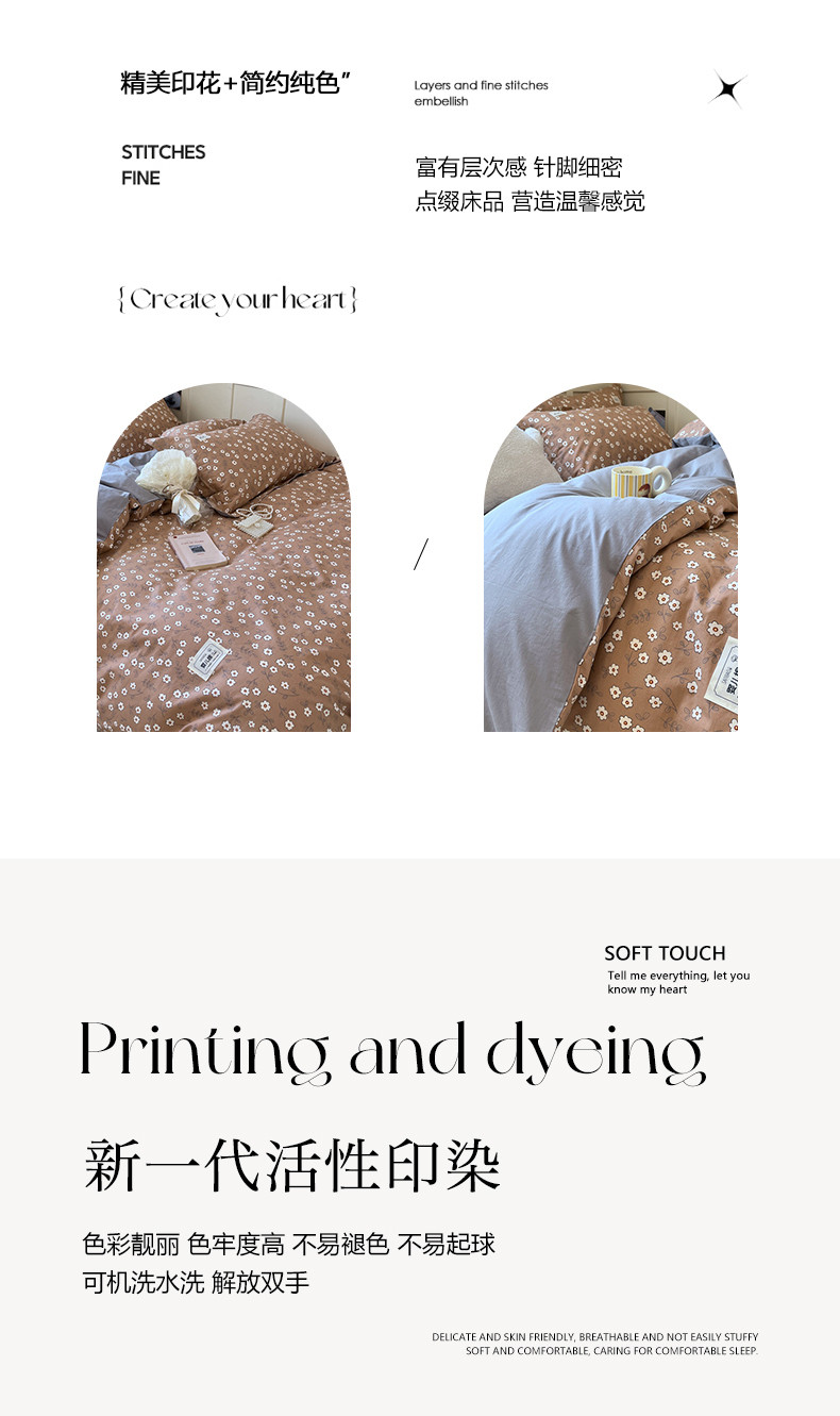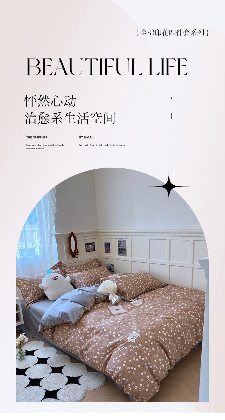 米粒家纺 2023新款全棉印花四件套系列 秋烟-桔