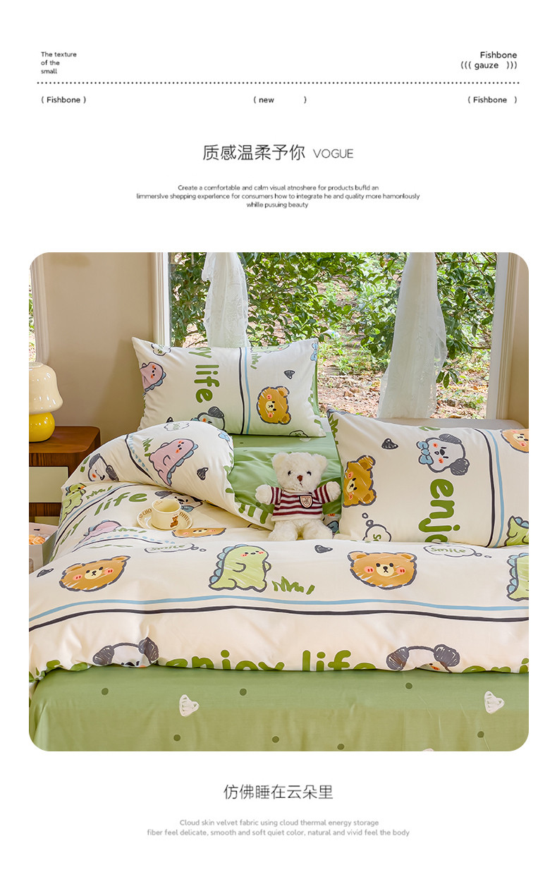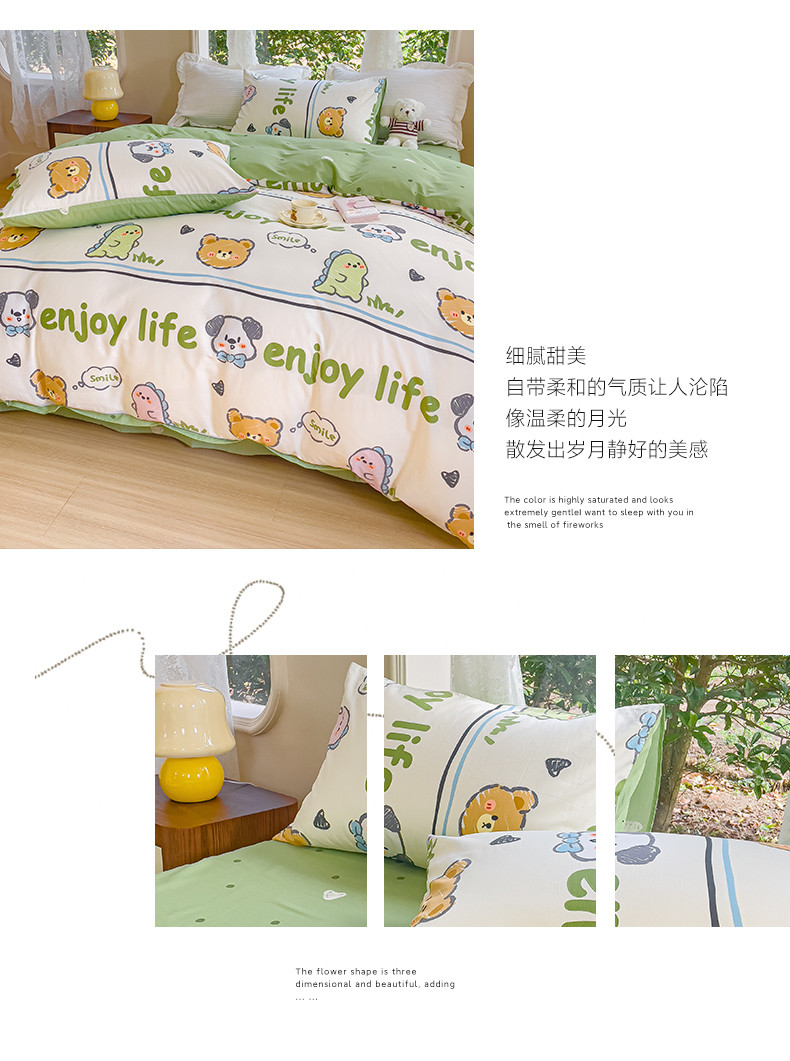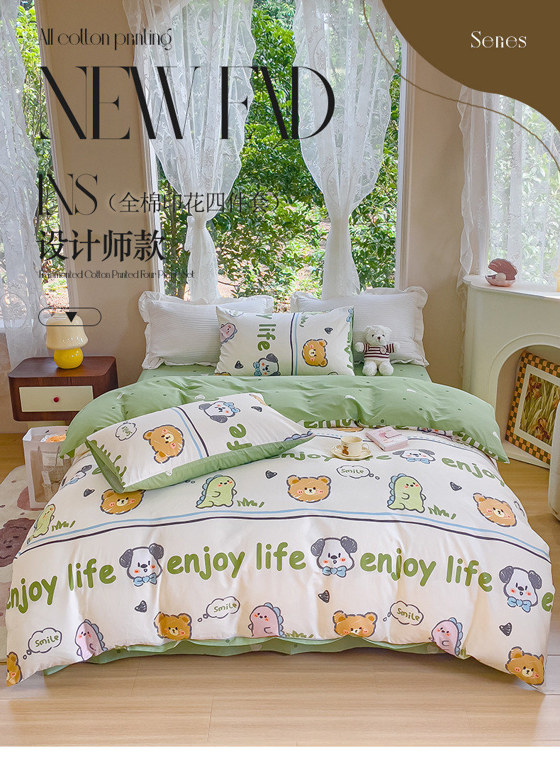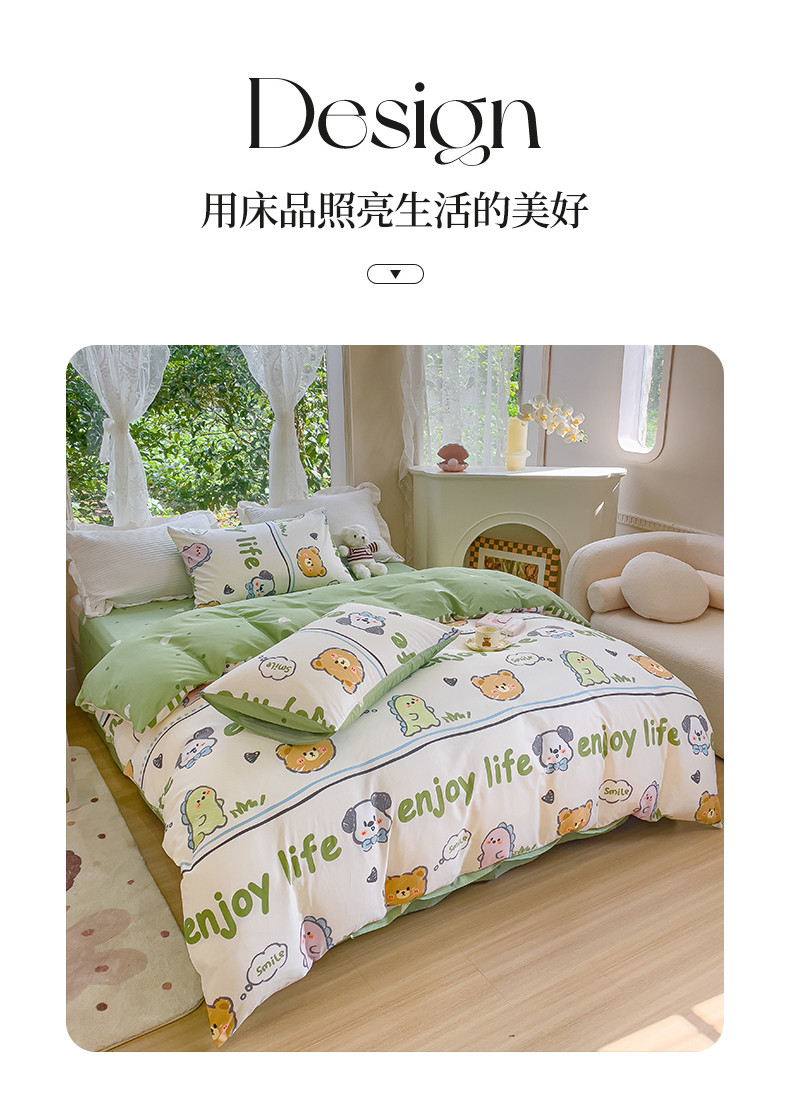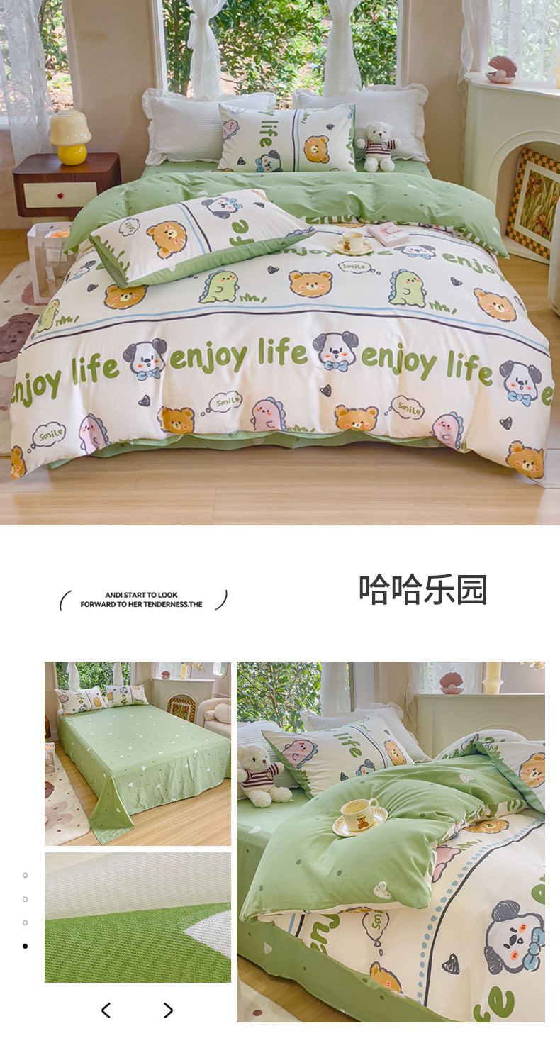 当前位置: 91家纺网 > 商品网购 > 床品套件 > 四件套 > 全棉普通四件套 > 珺柔家纺 2023新款13372全棉印花四件套 哈哈乐园