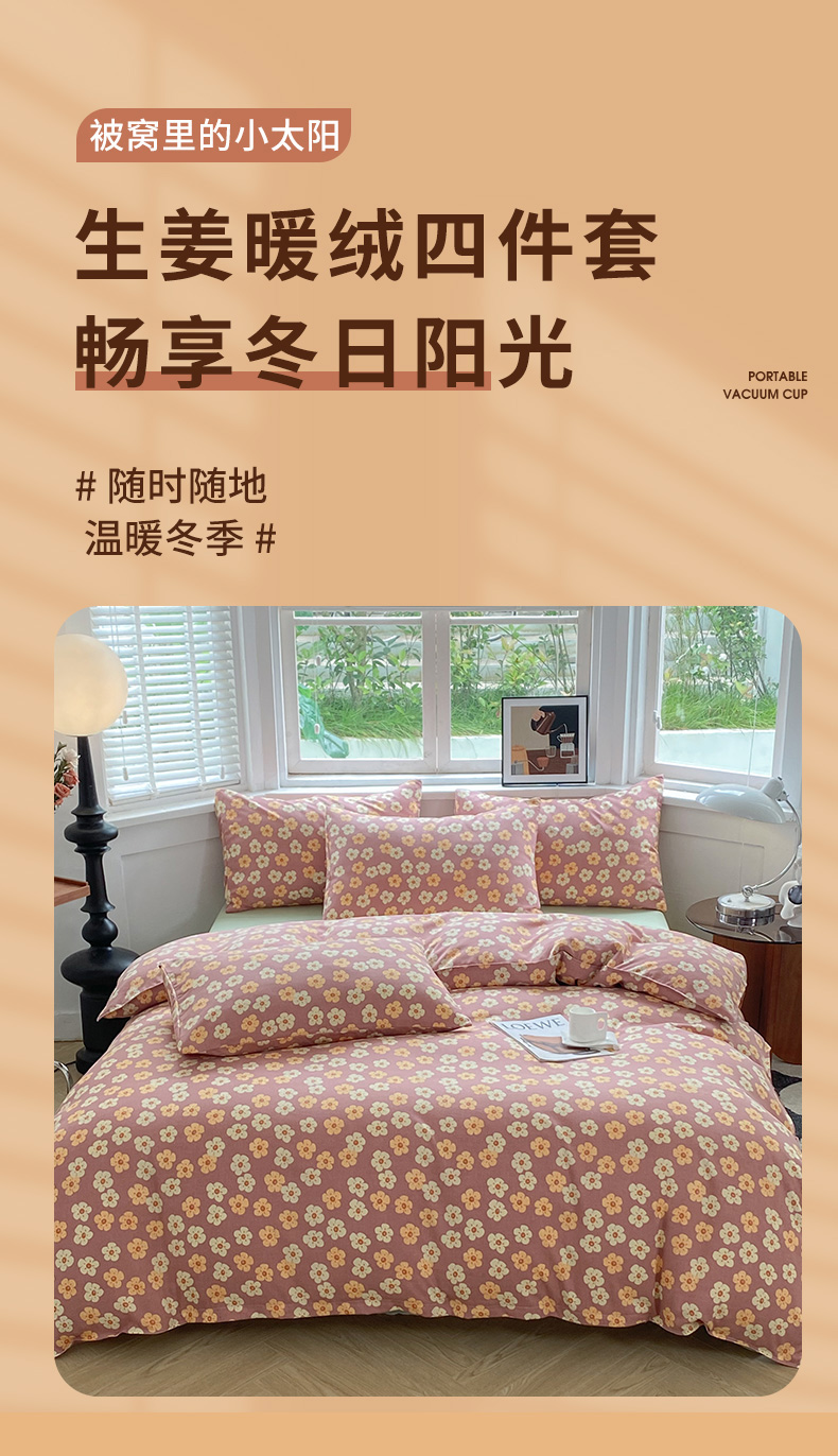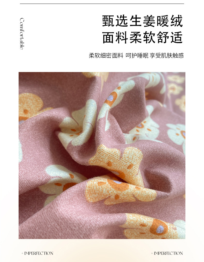 商品名称:妖妖家纺 2023秋冬新品温暖冬季生姜暖绒四件套 花朵派对