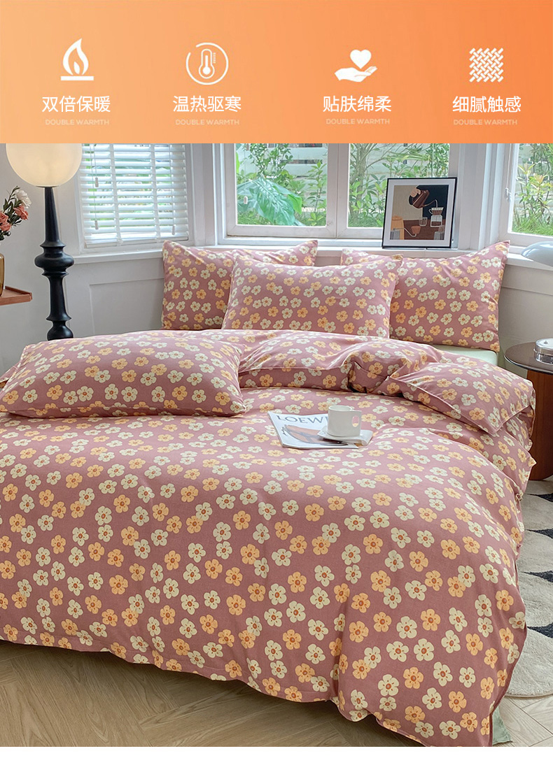 妖妖家纺 2023秋冬新品温暖冬季生姜暖绒四件套 花朵派对