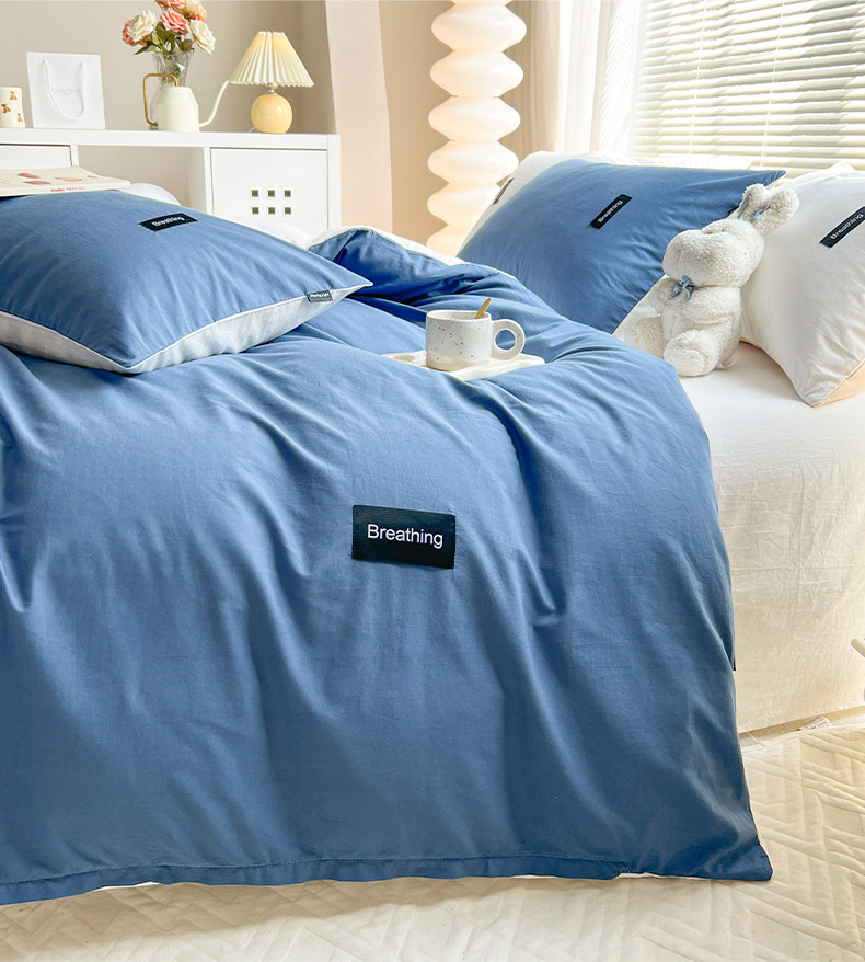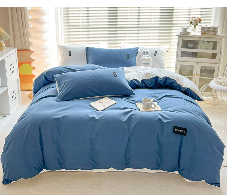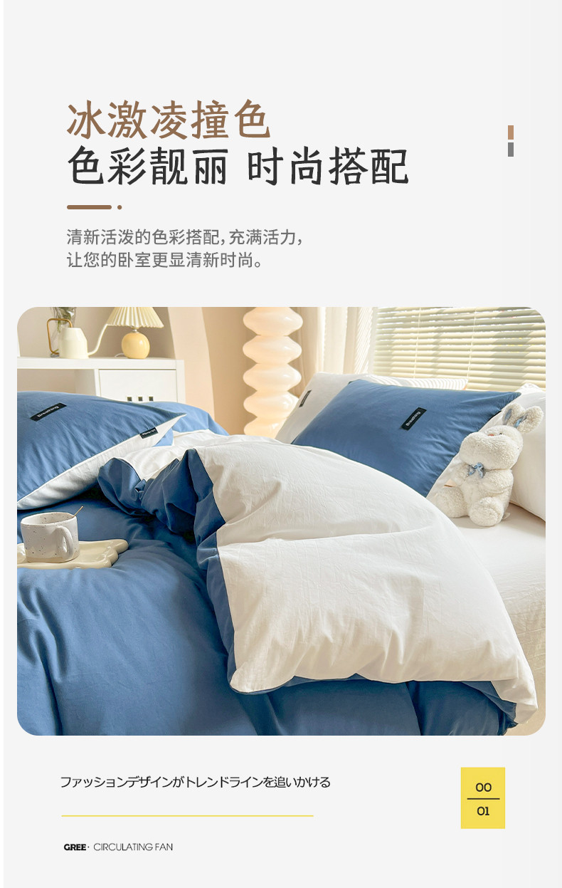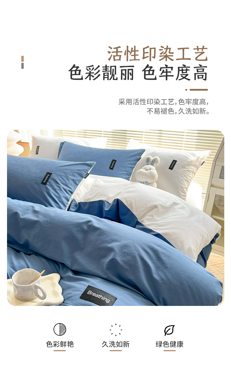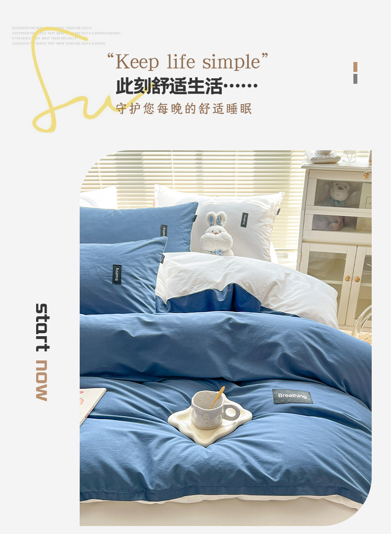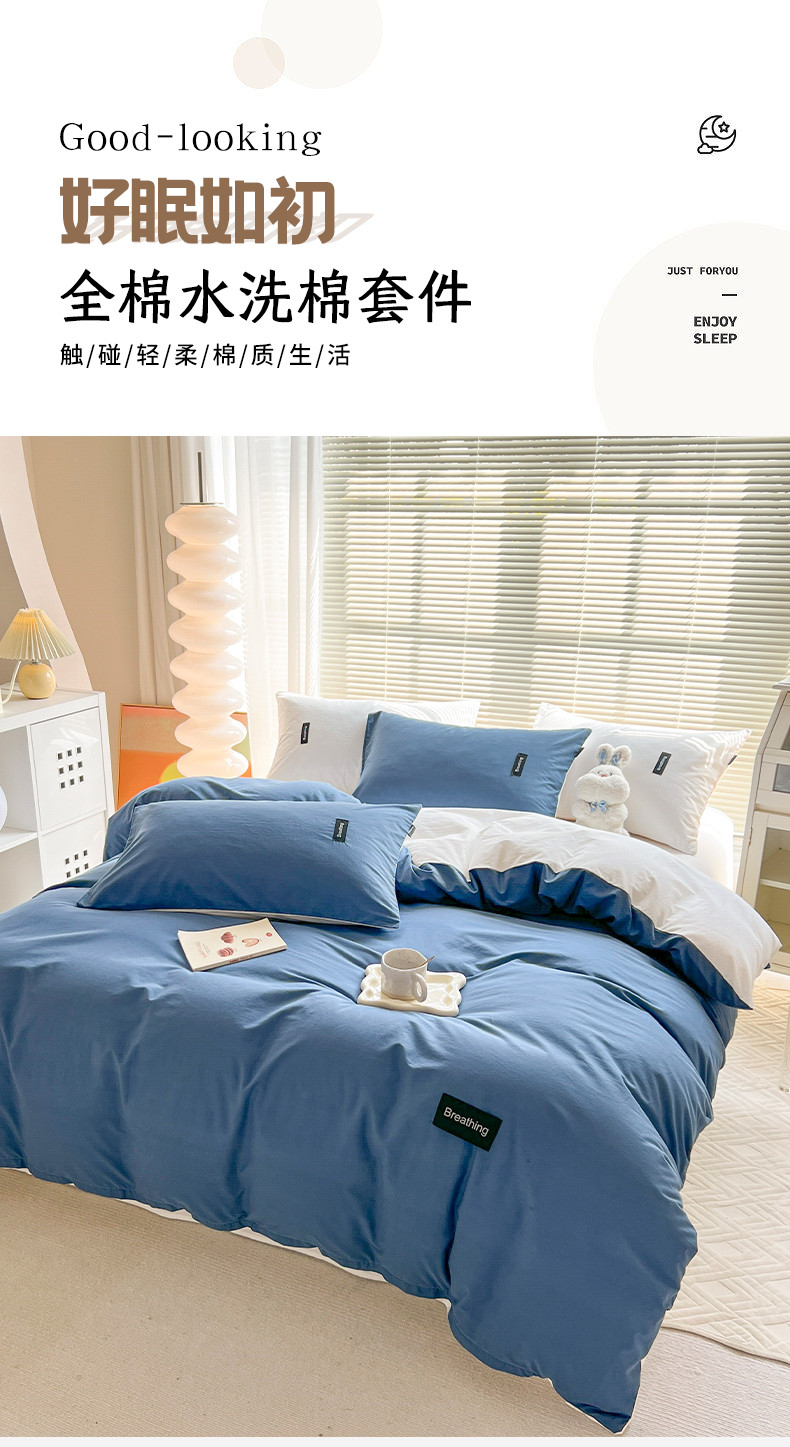 当前位置: 91家纺网 > 商品网购 > 床品套件 > 四件套 > 全棉普通四件套 > 绵庭家纺 2023新款全棉水洗棉拼色四件套 冰月蓝+贵族白