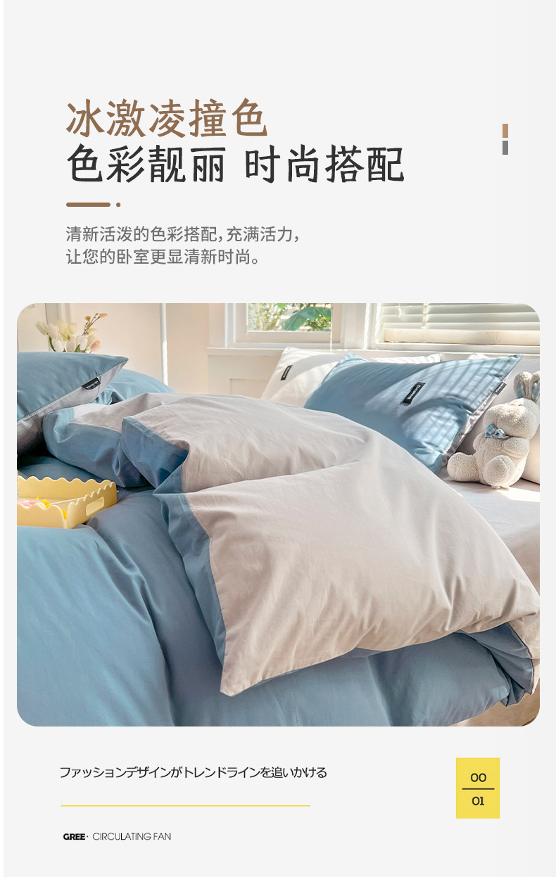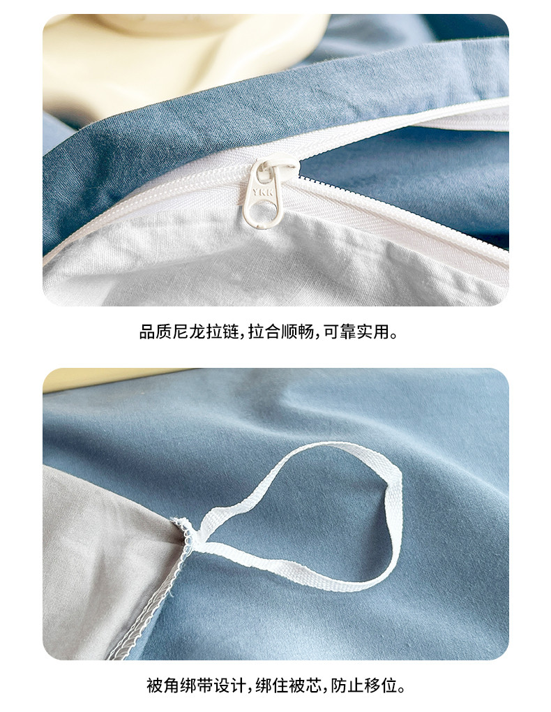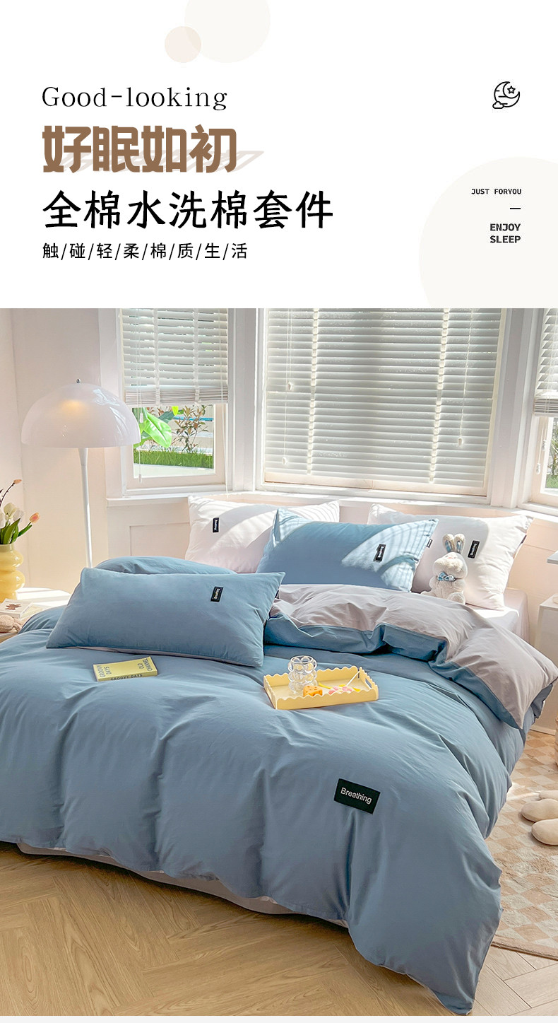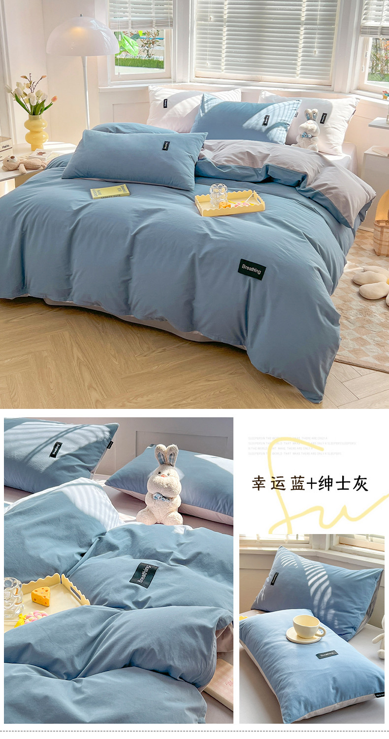 当前位置: 91家纺网 > 商品网购 > 床品套件 > 四件套 > 全棉普通四件套 > 绵庭家纺 2023新款全棉水洗棉拼色四件套 幸运蓝+绅士灰