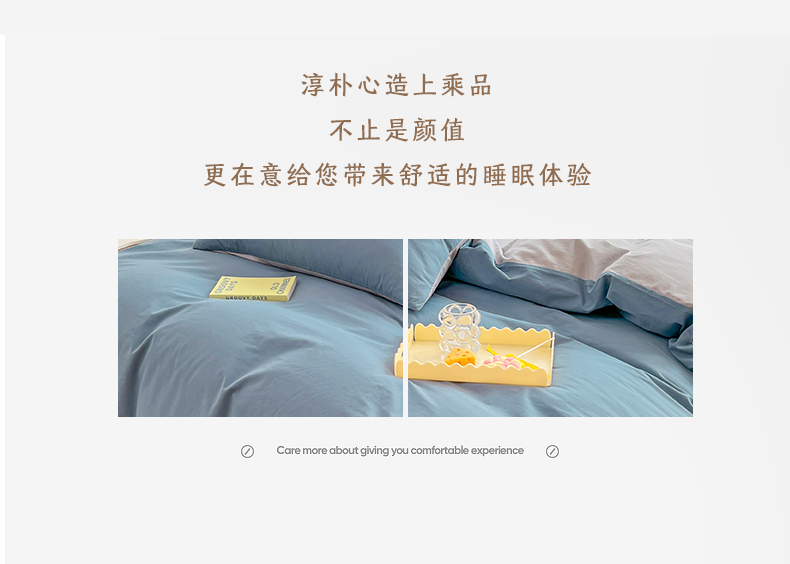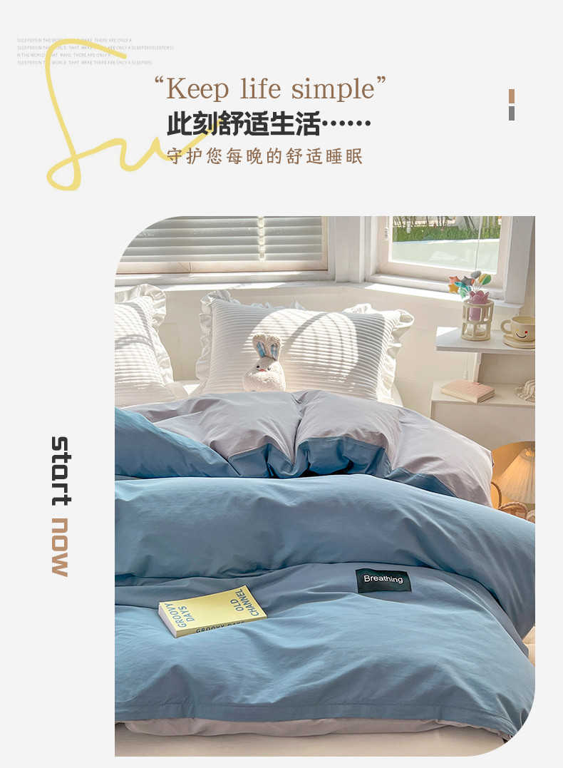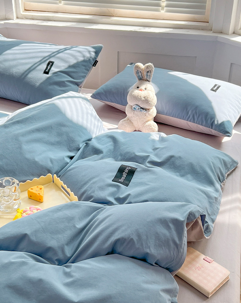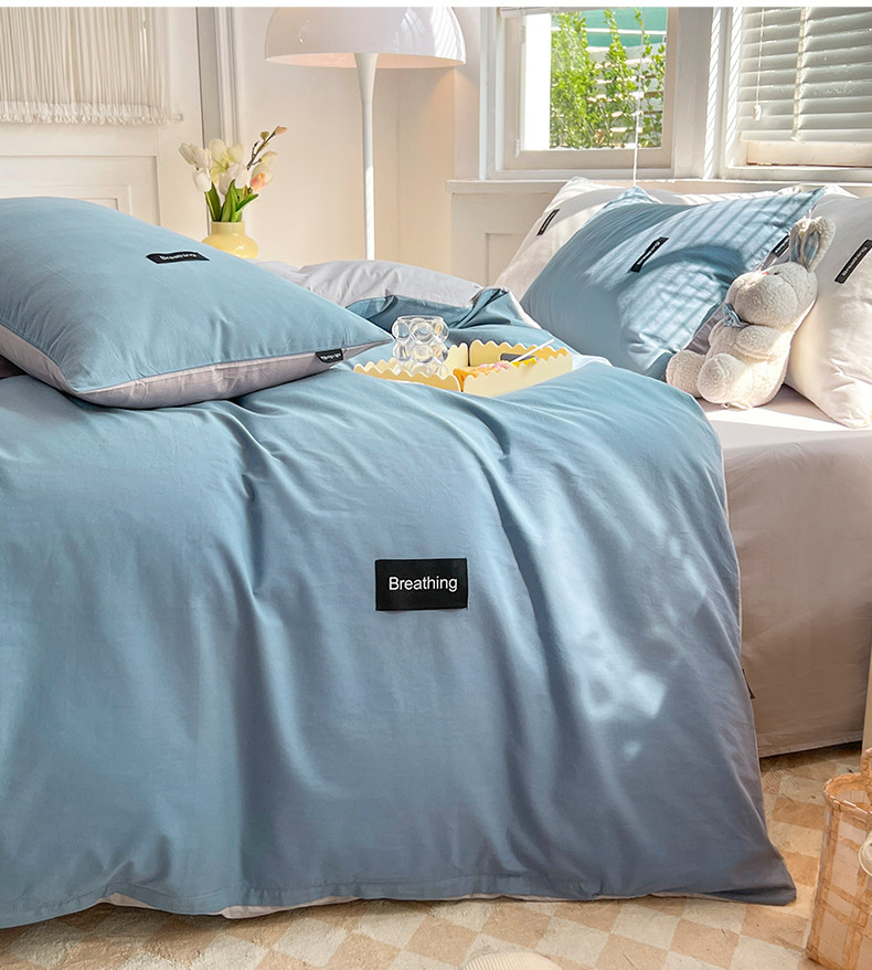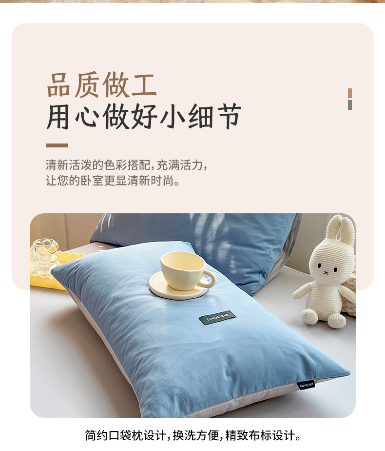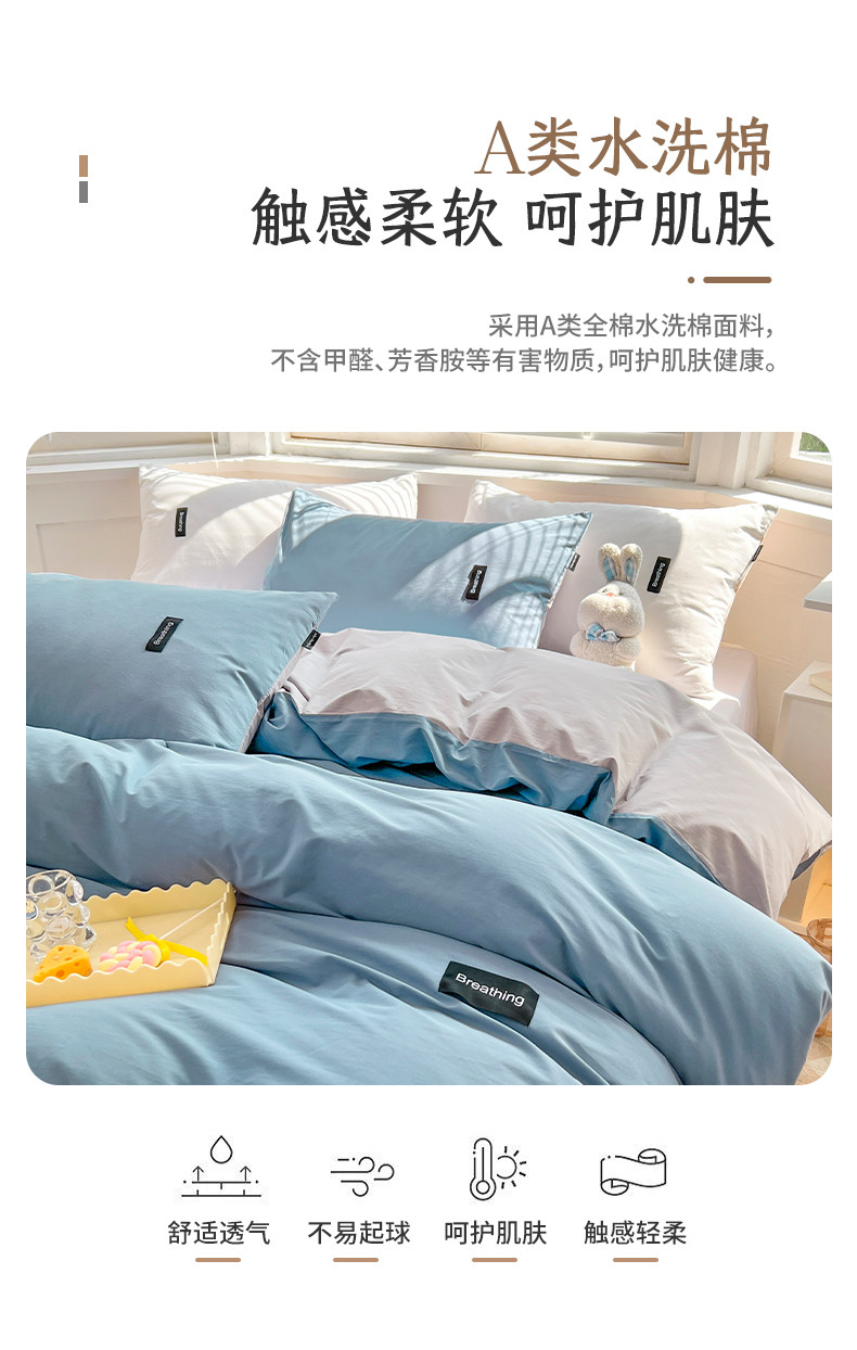 当前位置: 91家纺网 > 商品网购 > 床品套件 > 四件套 > 全棉普通四件套 > 绵庭家纺 2023新款全棉水洗棉拼色四件套 幸运蓝+绅士灰