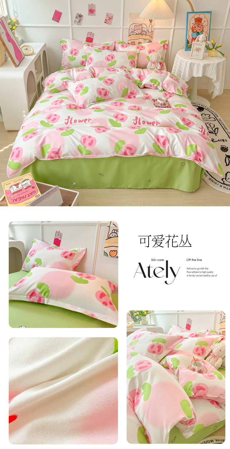 花伞家居 2024直播网销斜纹加厚磨毛印花植物羊绒四件套 可爱花丛