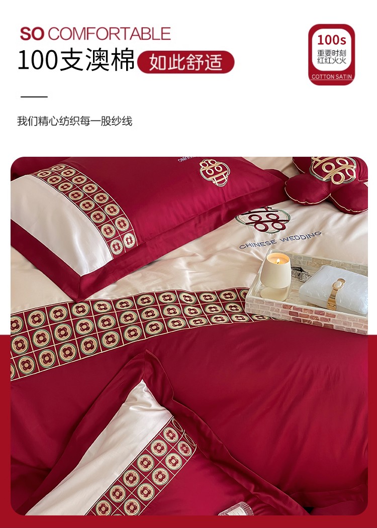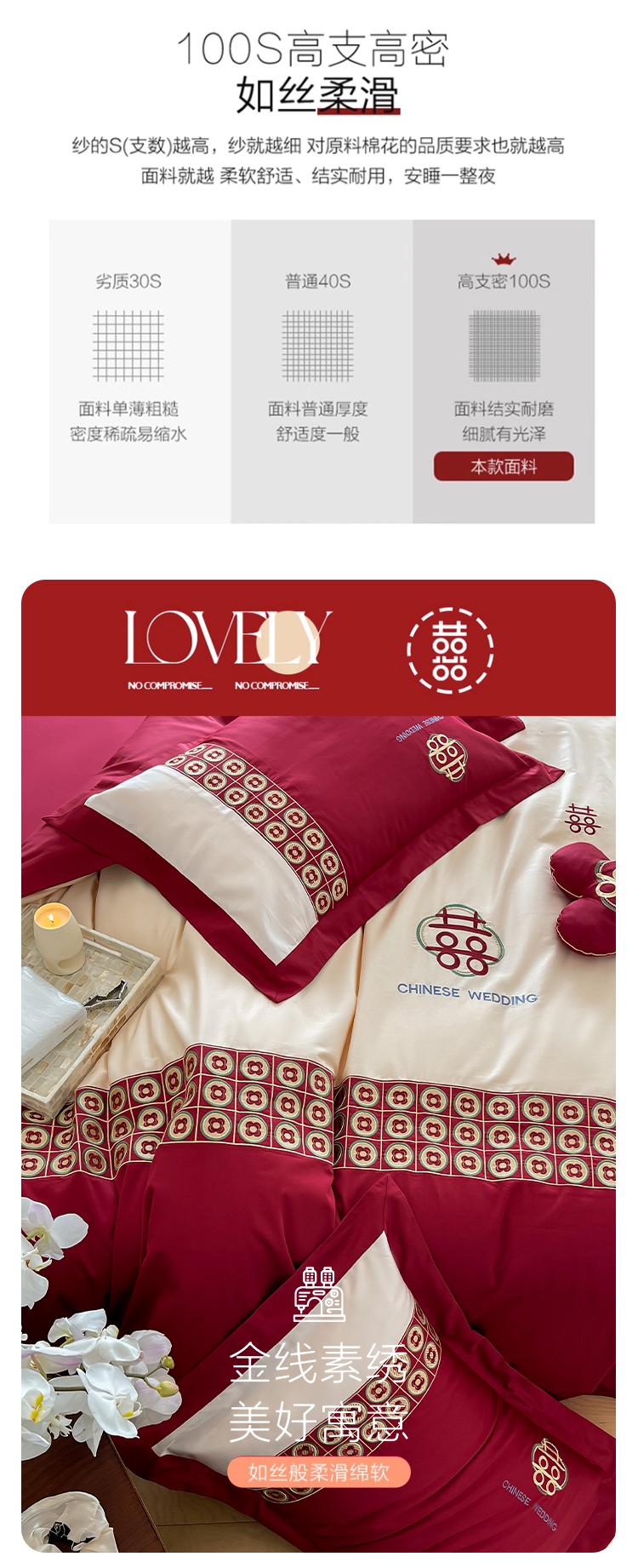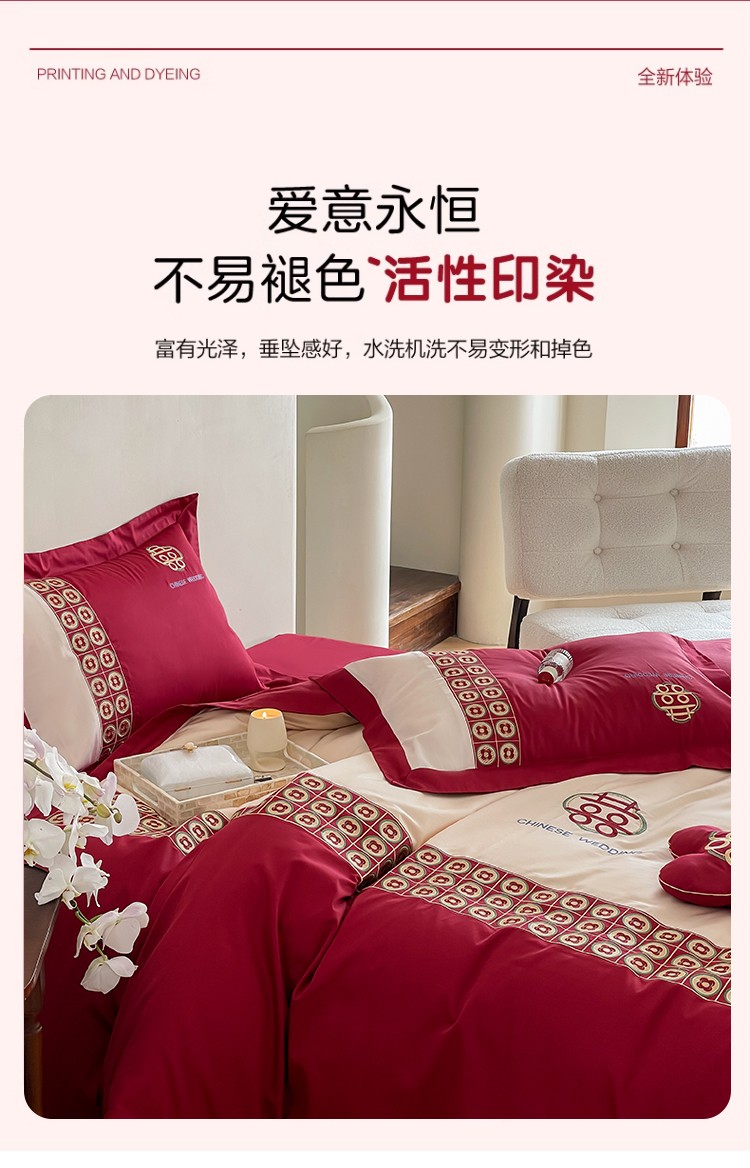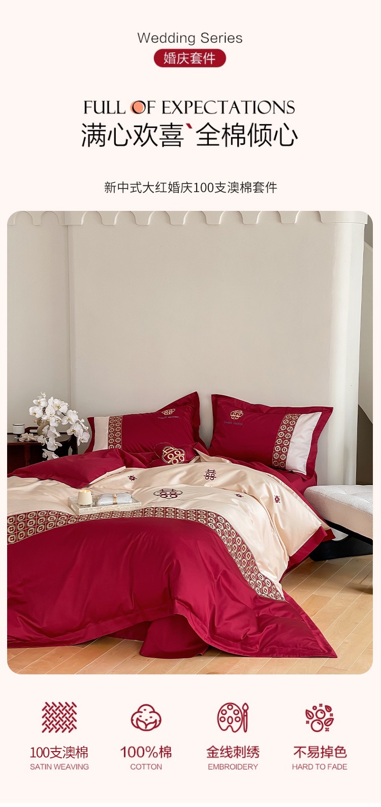 (总)西西家居2023新款新中式大红婚庆100支澳棉四件套-喜结连理