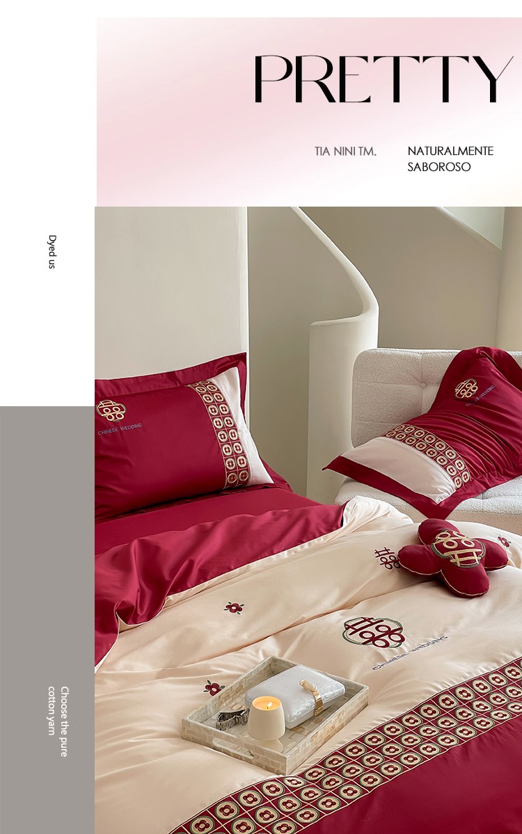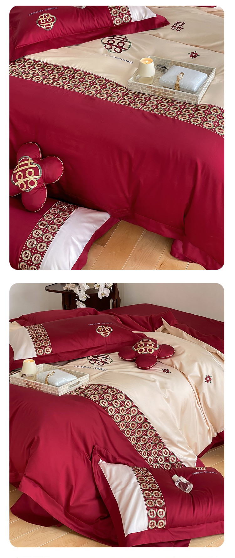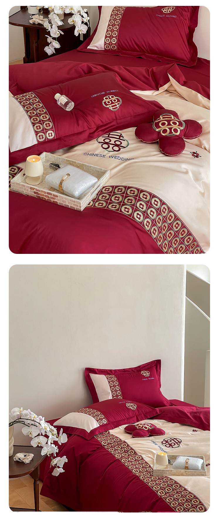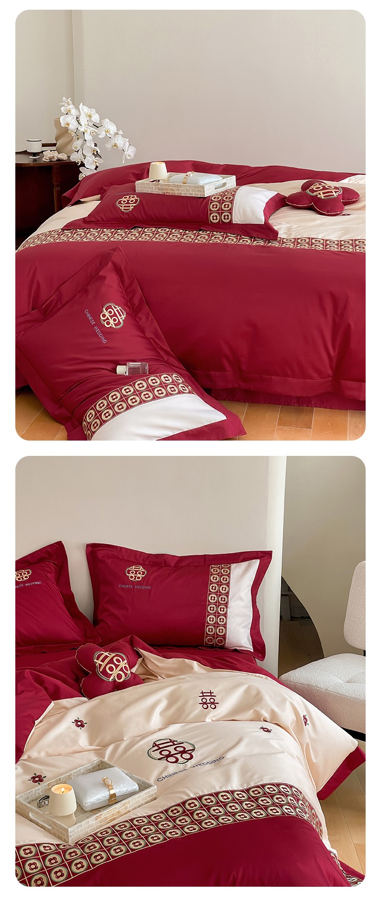 (总)西西家居2023新款新中式大红婚庆100支澳棉四件套-喜结连理
