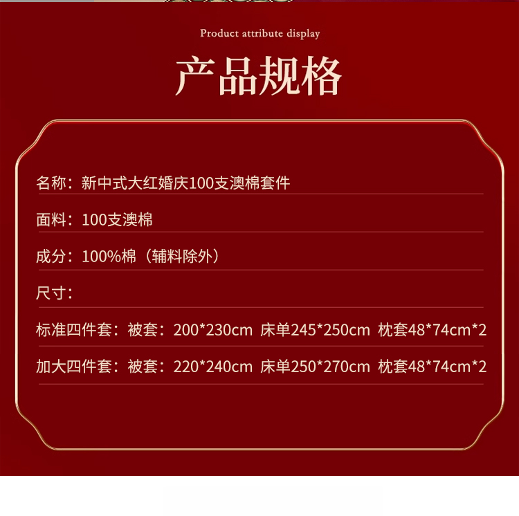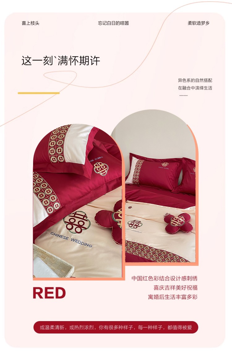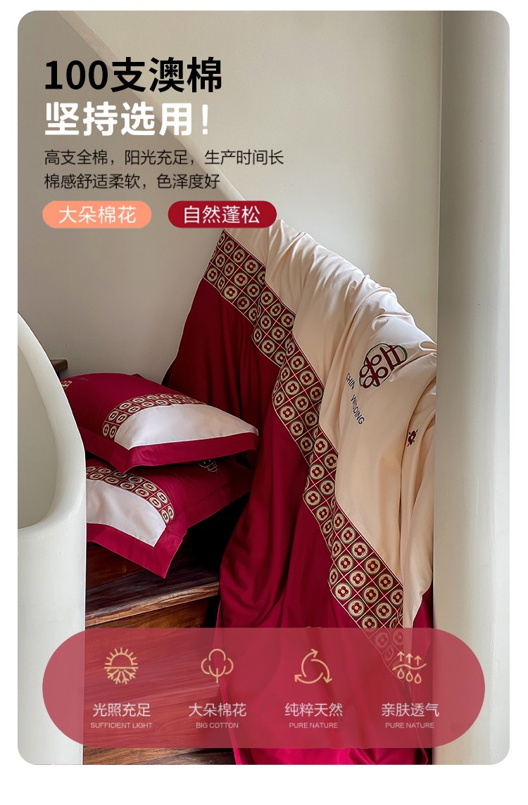 商品名称:(总)西西家居2023新款新中式大红婚庆100支澳棉四件套-喜结连理