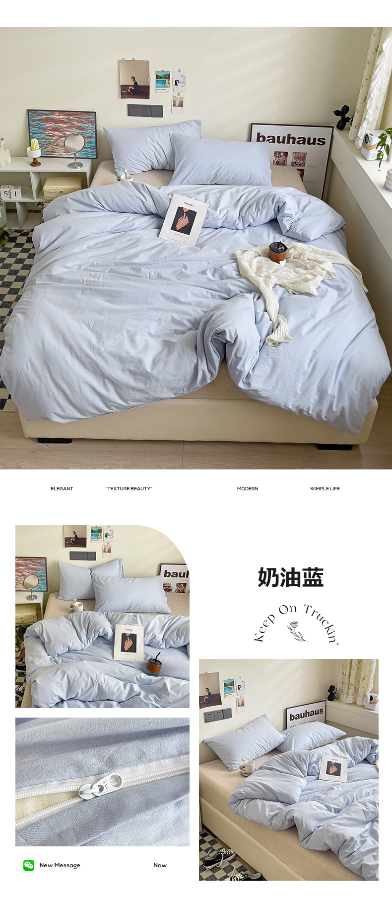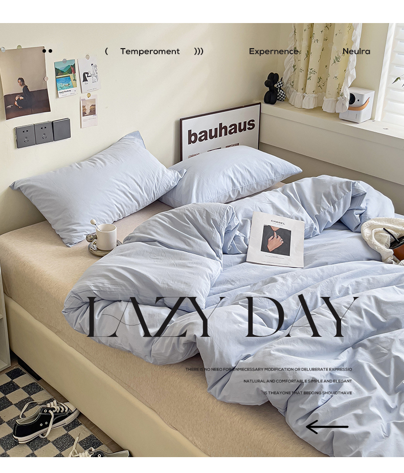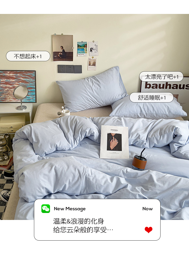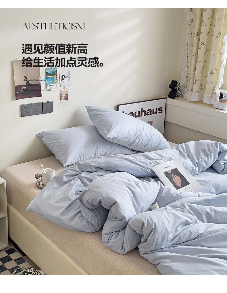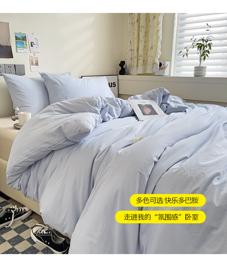 商品名称:六巷胡同 2023新款32支全棉纯色水洗棉单被套 奶油蓝