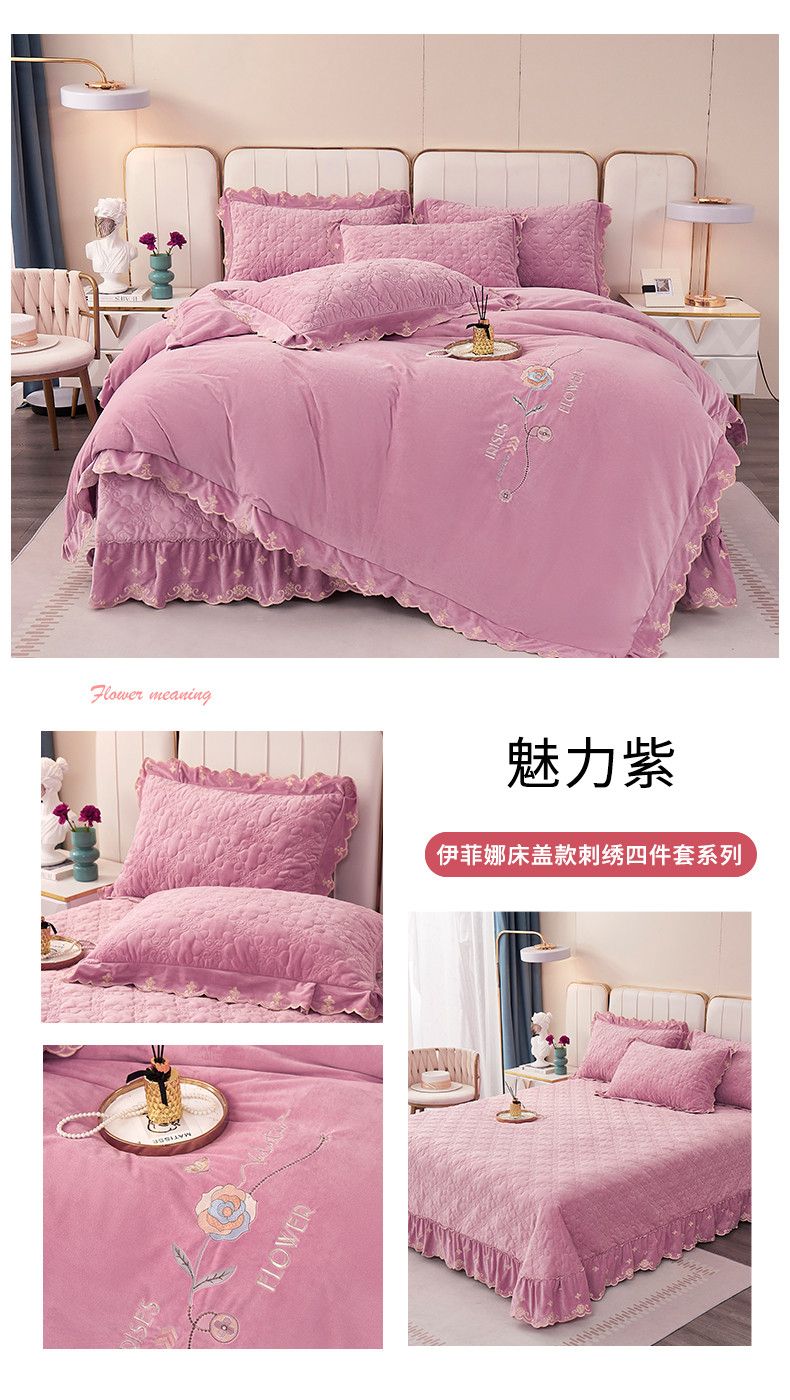 商品名称:卡迪亚 2023新款婴儿绒床盖款刺绣四件套床裙系列 魅力紫